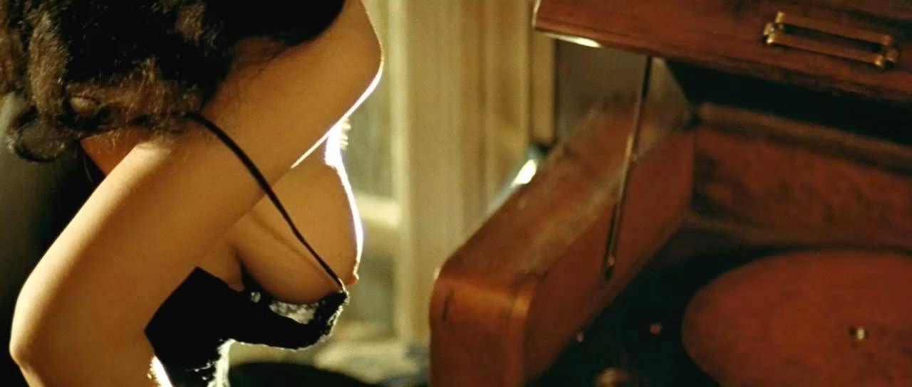 She is an inexhaustible source of sexuality, both desirable and seductive Monica Bellucci’s every sex scene did cult. In this scene, Monica takes off her dress, and large breasts are coming to the fore. She gently washes her nude boobs and then takes a lemon and squeezed it over her breasts and pointed nipples.
