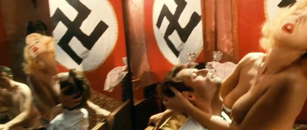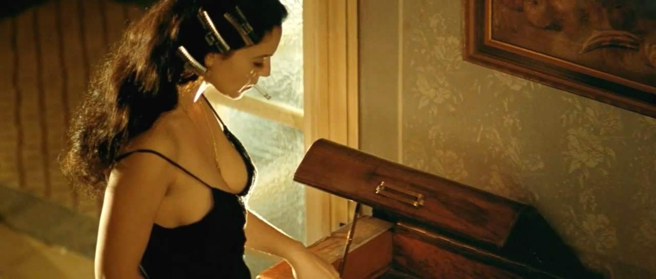 Monica Bellucci is another uncensored scene that accidentally shows her naked right tit. She bent to turn the record player, where she bends over, and her right boob and nude nipple pop free – a very friendly and juicy scene for watching.