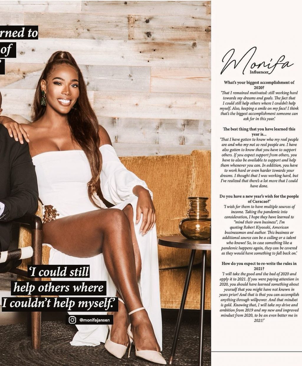 Monifa Jansen (28 лет) — уроженка Кюрасао, которая была коронована Мисс Кюрасао и является моделью. Она представляла свою страну на конкурсах Мисс Мира 2011 и Мисс Вселенная 2012. Jansen участвовала в конкурсе Мисс Вселенная 2012, но не прошла в полуфинал. Monifa не принимала участие в конкурсе Мисс Вселенная 2011, который состоялся 12 сентября 2011 года.