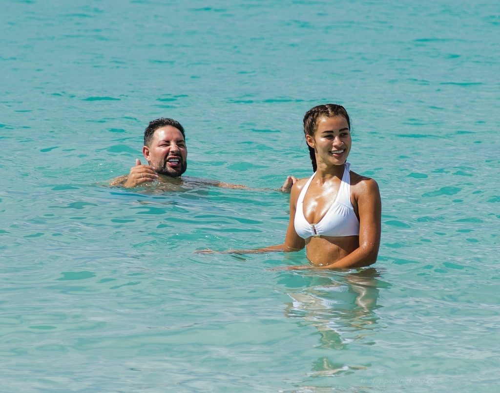 Сексуальная звезда шоу Love Island Монтана Браун поражает на золотых песчаных пляжах Барбадоса, 01/02/2021.