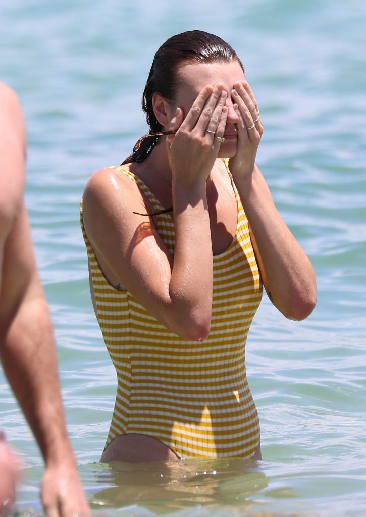 Австралийская модель Монтана Кокс, 24 года, демонстрирует свою подтянутую фигуру в желтом купальнике на пляже Бонди, 01/07/2018.