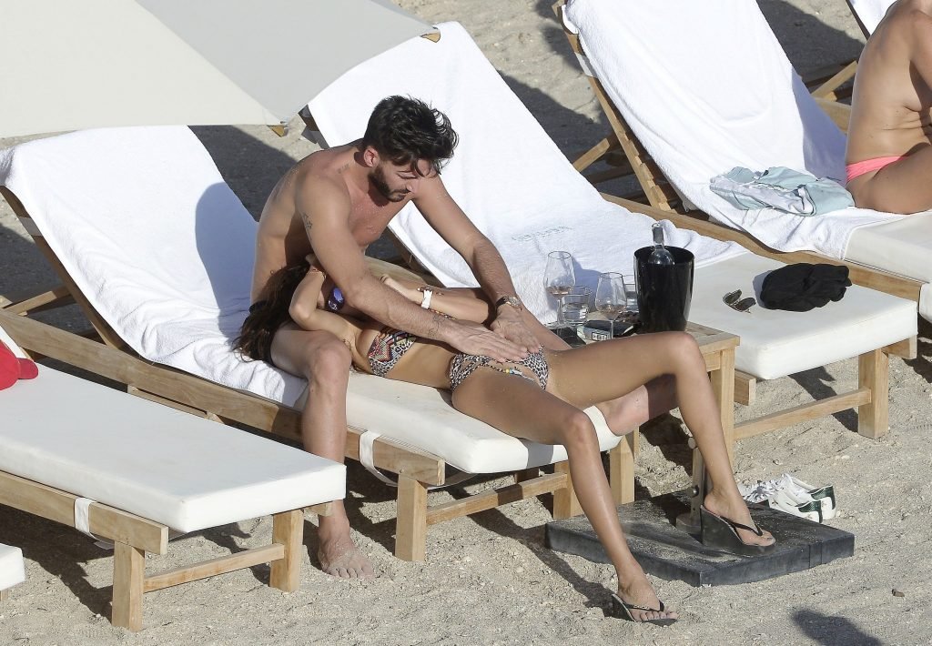 Французские звезды реалити-шоу Набилла Бенаттия и Томас Вергара играют в прятки со своими купальниками во время отпуска в Сен-Бартельми, 02.06.2017.