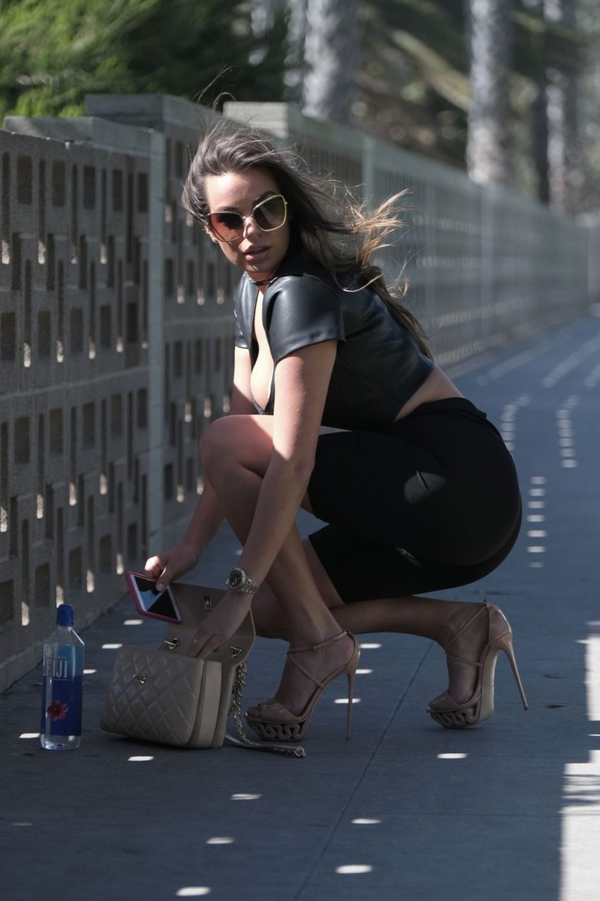 Пышная австрийская модель демонстрировала свою фантастическую фигуру в паре велосипедных шорт, очень откровенном кожаном укороченном топе, на каблуках на высокой платформе и с сумочкой Chanel. Мирада, нынешнее лицо и тело Guess, вернулась в Лос-Анджелес для съемок для дизайнера после участия в их весенней кампании.