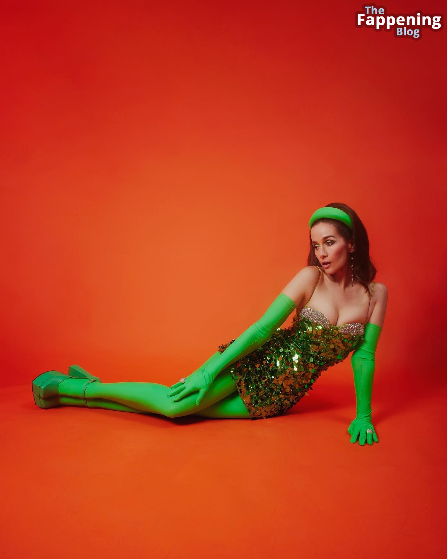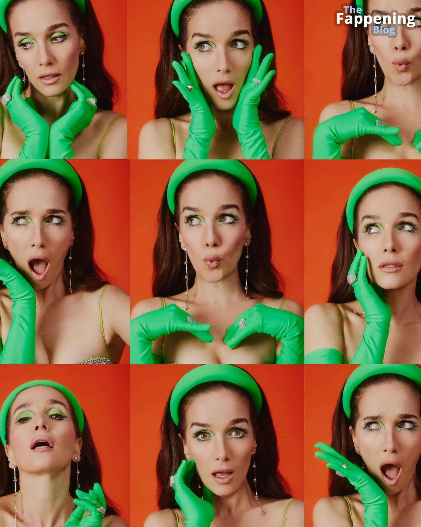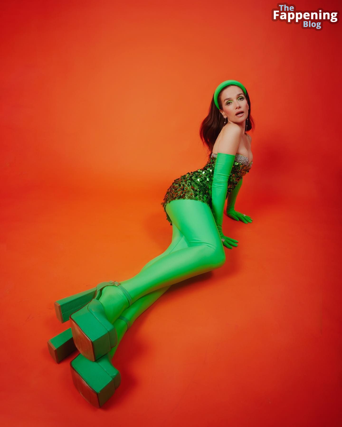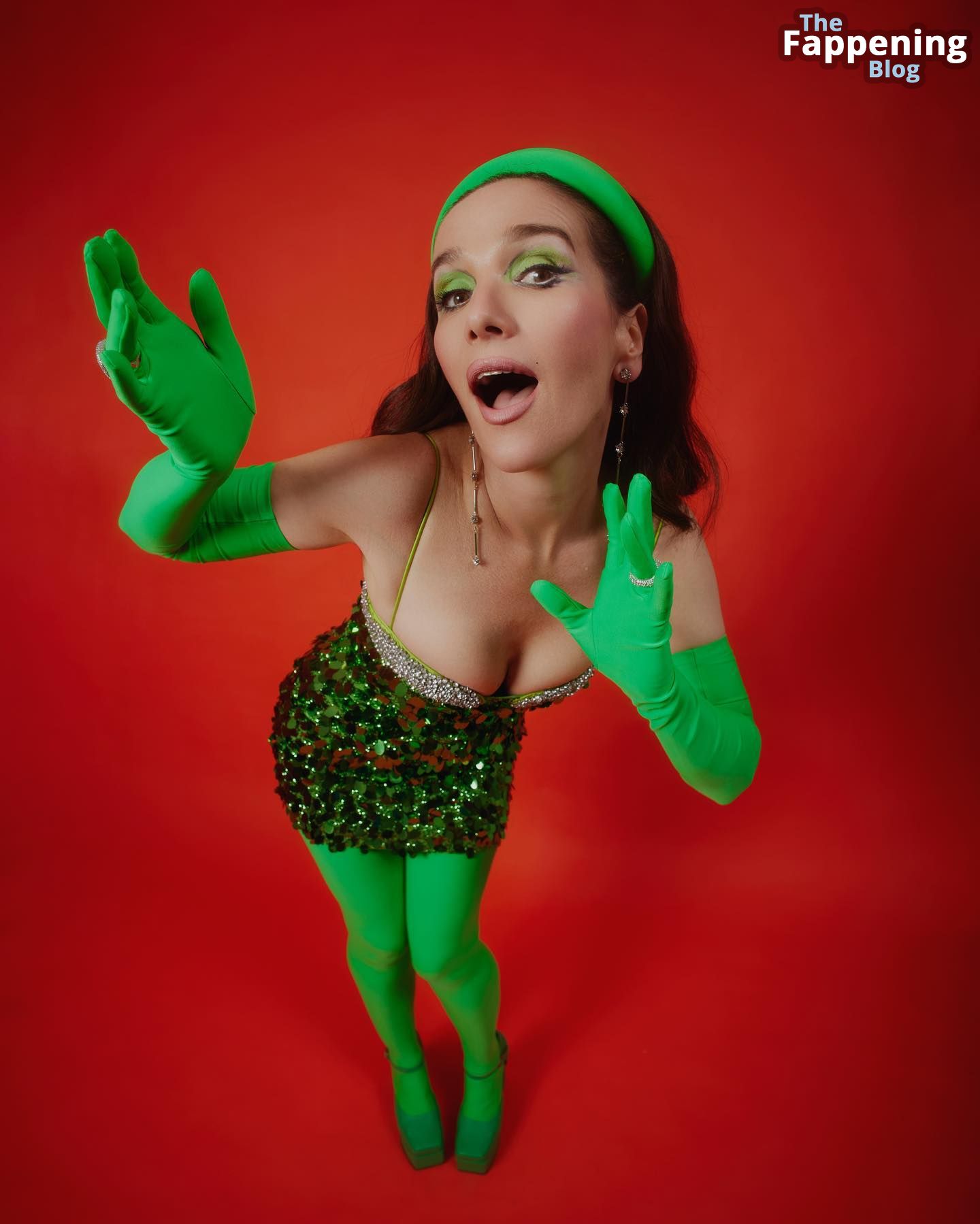 Главным событием этой потрясающей съемки стал Наталия в ярком зеленом наряде. Это убийственное блестящее платье не только подчеркивало её пышные формы, но и демонстрировало её длинные и по-прежнему очень горячие ноги в зеленых колготках. Завершали образ зеленые перчатки до локтя и подходящие колготки, создавая смелый и незабываемый образ.