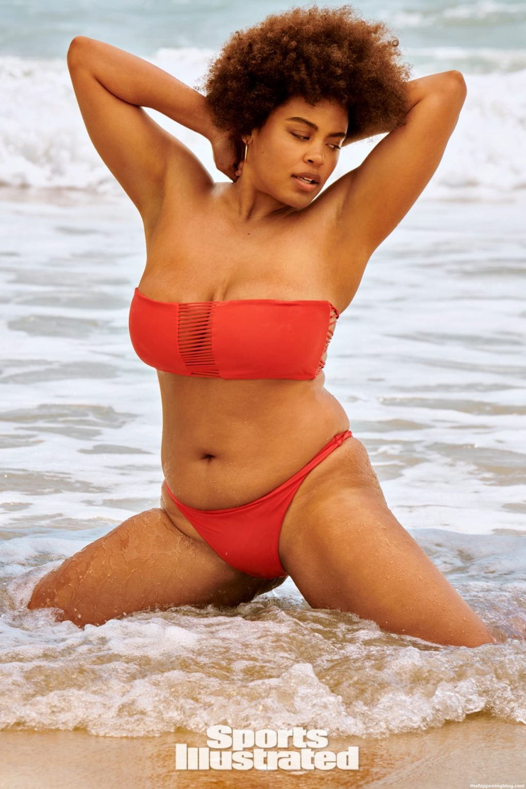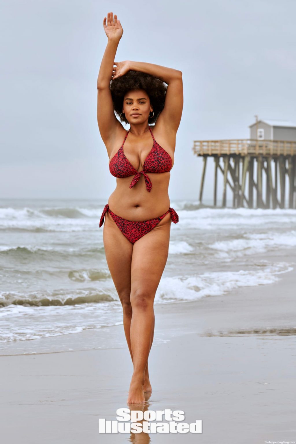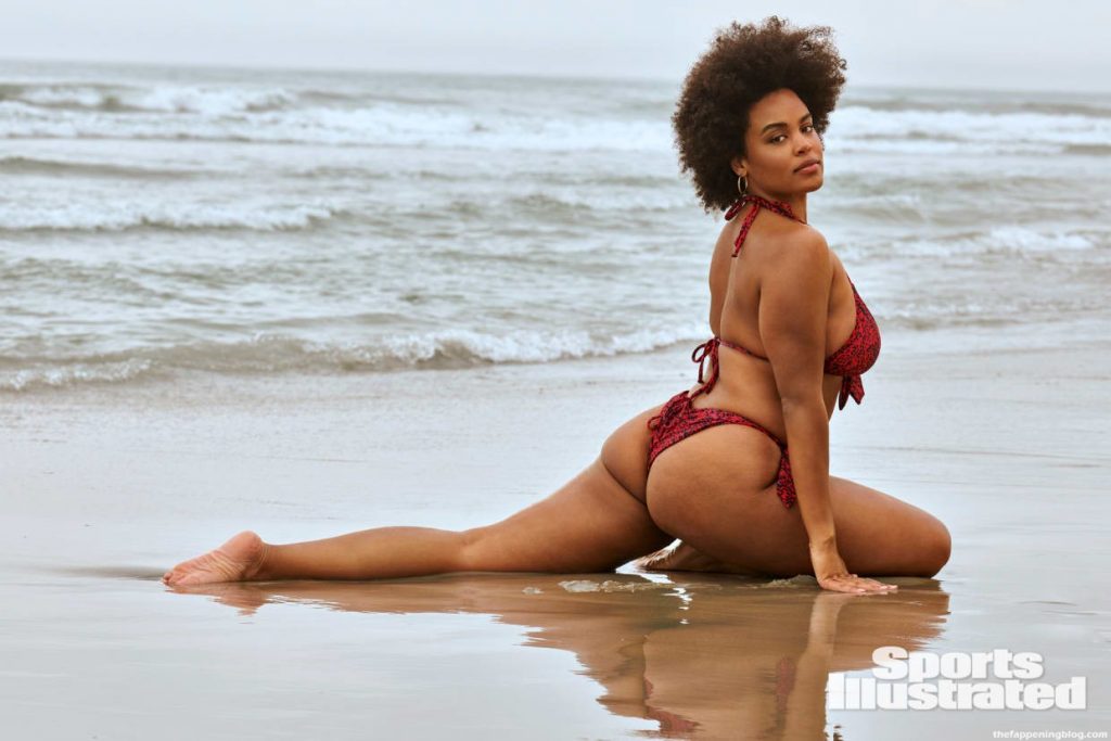 Британская натуральная модель Натали Гейдж демонстрирует свои изгибы в купальниках от Magicsuit в фотосессии Ю Цая в Атлантик-Сити для выпуска Sports Illustrated Swimsuit 2021 года.