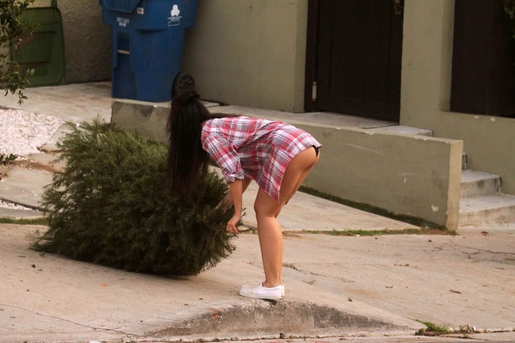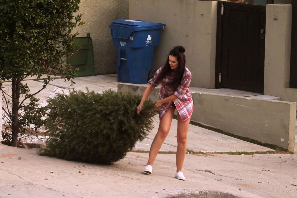 Актриса фильма “All Star Weekend” Наташа Бласик была замечена, когда выносила рождественскую ёлку на обочину для вывоза мусора в Вест-Голливуде, 13.01.2019.
