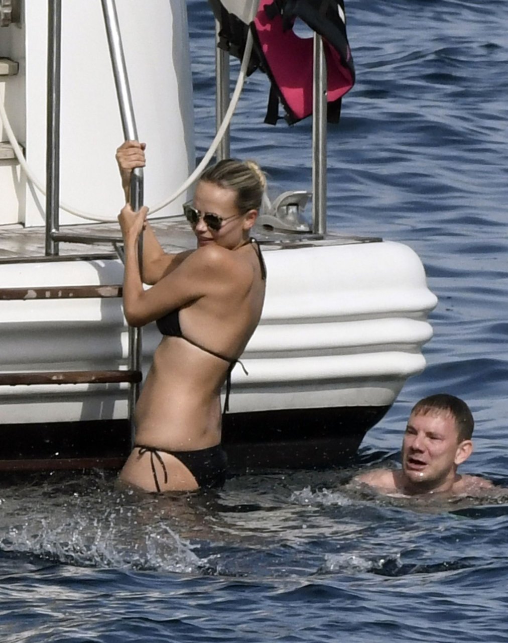 Супермодель Наташа Поли была замечена во время отдыха на Сардинии с мужем Питером Баккером, детьми Александрой Кристиной и Адрианом Греем, а также актером Адрианом Броуди, 08/07/2019.