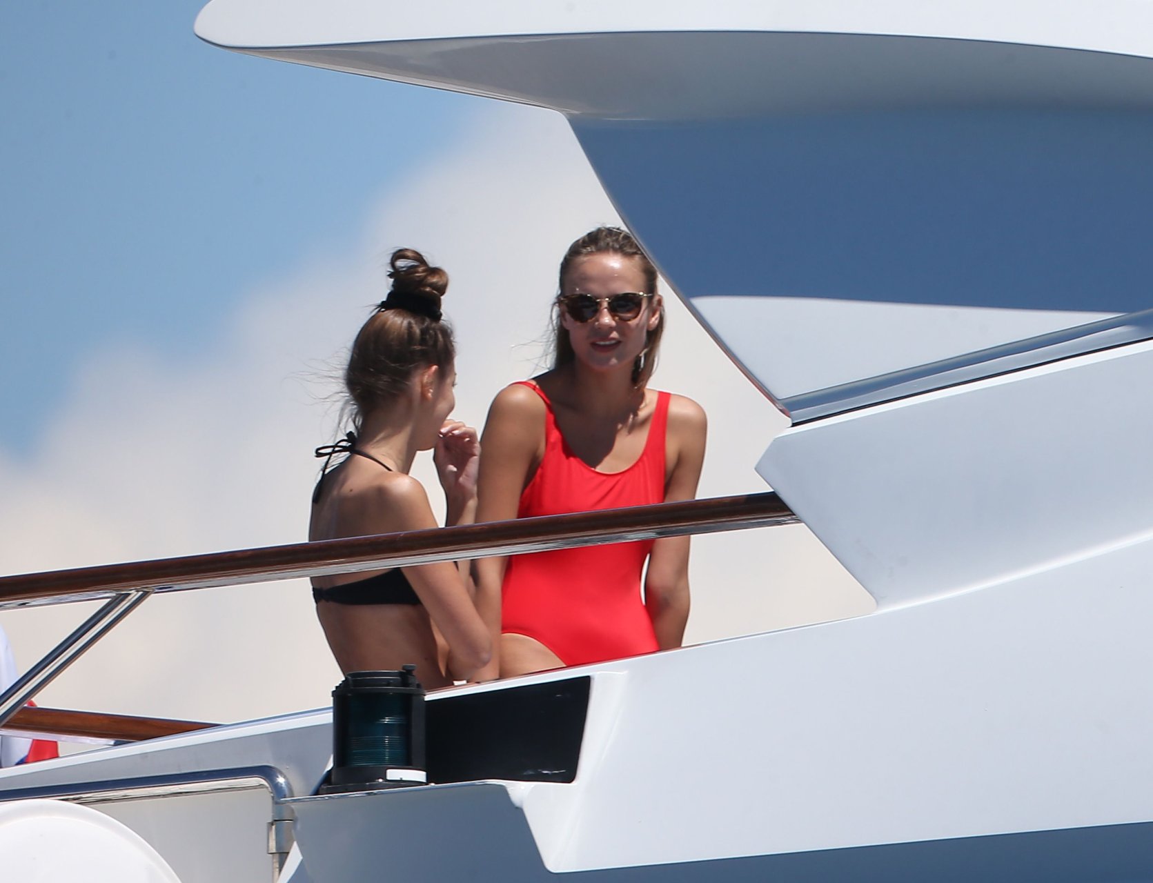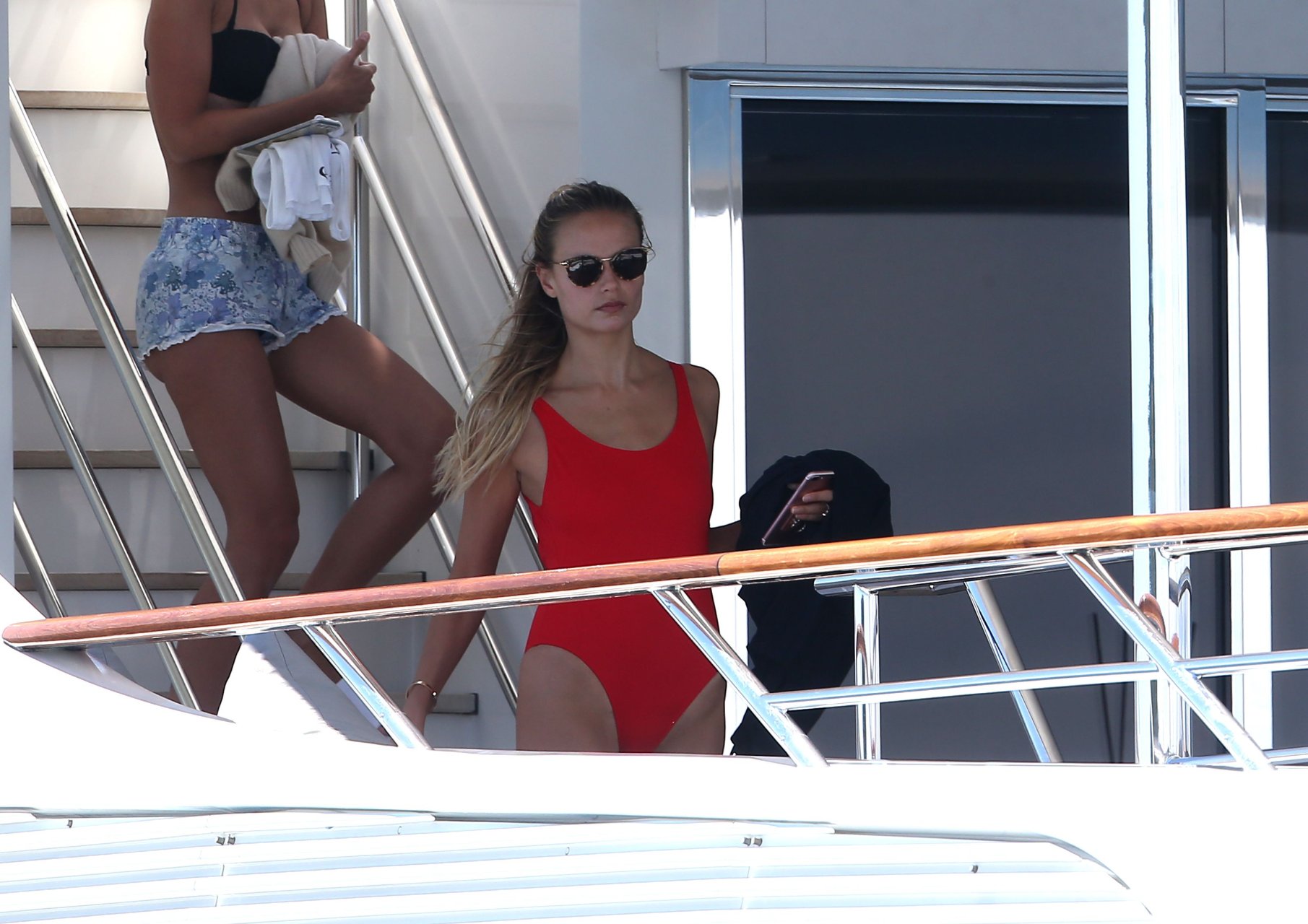Natasha Poly наслаждается днем на яхте в красном купальнике во время 70-го Каннского фестиваля, 19.05.2017. Natasha Poly — российская модель. Возраст: 31 год.