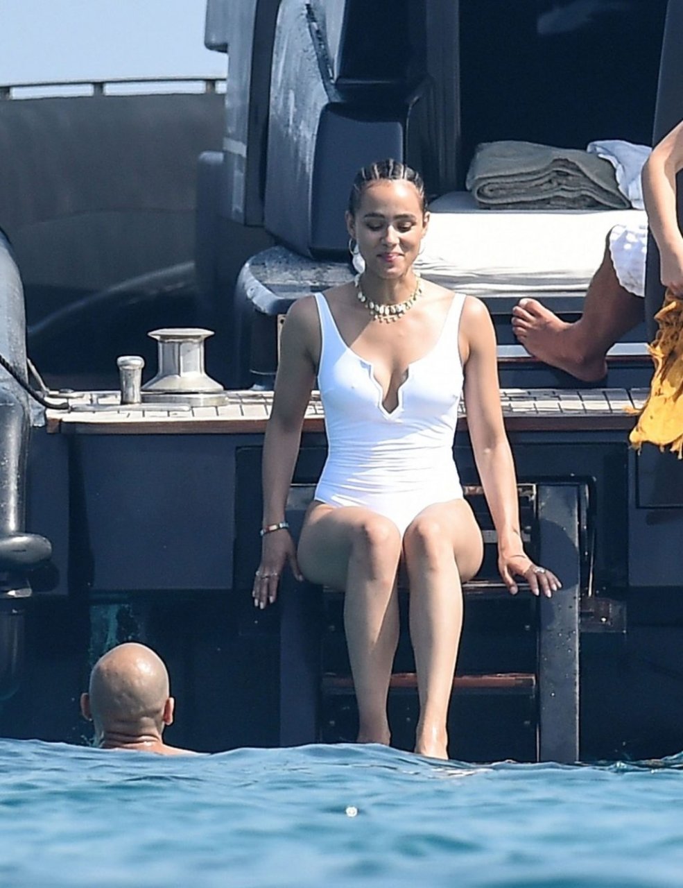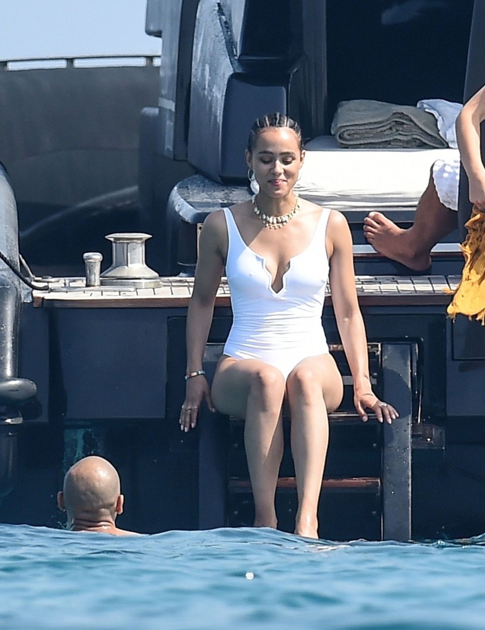 Известная по ролям в “Игре престолов” и трилогиях “Форсаж”, сексуальная британская актриса Натали Эммануэль позирует в белом купальнике под палящим солнцем во время отпуска с возлюбленным Алексом Ланипекуном в Италии, 12.08.2019.