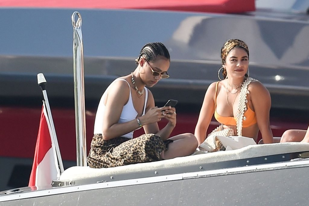 Актрису сопровождали её лучшая подруга Ванесса Хадженс с её парнем Остином Батлером и модель Джорджия Гиббс с новым бойфрендом Томми Чиабра — все они наслаждались временем на их роскошной яхте.