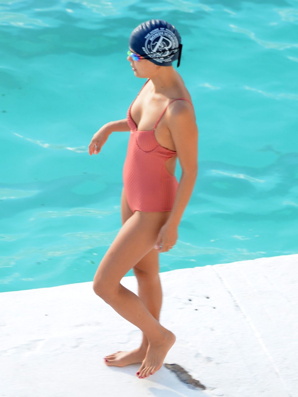 ‘Звезда “Династии” Натали Келли, 33 года, позирует топлесс и делится поцелуем с женихом у бассейна после утреннего заплыва на Бонди, Австралия, 17.04.2018.