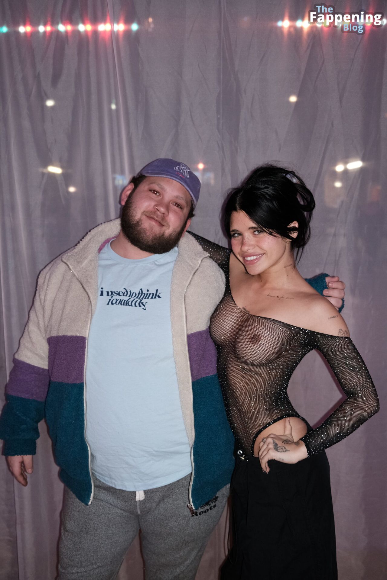 Несса Барретт была замечена в сетчатом топе без бюстгальтера во время встречи с фанатами в Чикаго, 20.03.2023.