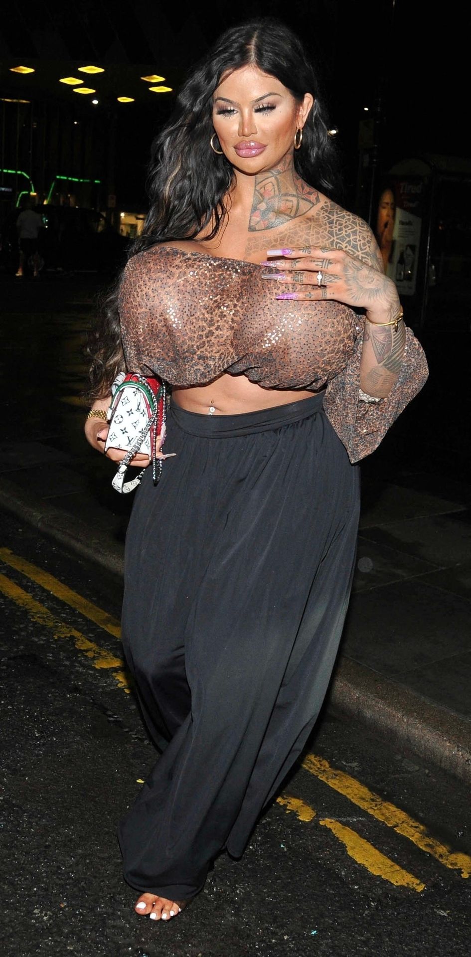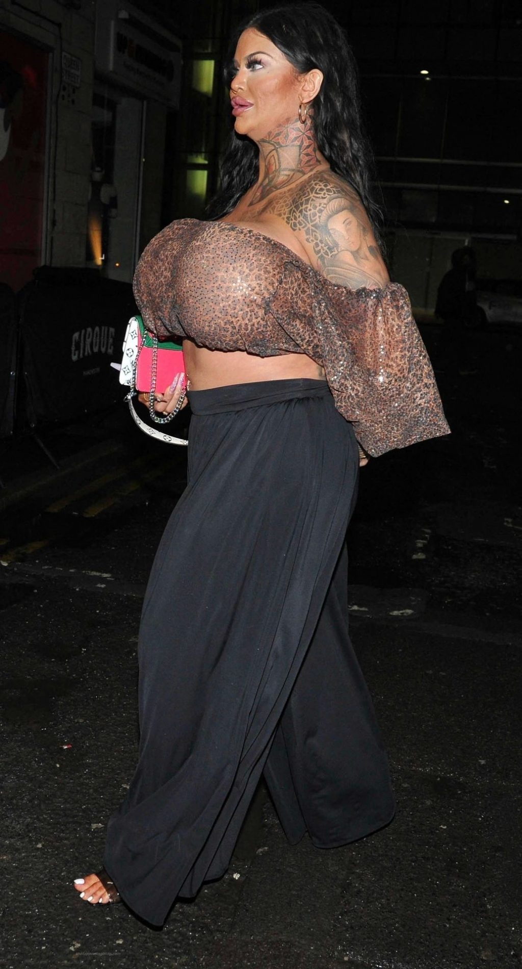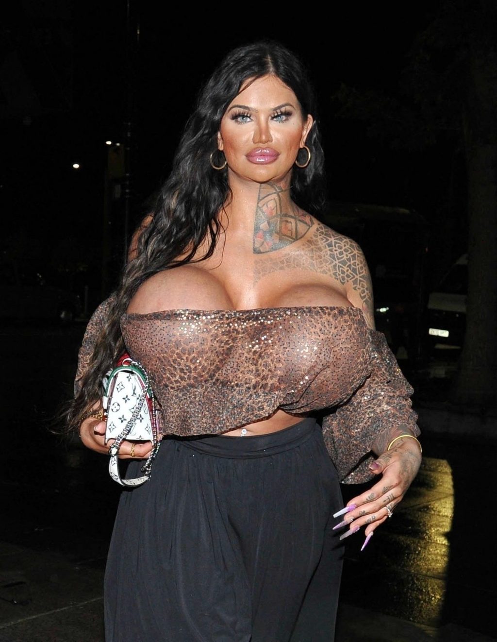 Британская модель Ники Валентина Роуз, у которой самые огромные груди в Великобритании и которая потратила более 55 тысяч долларов, замечена на ночной прогулке в Манчестере, 08/05/2021.