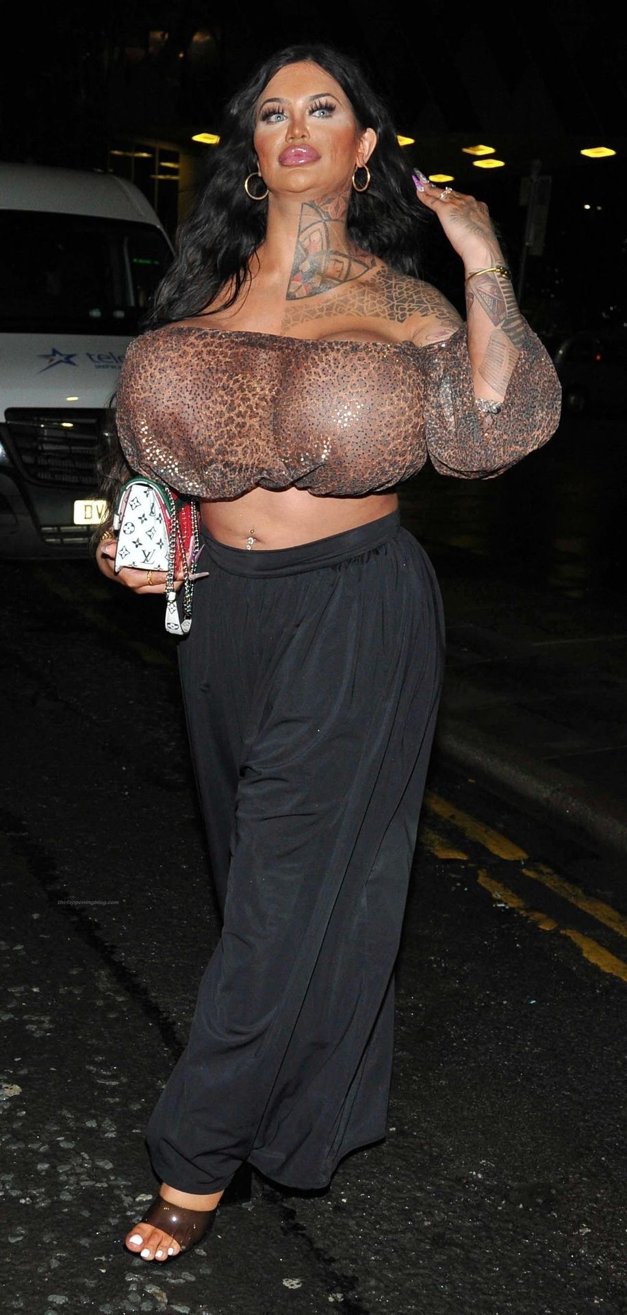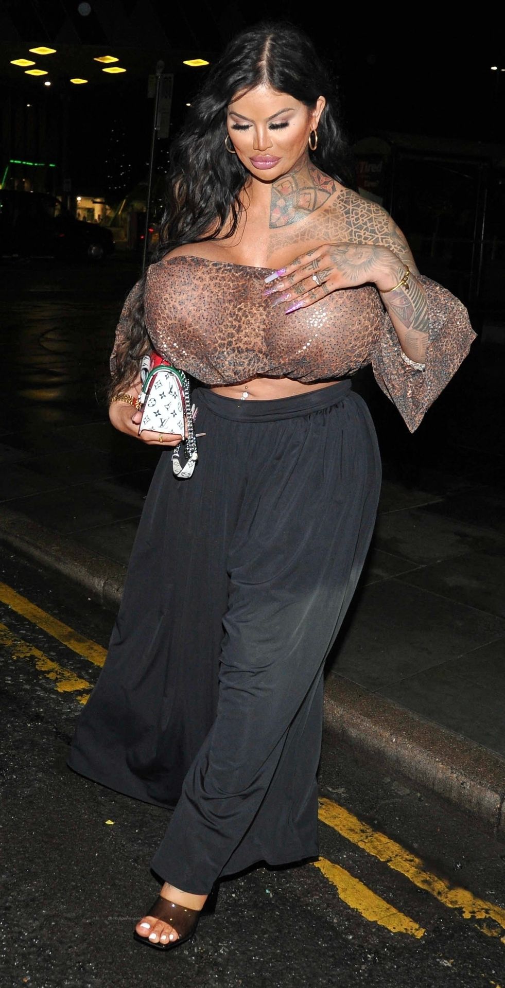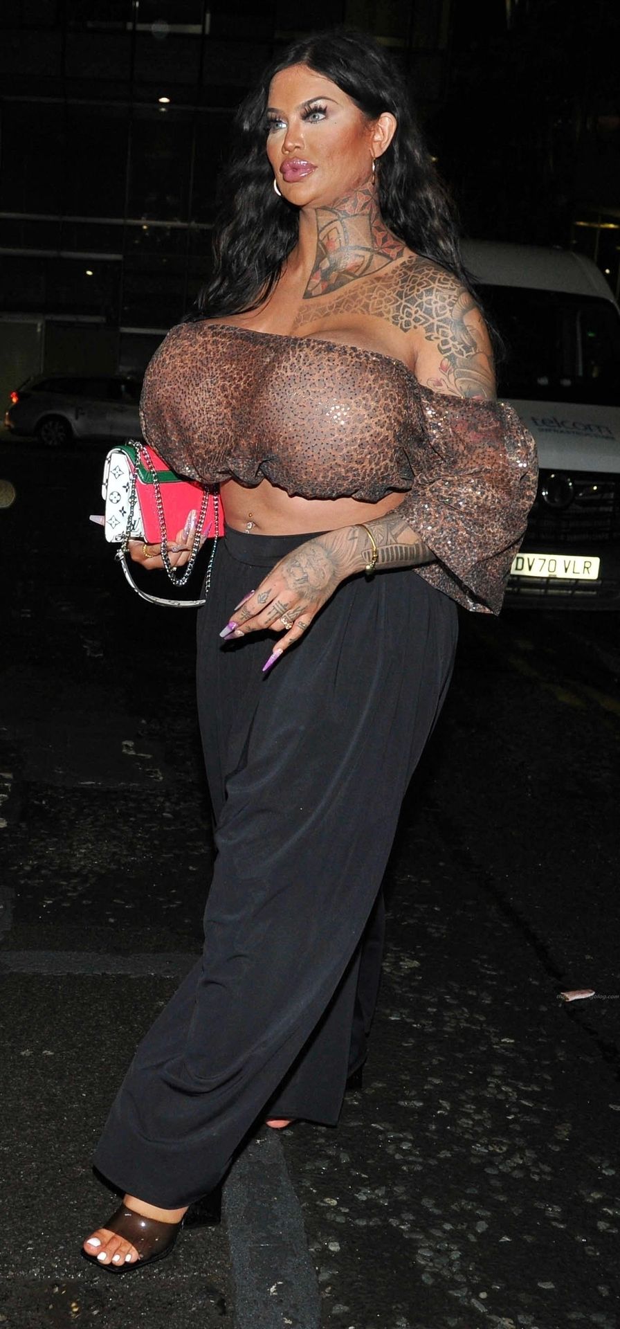 Британская модель Ники Валентина Роуз, у которой самые огромные груди в Великобритании и которая потратила более 55 тысяч долларов, замечена на ночной прогулке в Манчестере, 08/05/2021.