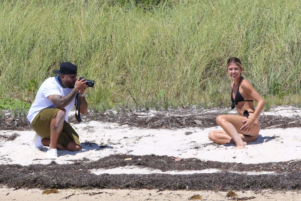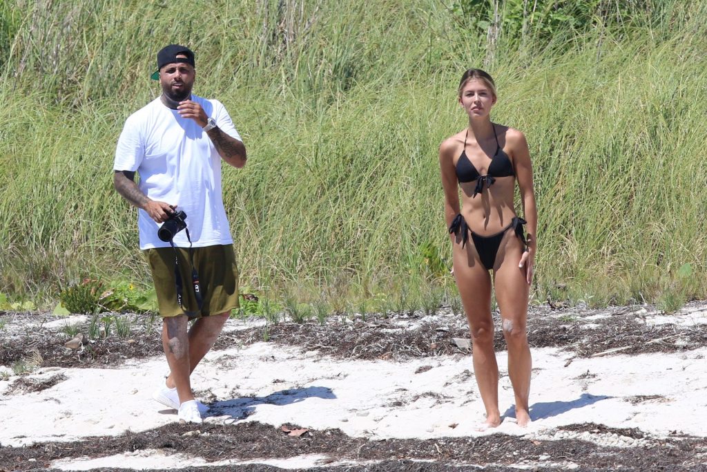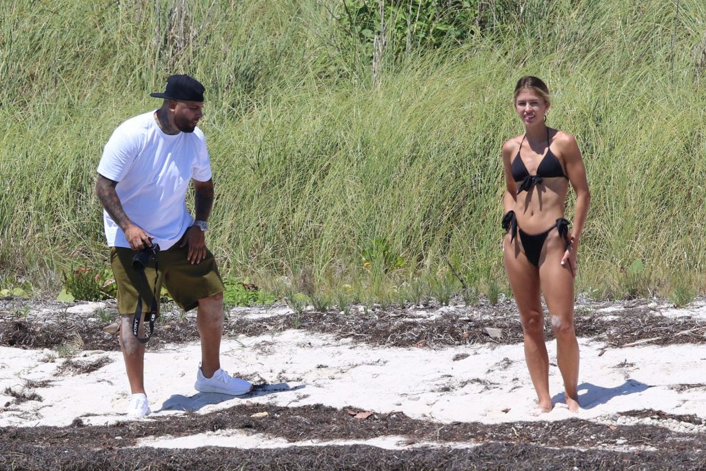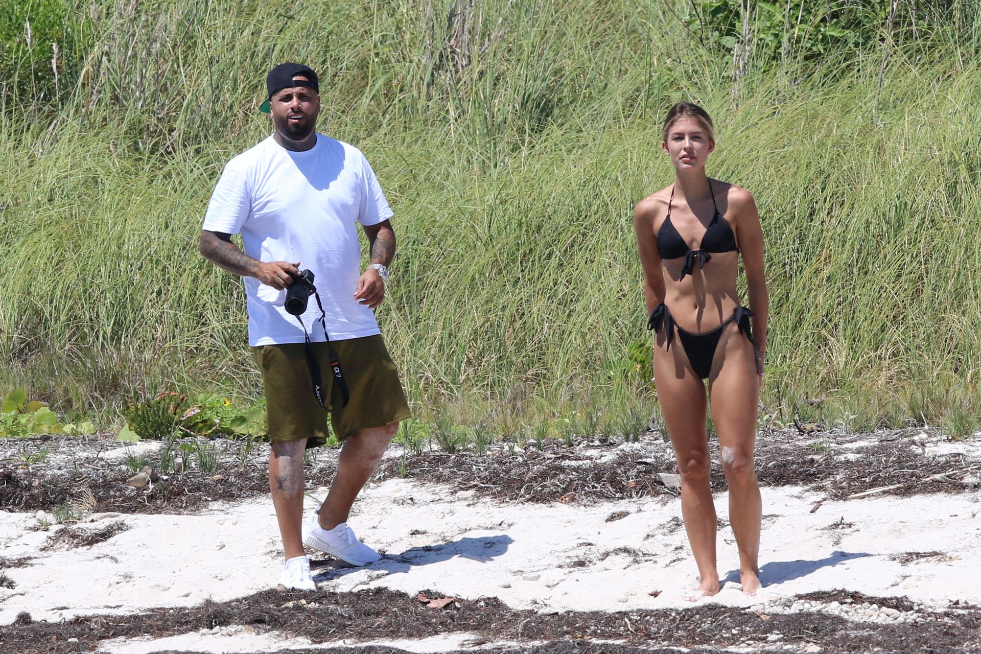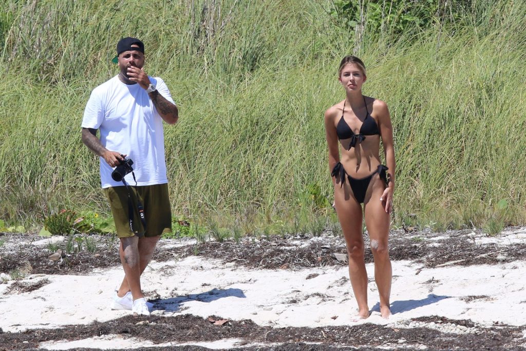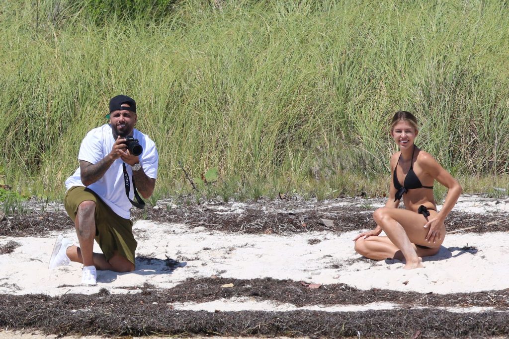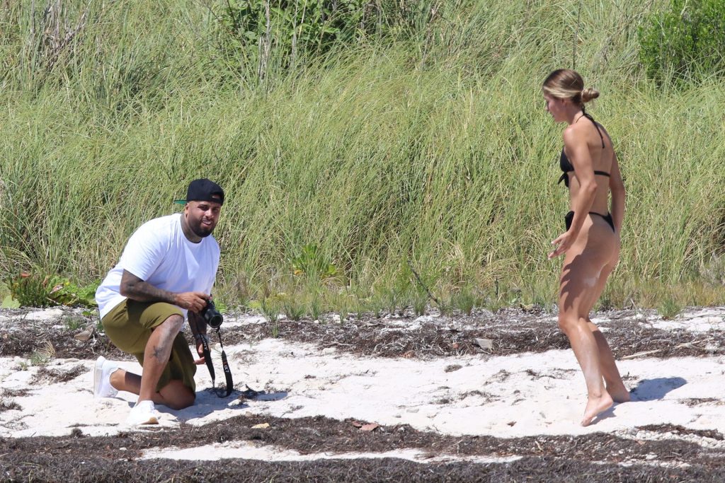 Nicky Jam фотографирует свою новую жену, модель Сидни Моро в бикини на пустынном пляже в Майами, 10.05.2020.