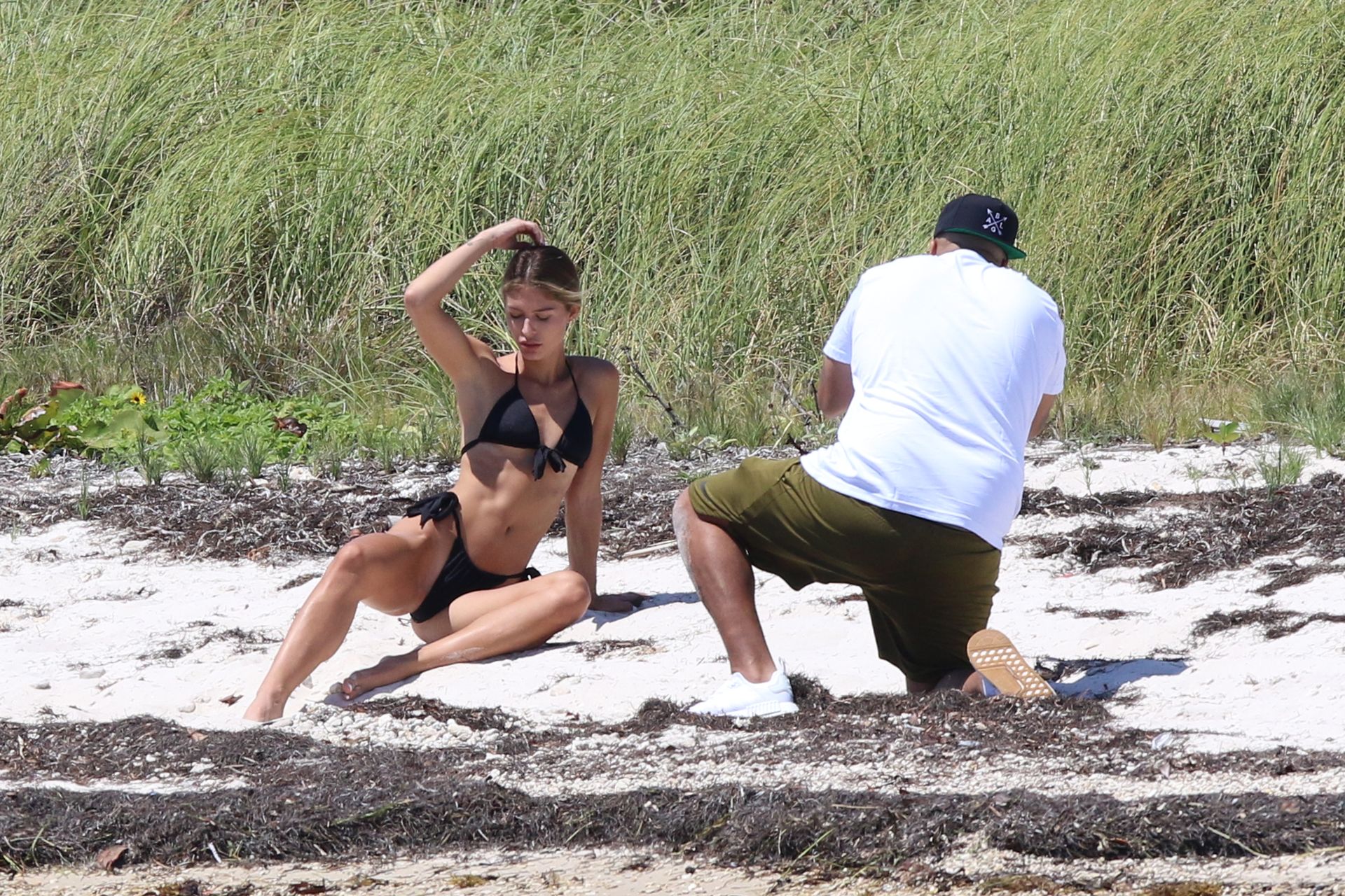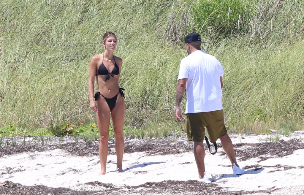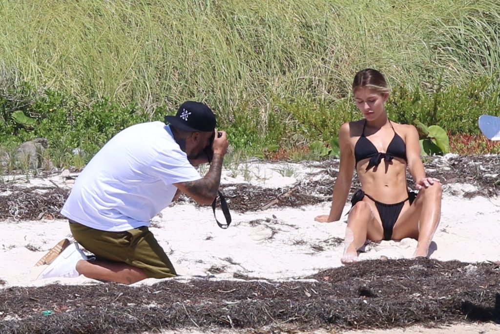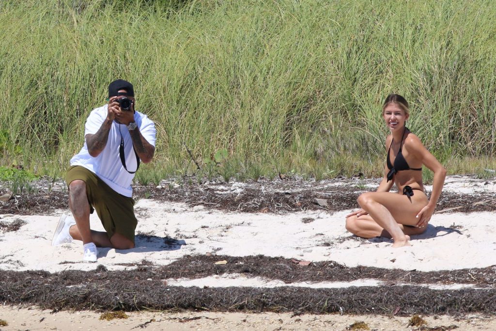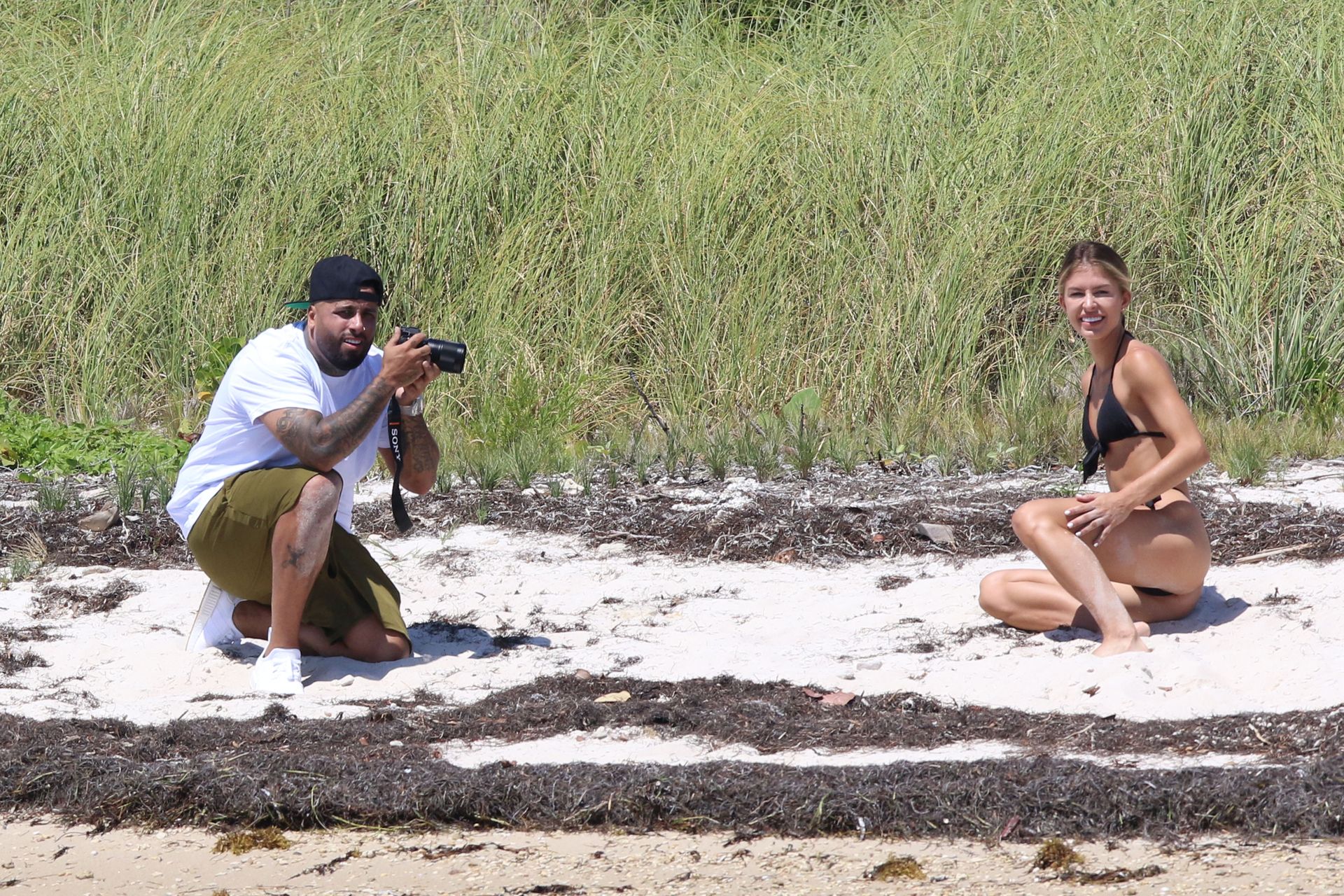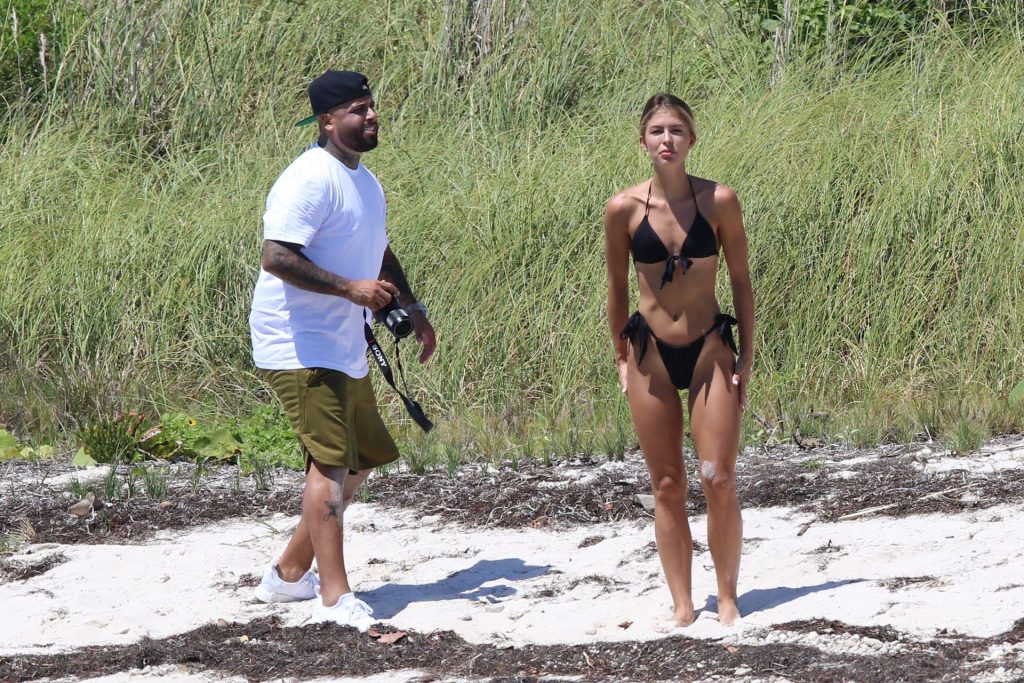 Nicky Jam фотографирует свою новую жену, модель Сидни Моро в бикини на пустынном пляже в Майами, 10.05.2020.
