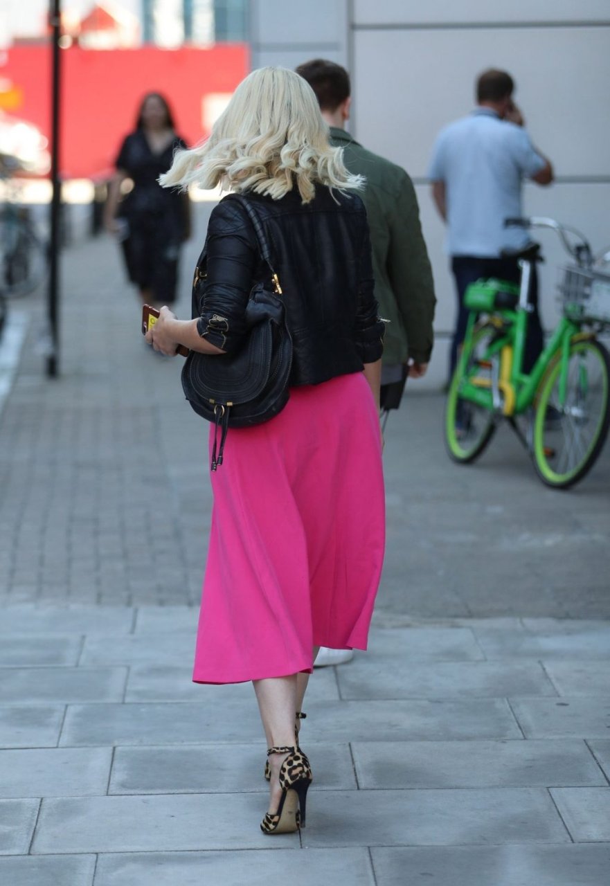 Пышногрудая Никола Маклин (38) выглядит потрясающе в игривом розовом платье, покидая шоу Джереми Вайна в Лондоне, 29.08.2019.