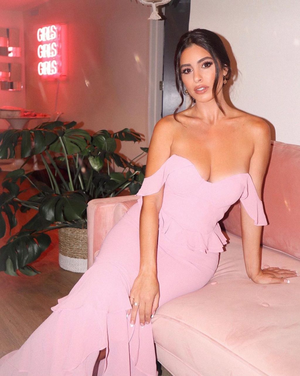 Американская модель Николь Айзакс продемонстрировала свою большую грудь, позируя в розовом платье на красной дорожке 3-й ежегодной церемонии #REVOLVEawards 2019, которая проходила в Goya Studios в Голливуде, 15.11.2019.