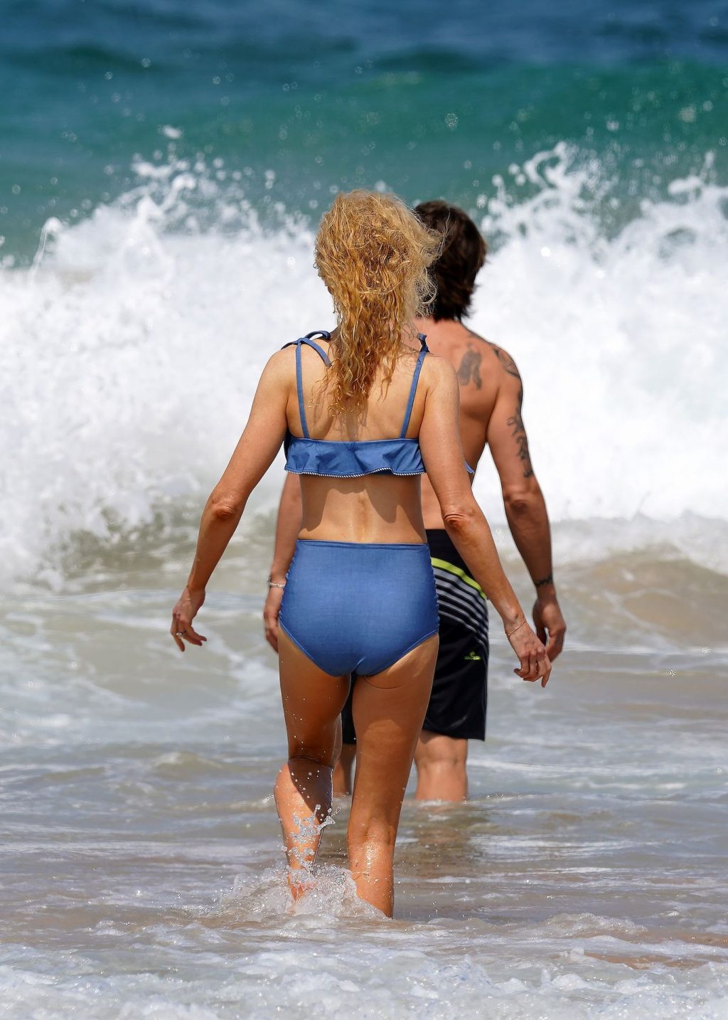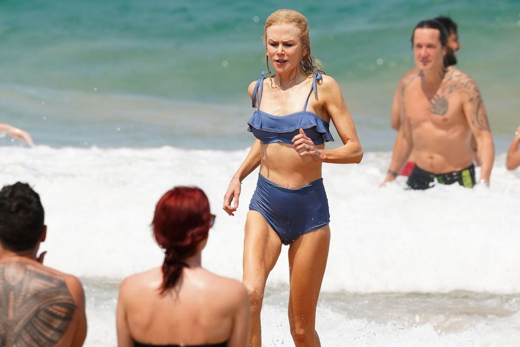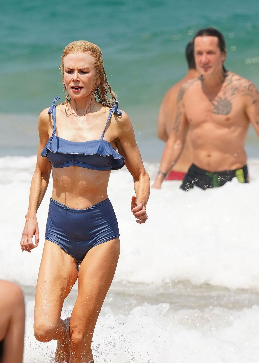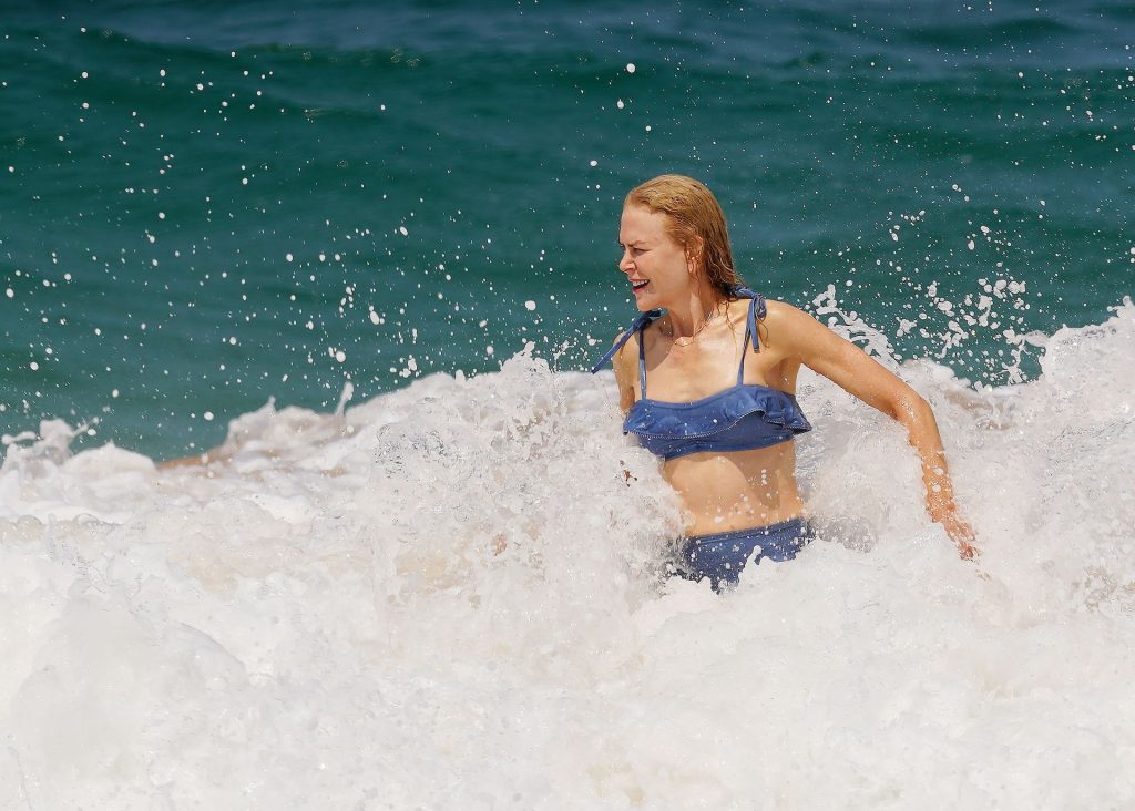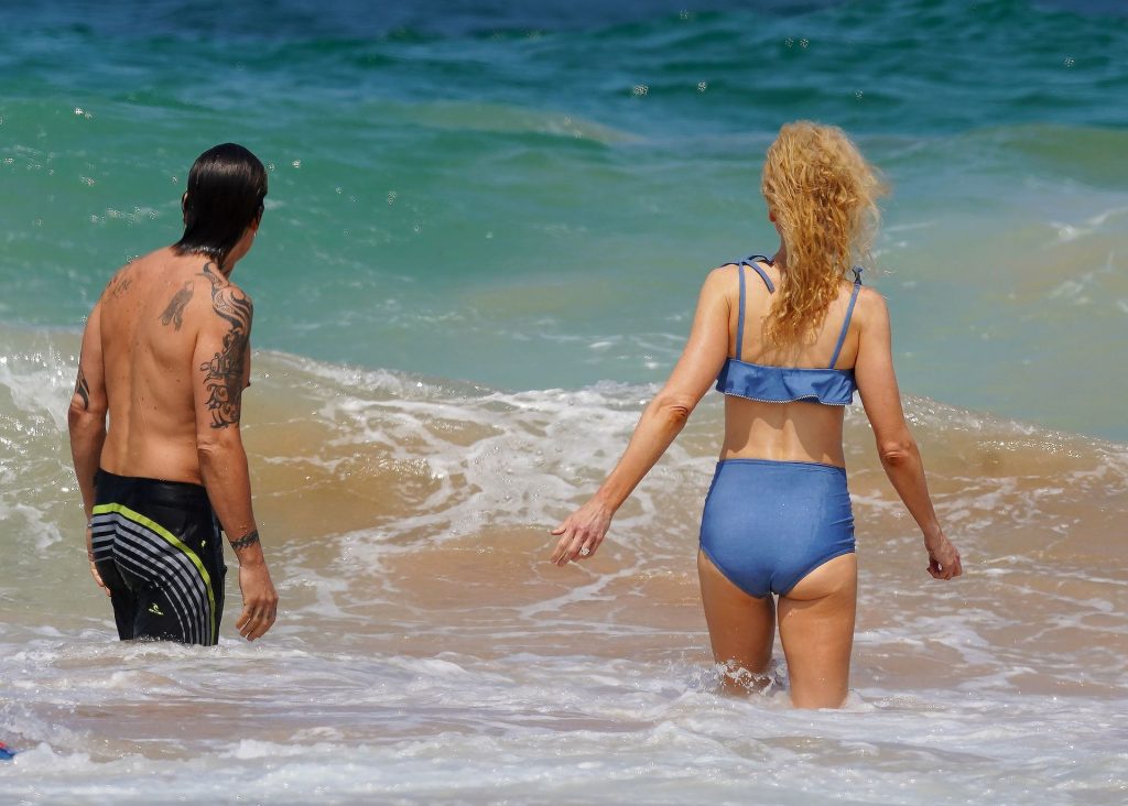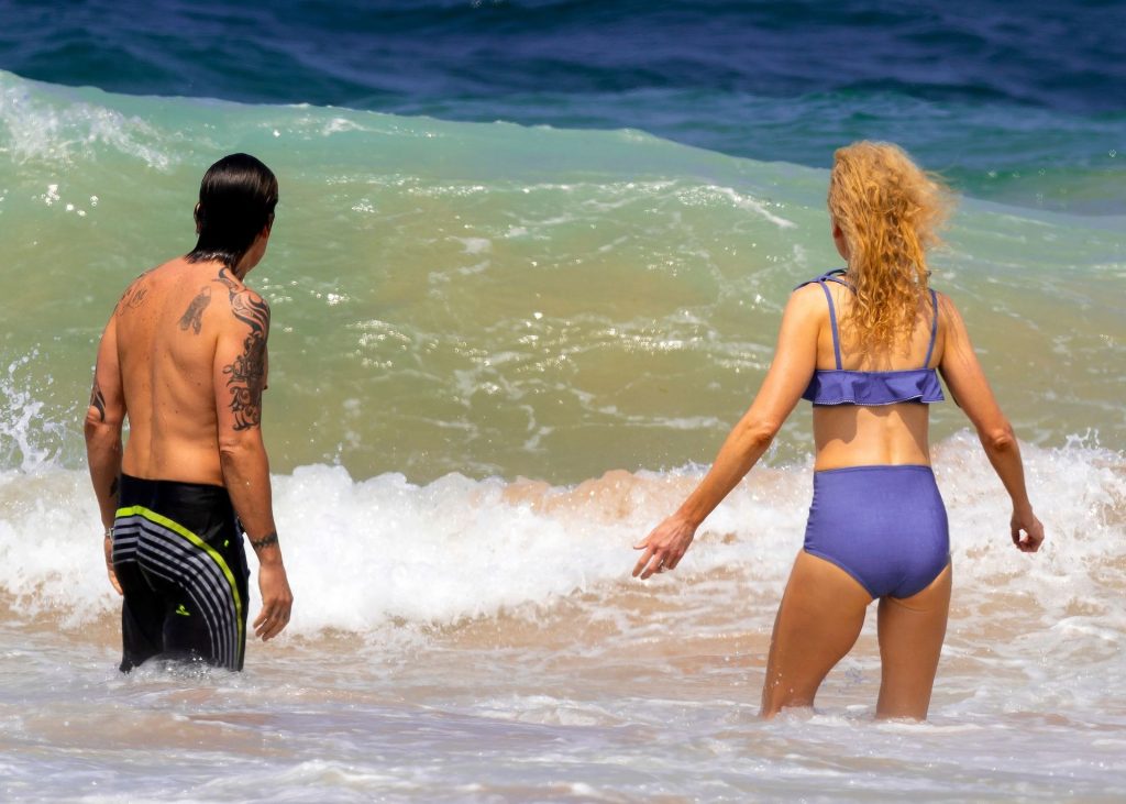 Актриса Николь Кидман была замечена в синем бикини вместе с мужем Кит Урбаном на пляже в Сиднее, 26.12.2019.