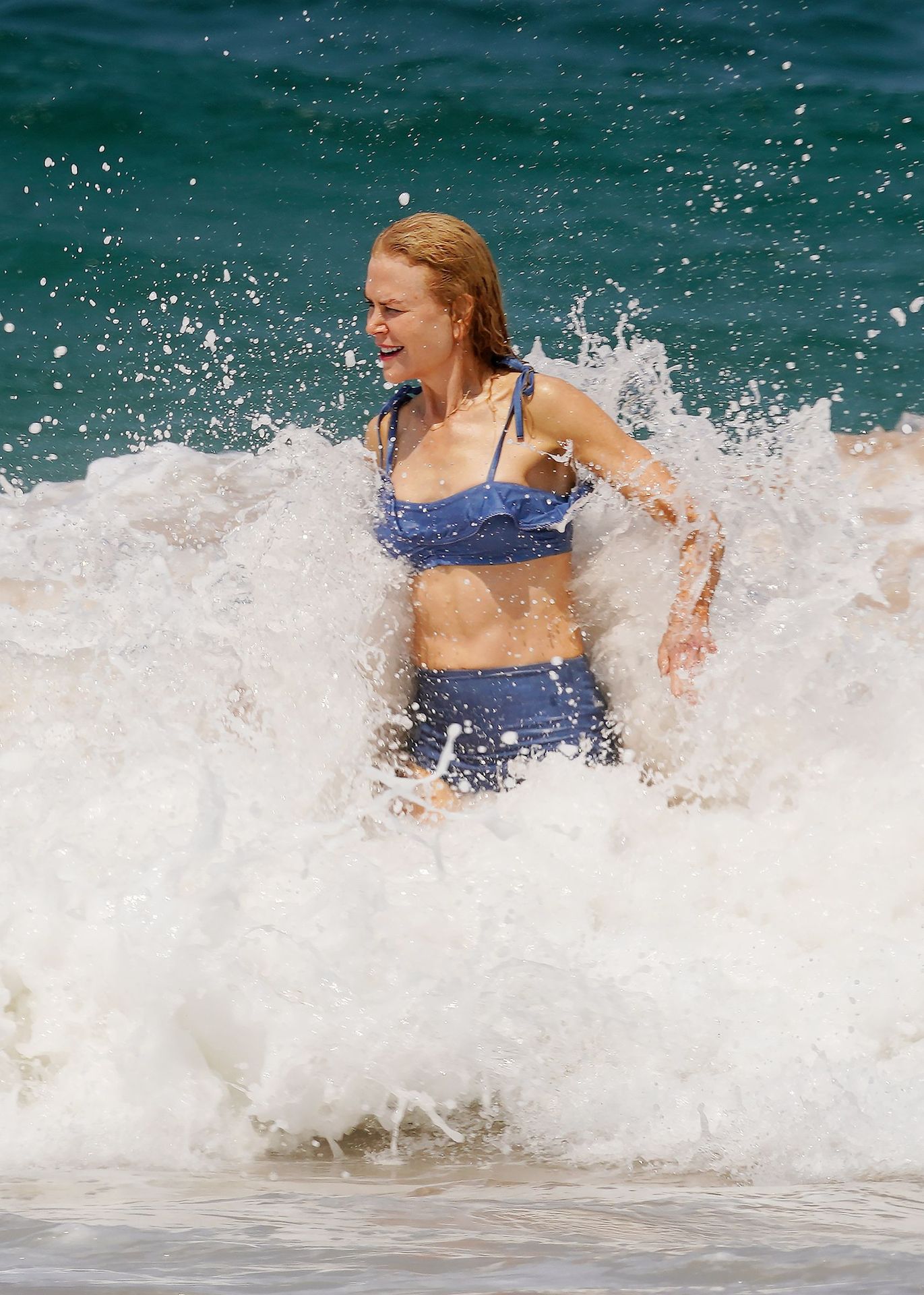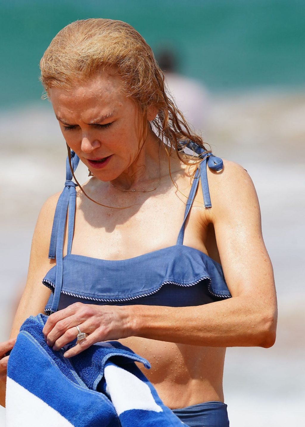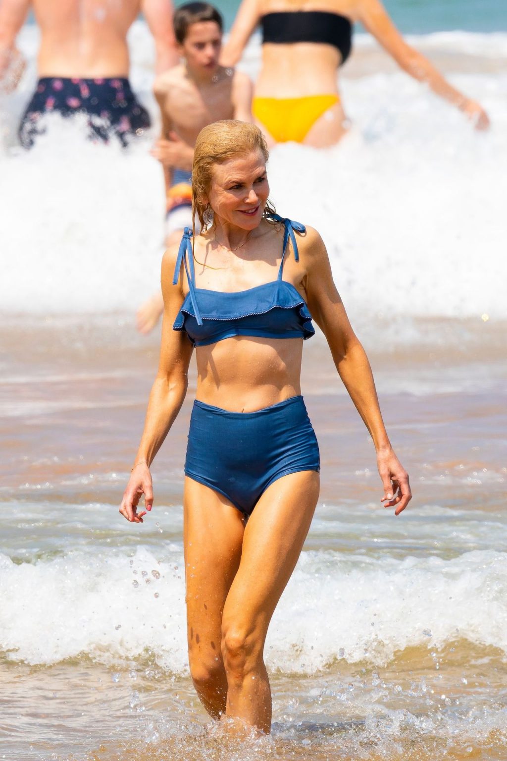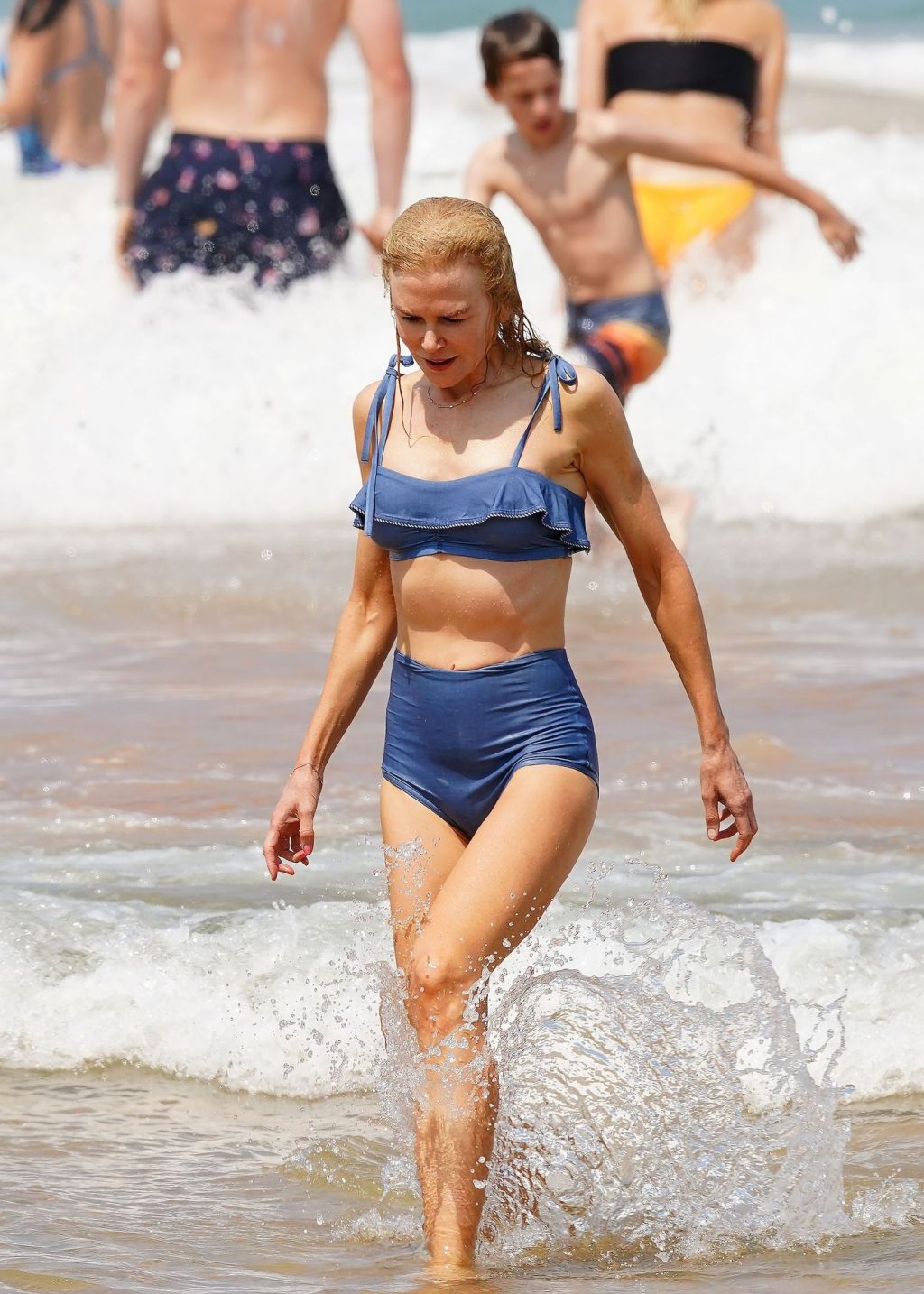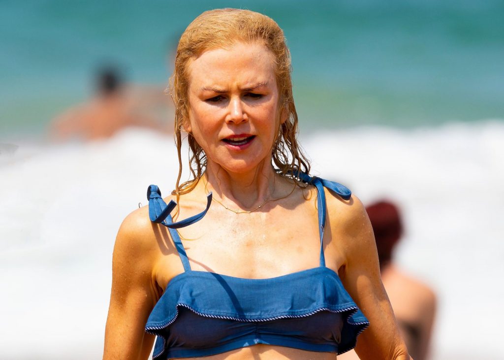 Актриса Николь Кидман была замечена в синем бикини вместе с мужем Кит Урбаном на пляже в Сиднее, 26.12.2019.