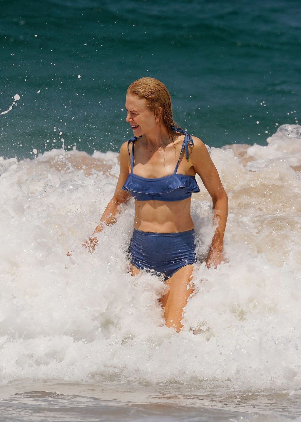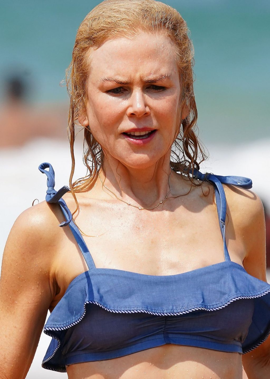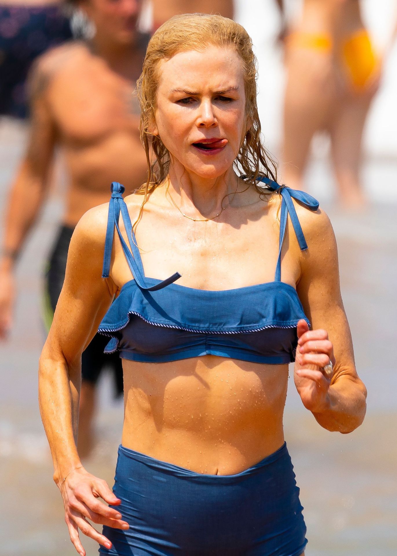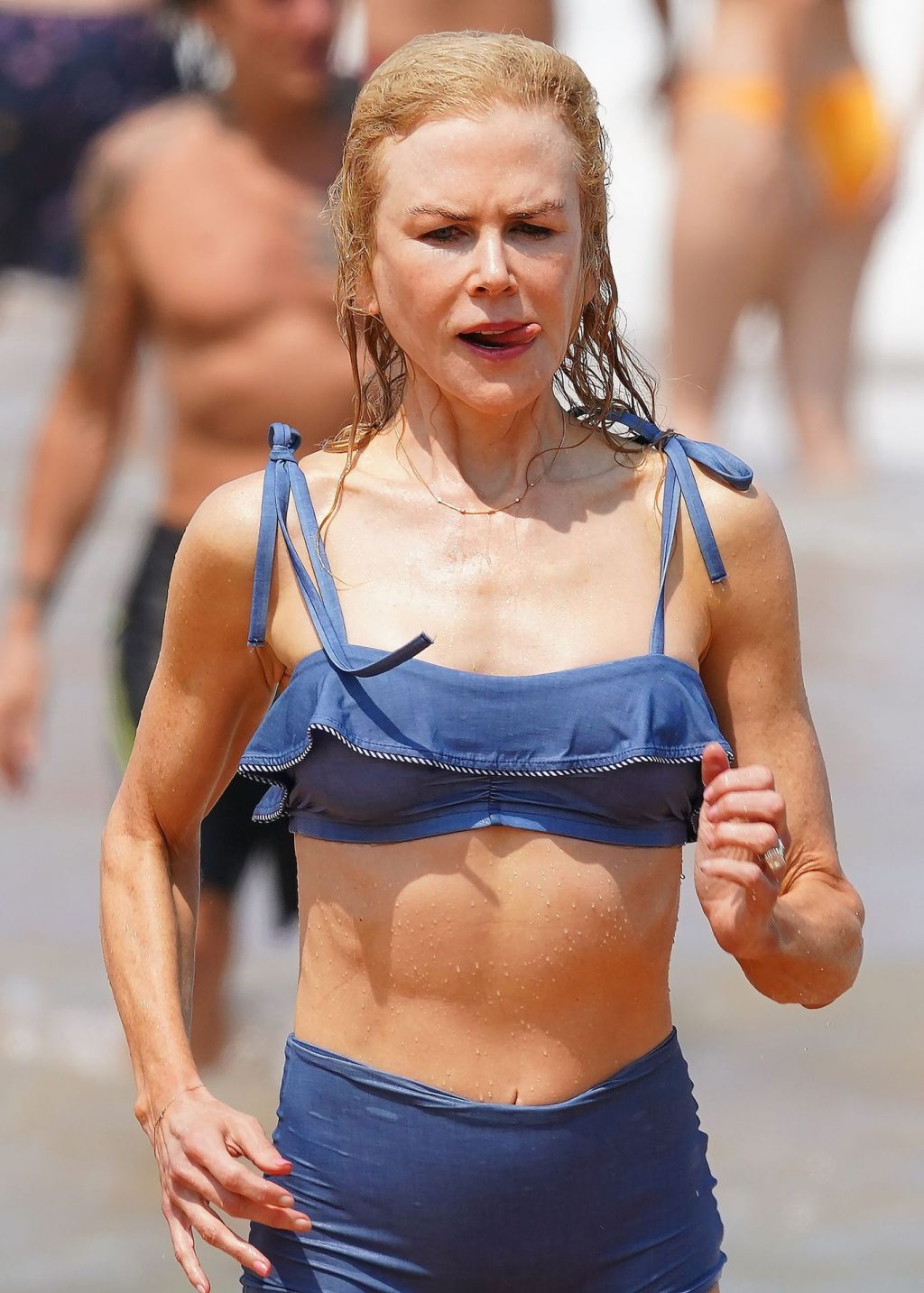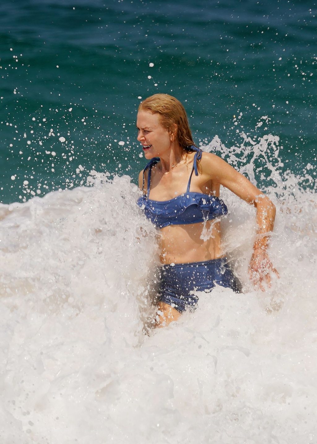 Актриса Николь Кидман была замечена в синем бикини вместе с мужем Кит Урбаном на пляже в Сиднее, 26.12.2019.