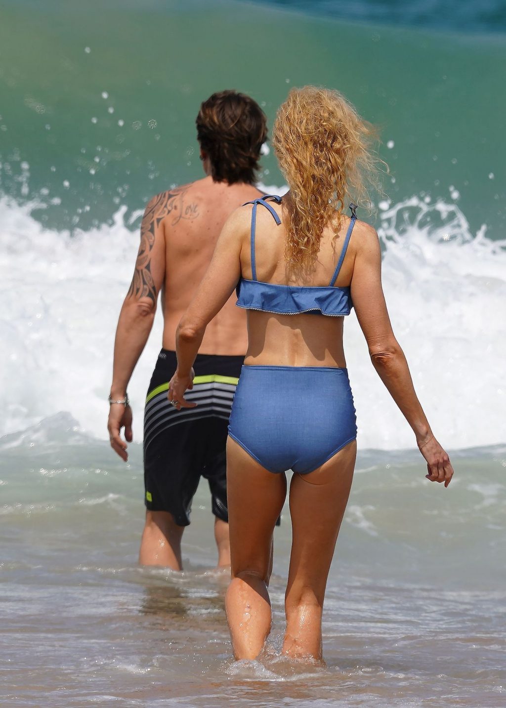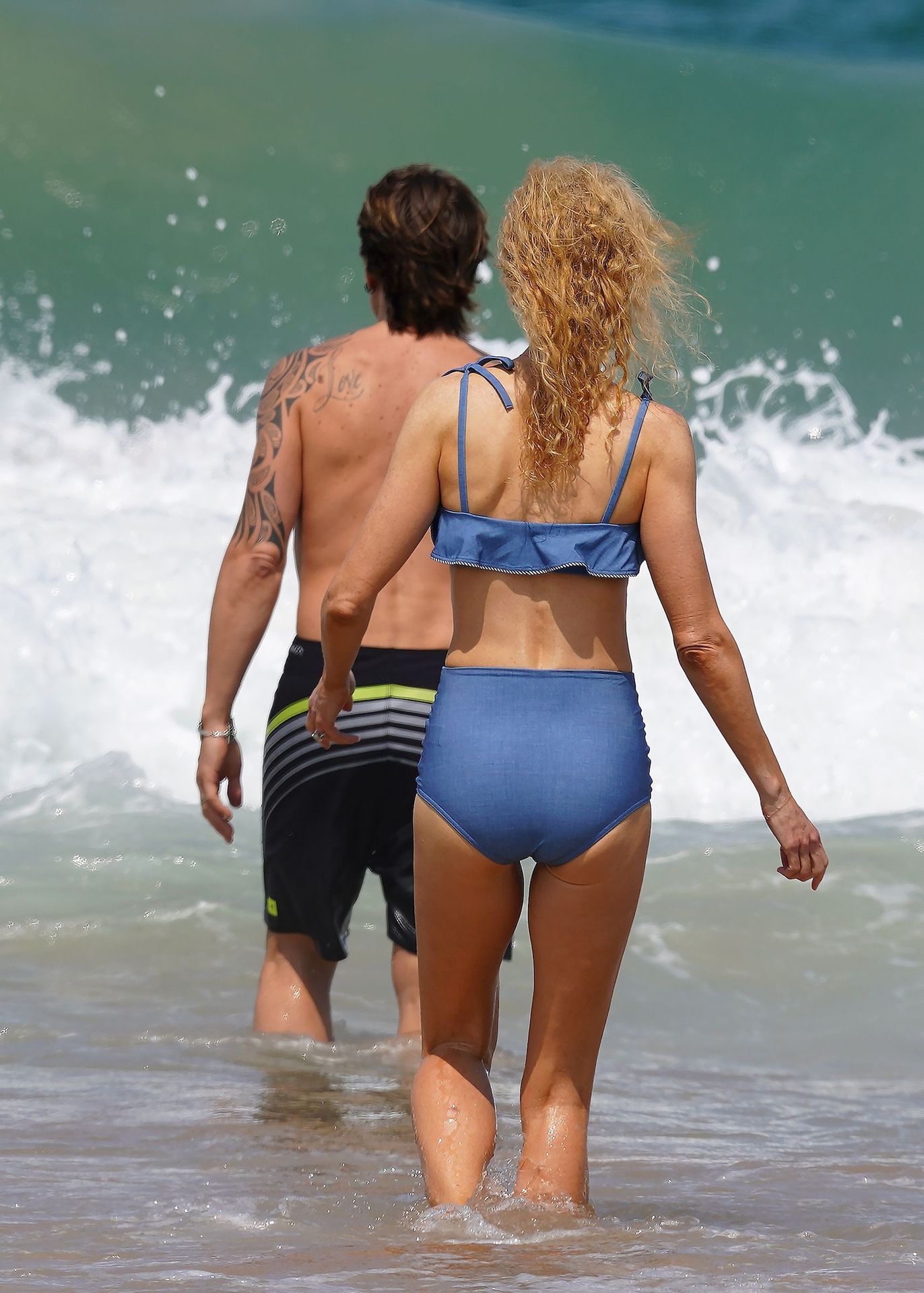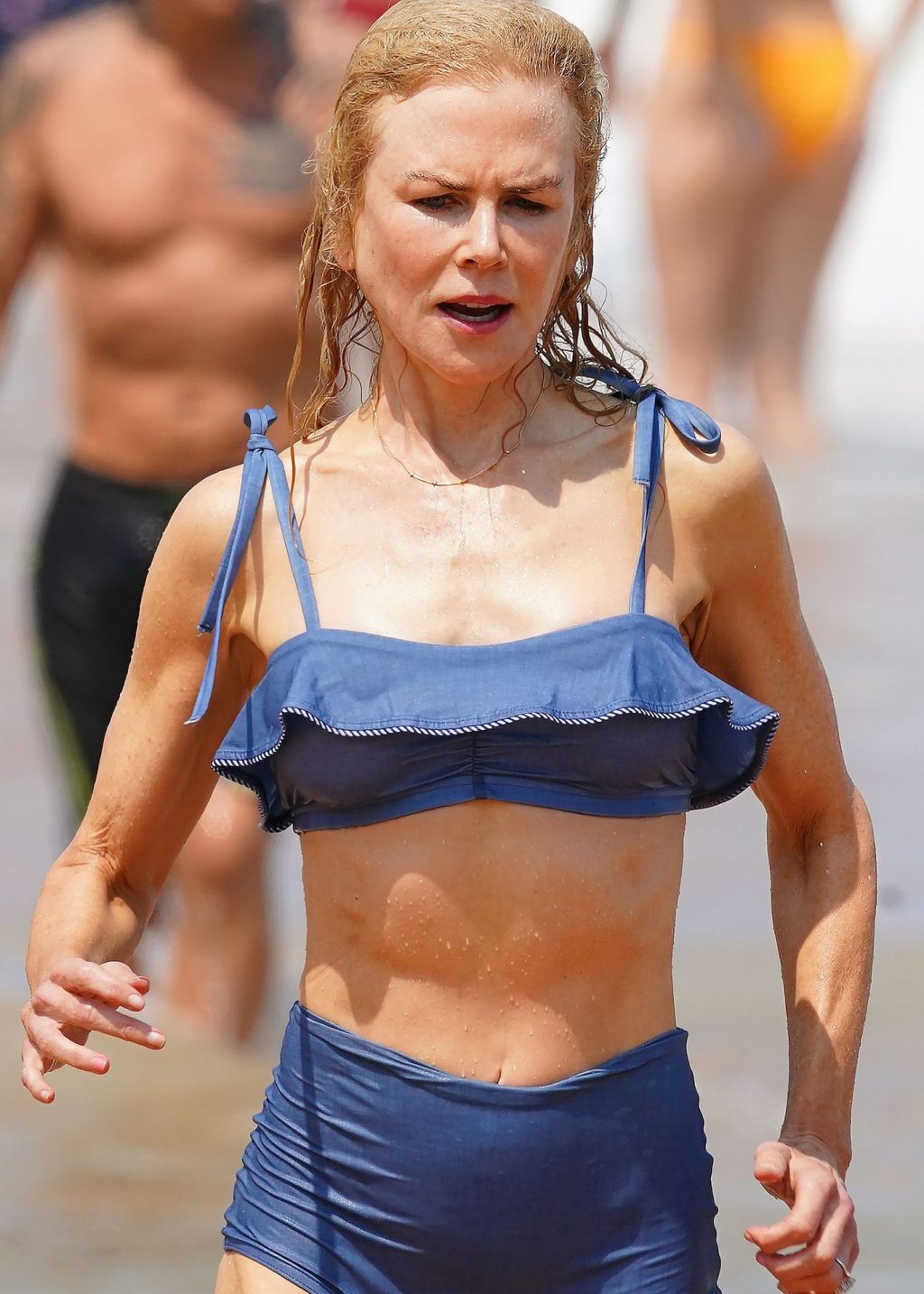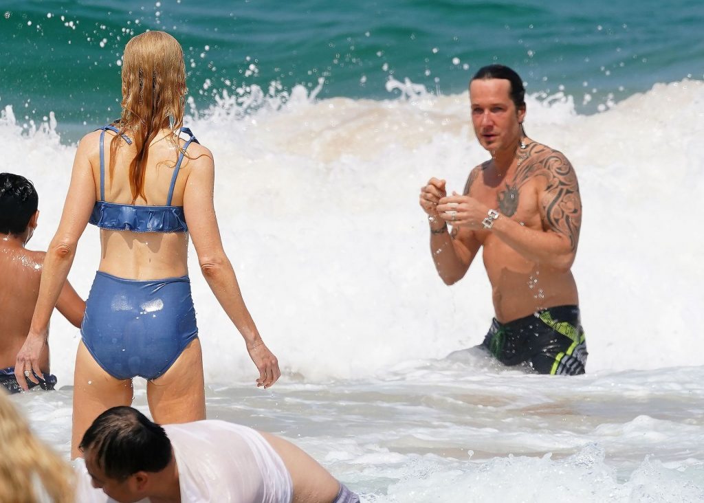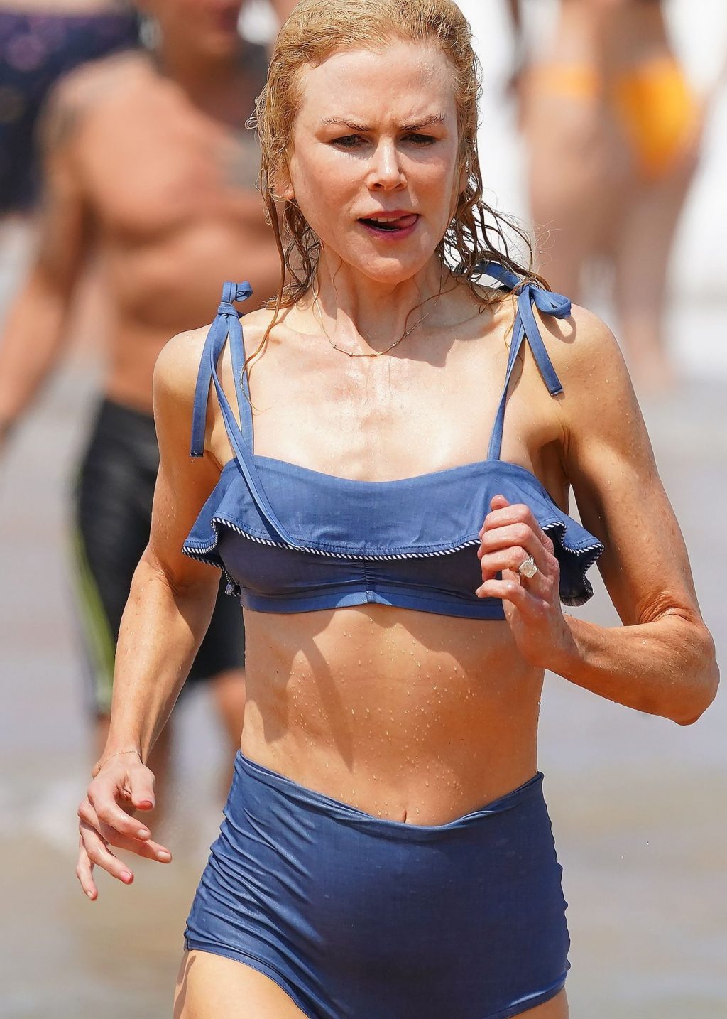 Актриса Николь Кидман была замечена в синем бикини вместе с мужем Кит Урбаном на пляже в Сиднее, 26.12.2019.