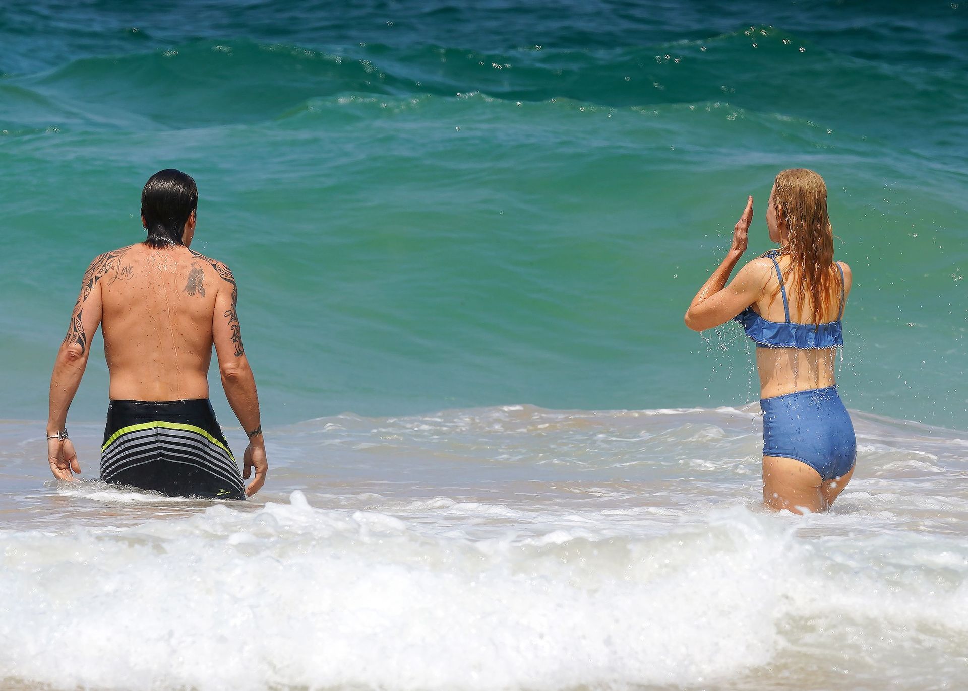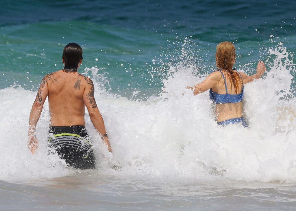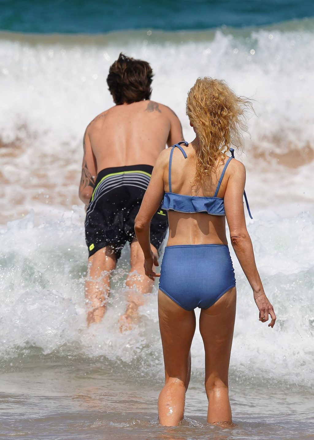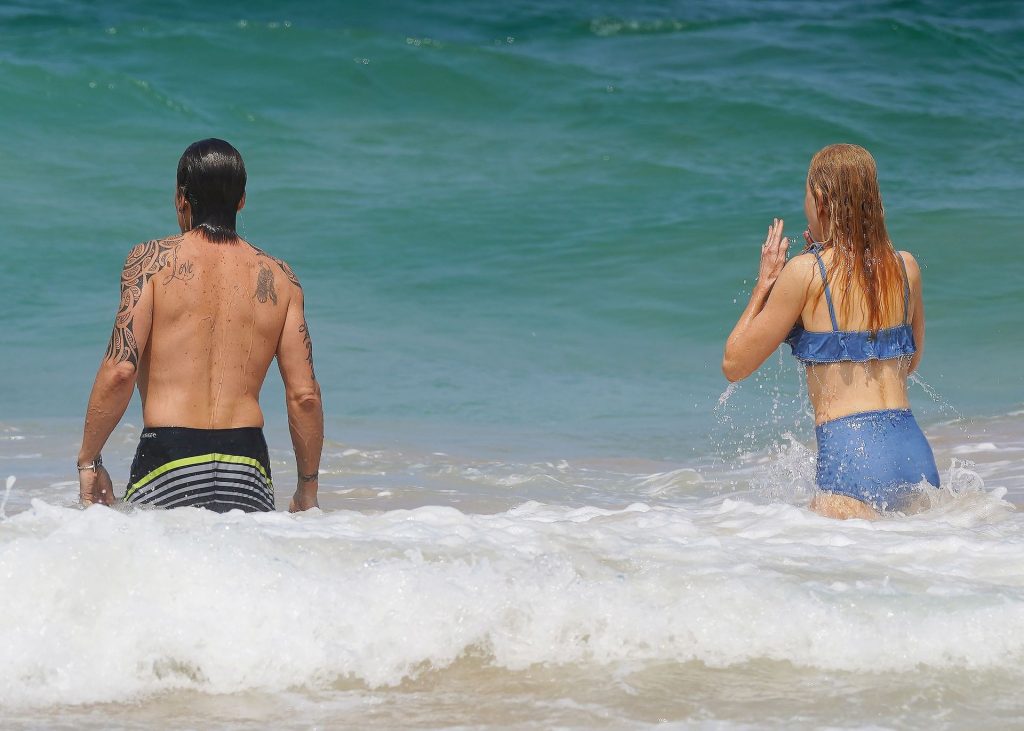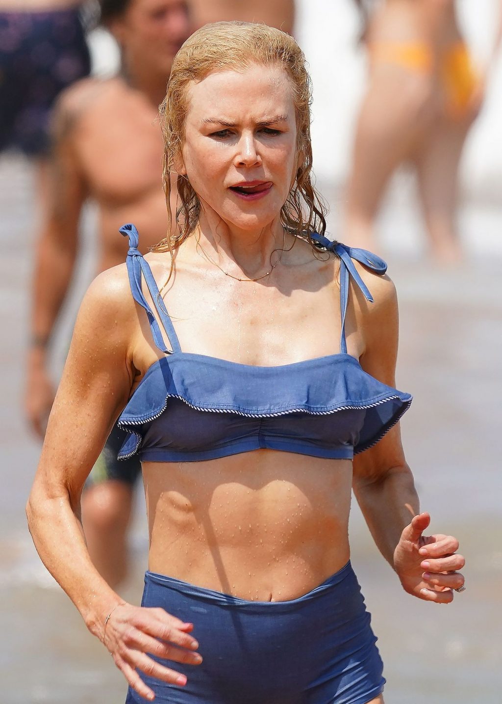 Актриса Николь Кидман была замечена в синем бикини вместе с мужем Кит Урбаном на пляже в Сиднее, 26.12.2019.