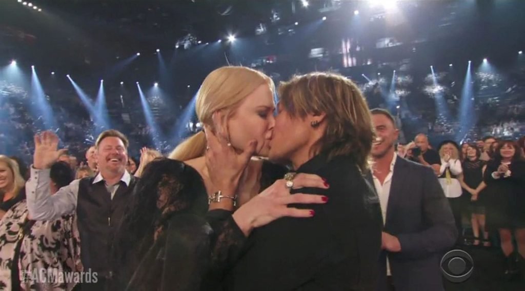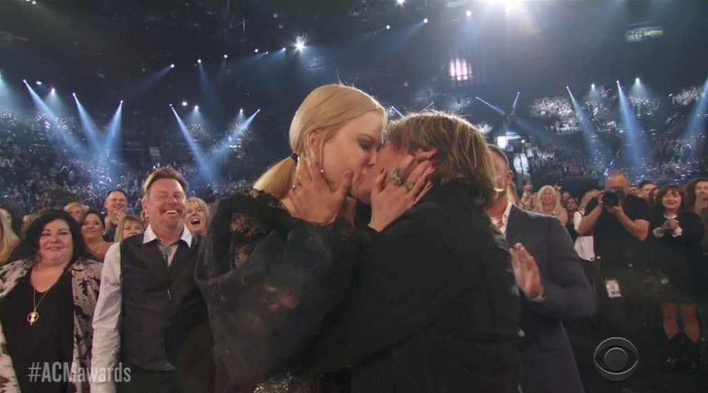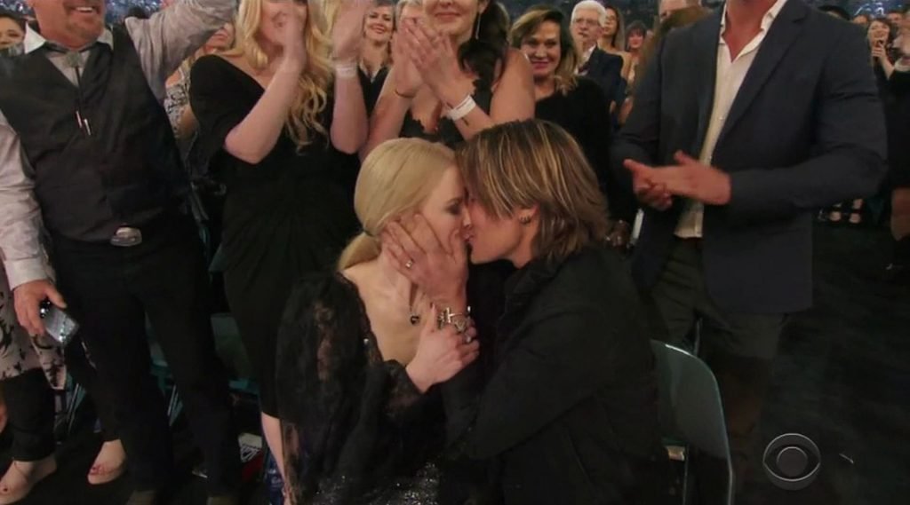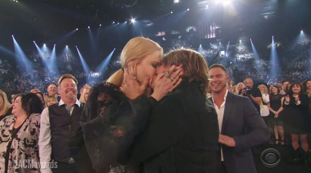 Актриса на мгновение осталась с открытым ртом после того, как Урбан наконец получил звание Артиста года — после девяти предыдущих номинаций! Пара с удивлением посмотрела друг на друга, затем обнялась и обменялась несколькими поцелуями. Поднимаясь на сцену, Урбан начал свою благодарственную речь, поблагодарив Кидман и назвав её своей «девочкой».