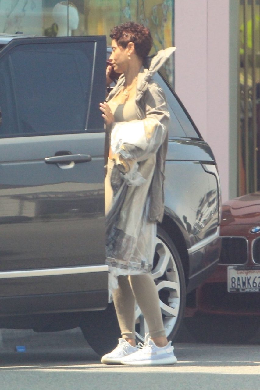Модель Николь Мерфи ходит по магазинам без бюстгальтера в Лос-Анджелесе, 31.05.2019. Звезда продемонстрировала новые кроссовки Yeezy 350.