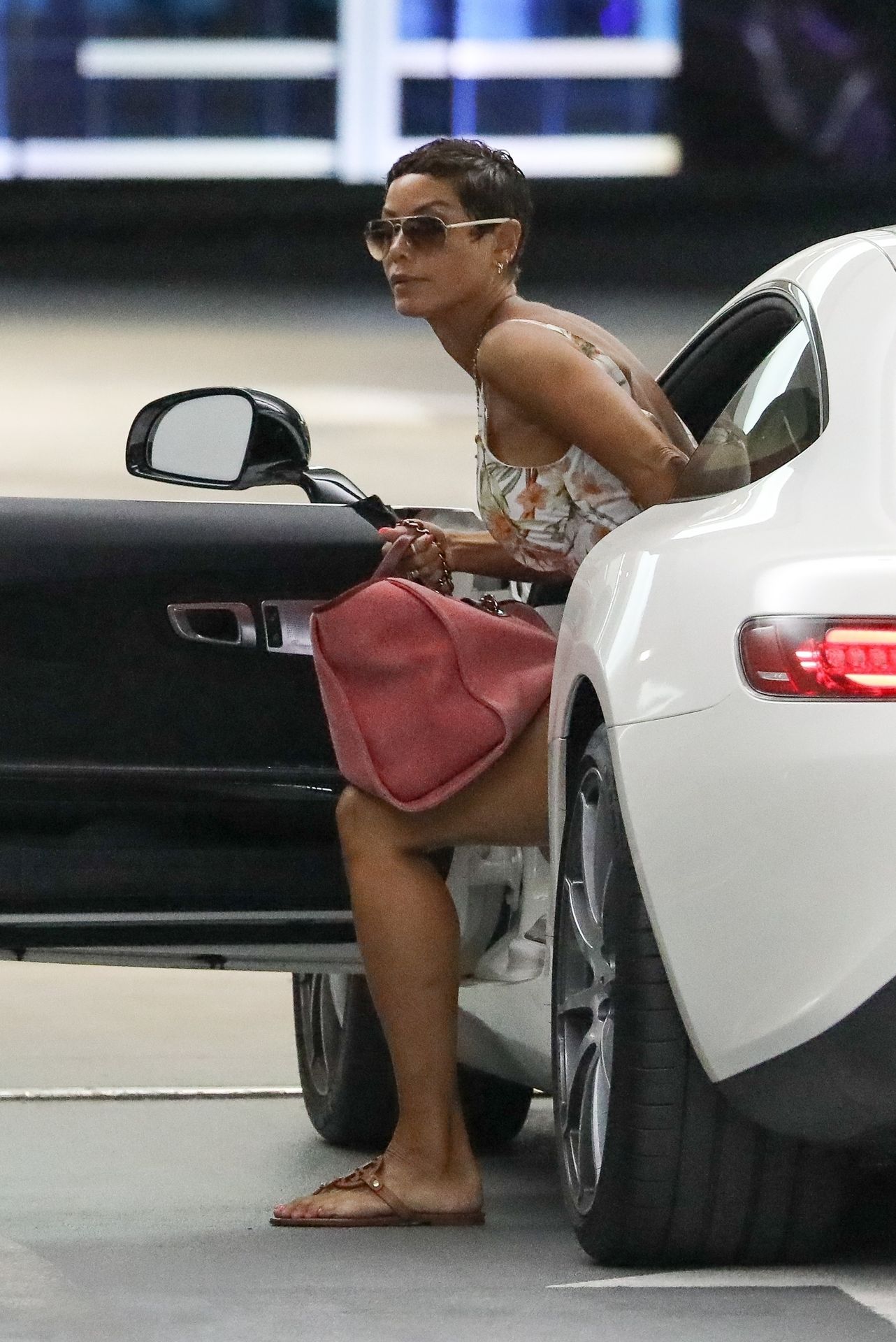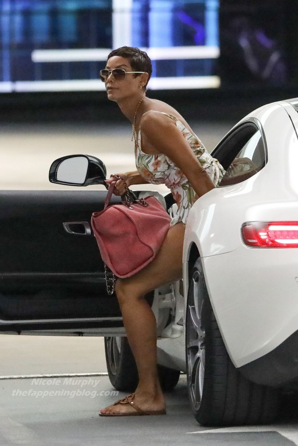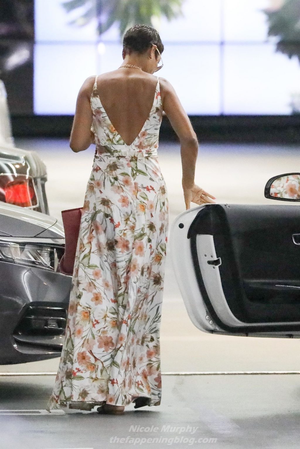 Николь Мерфи поражает в сексуальном платье с разрезом и цветочным принтом, прибывая на обед в Soho House в Вест-Голливуде, 28.10.2020.