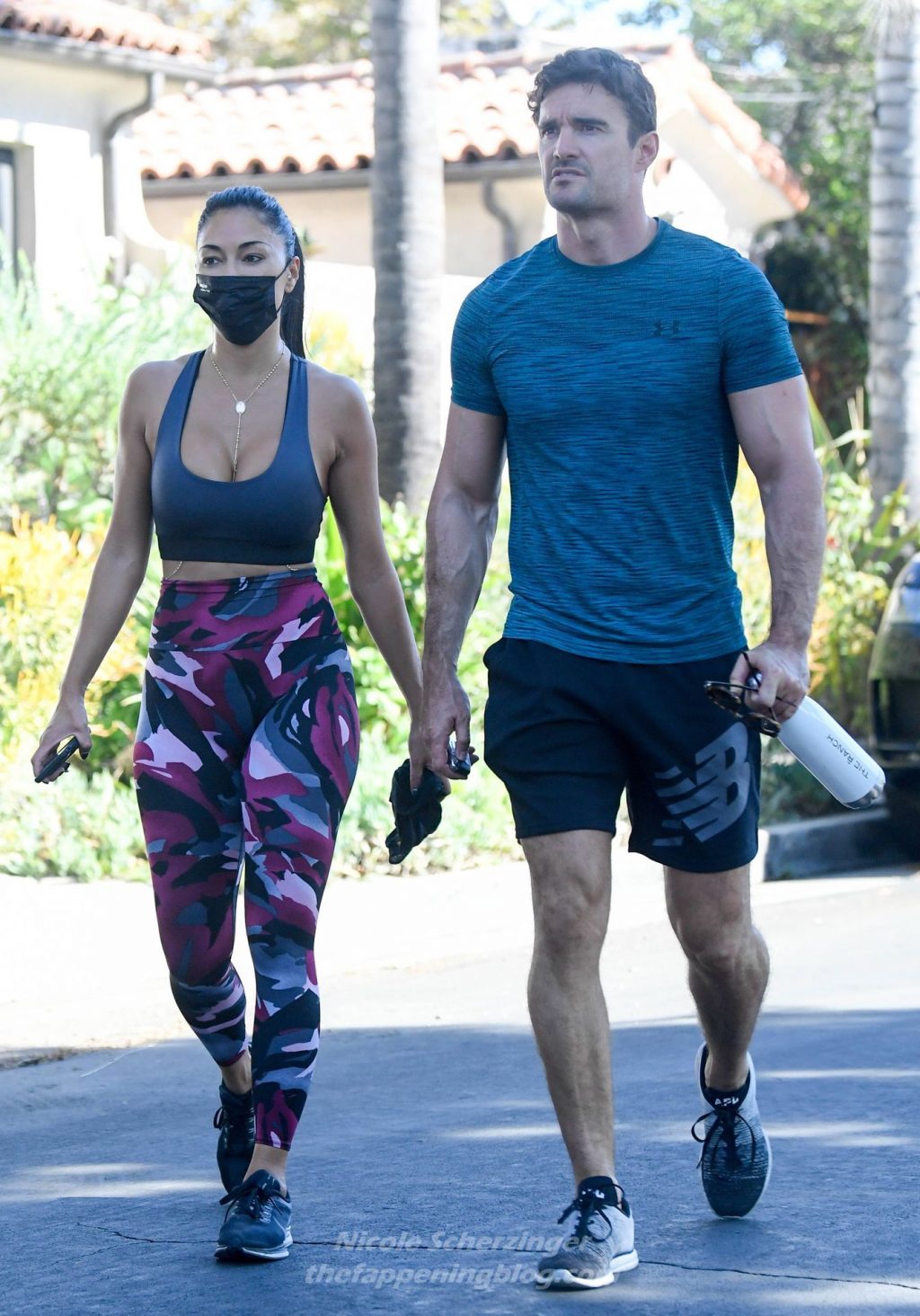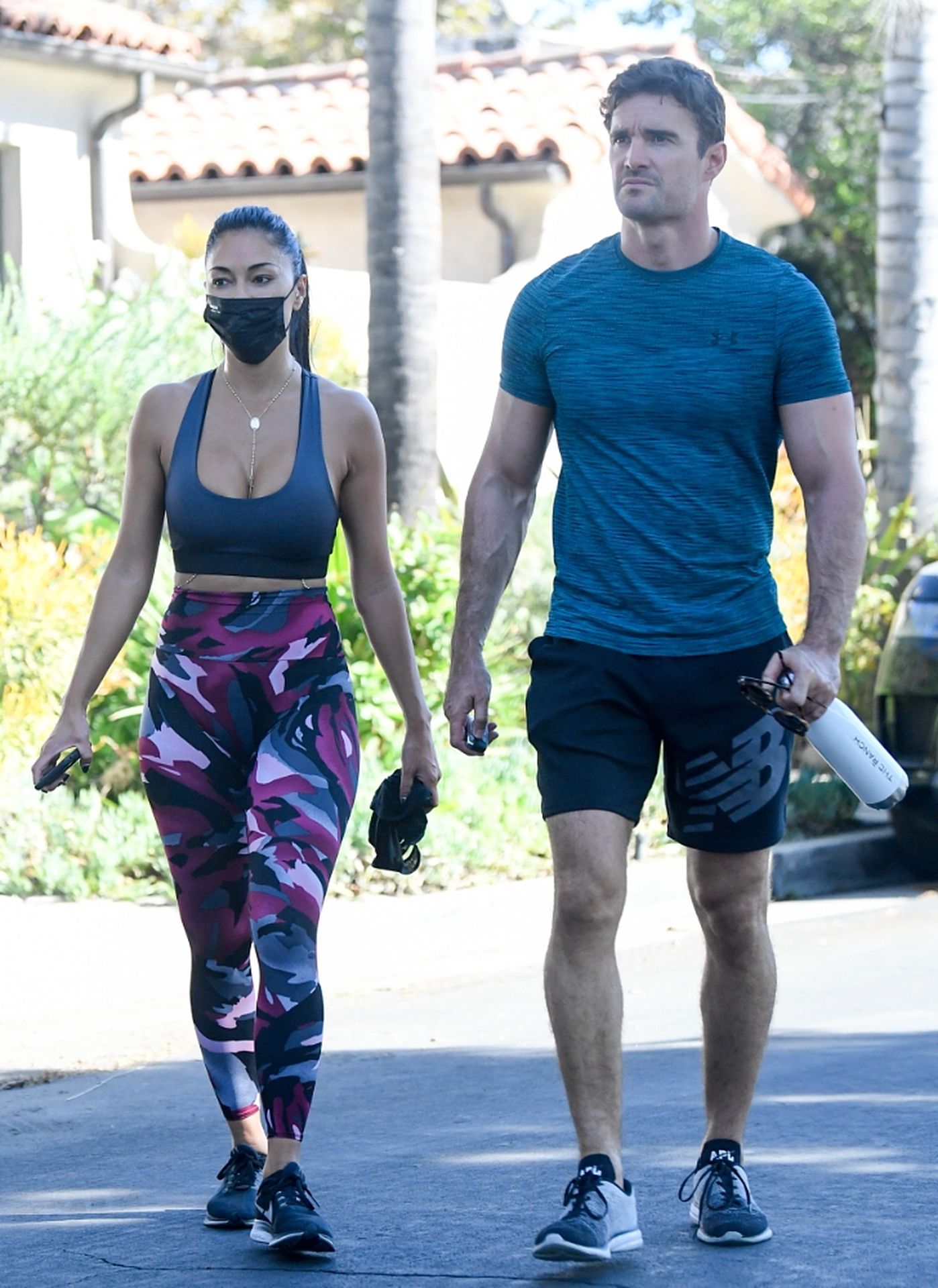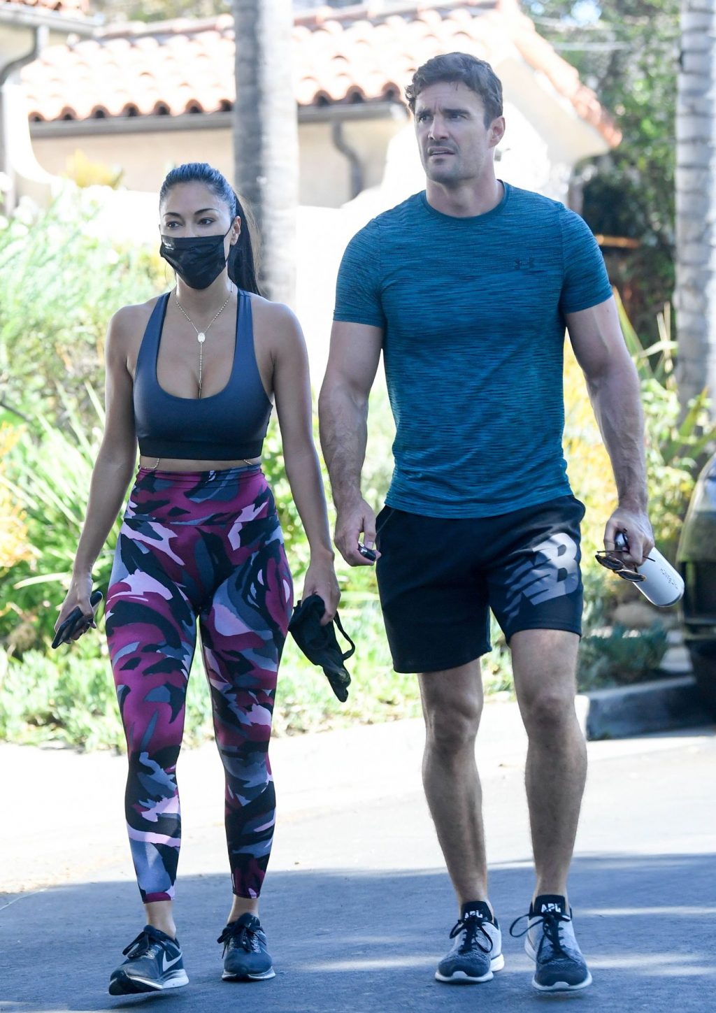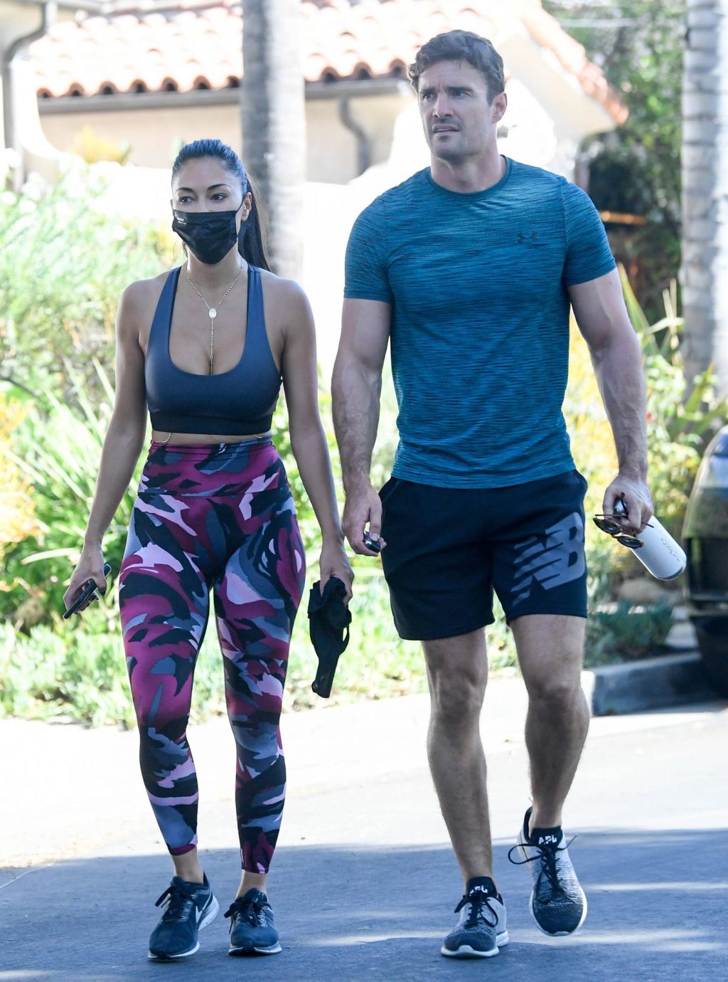 Звезда Фаппенинга Николь Шерзингер и Том Эванс покидают домашний спортзал в Лос-Анджелесе, 11/05/2020.