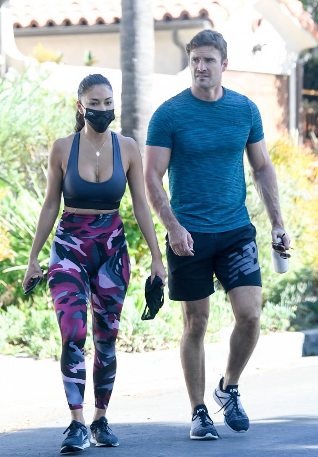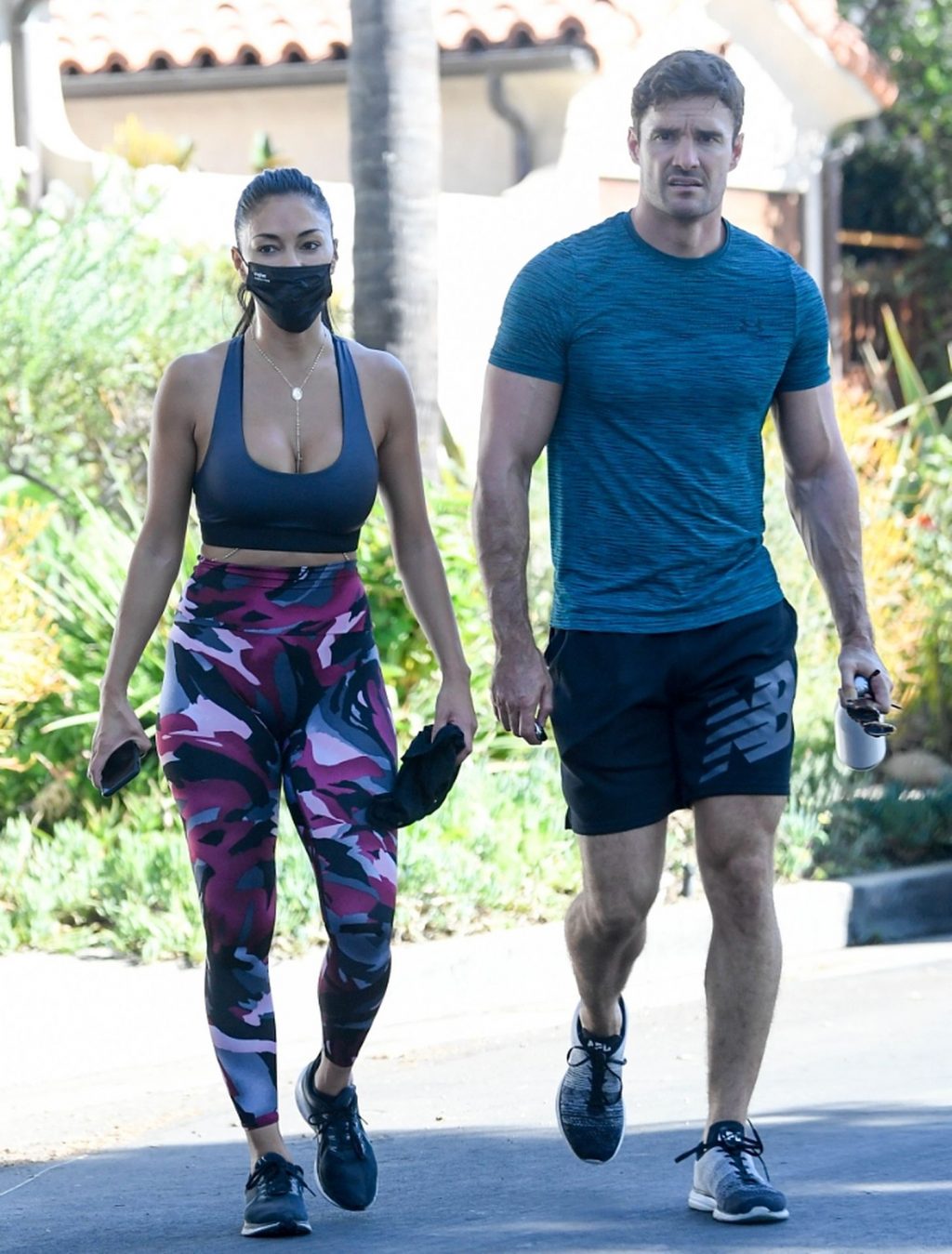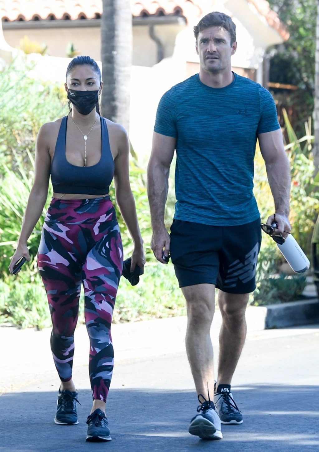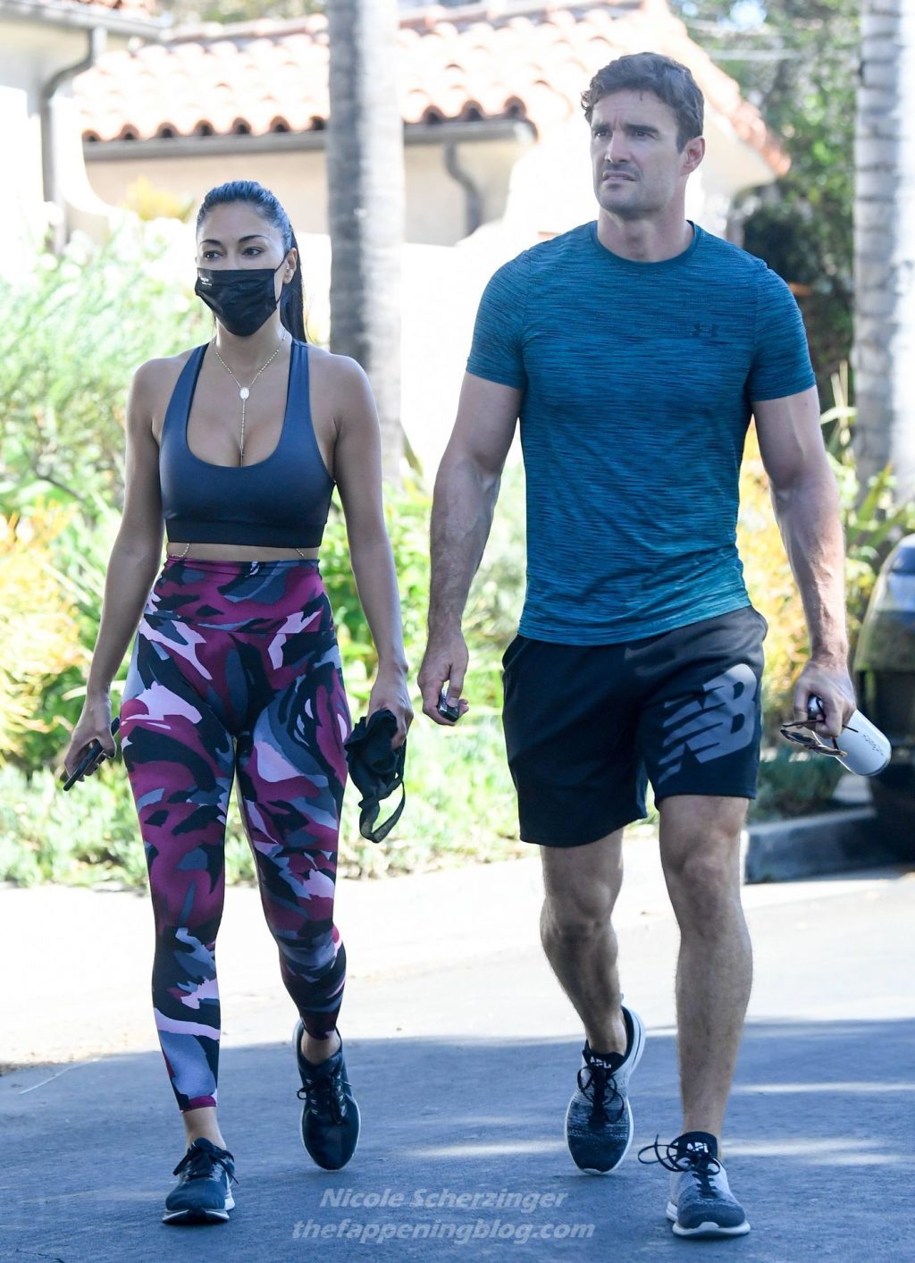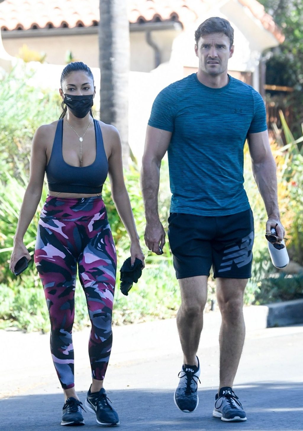 Звезда Фаппенинга Николь Шерзингер и Том Эванс покидают домашний спортзал в Лос-Анджелесе, 11/05/2020.