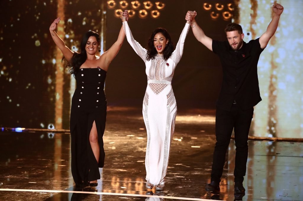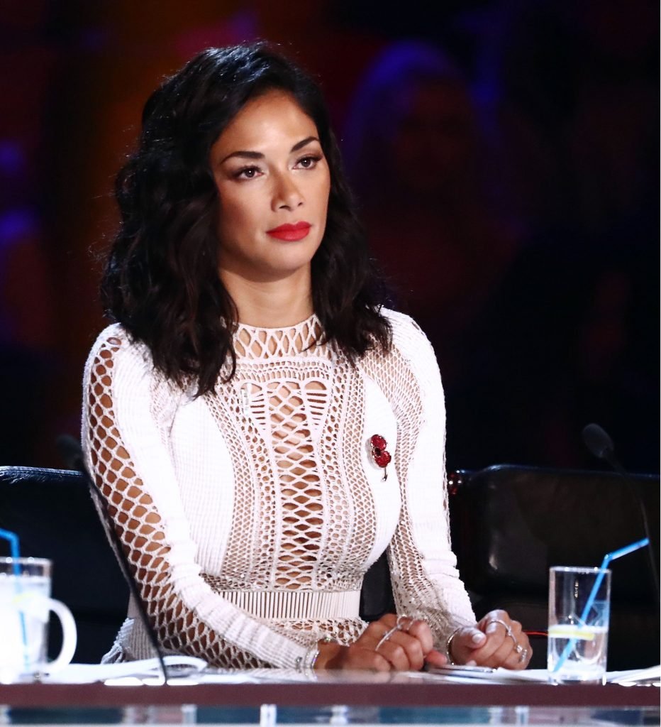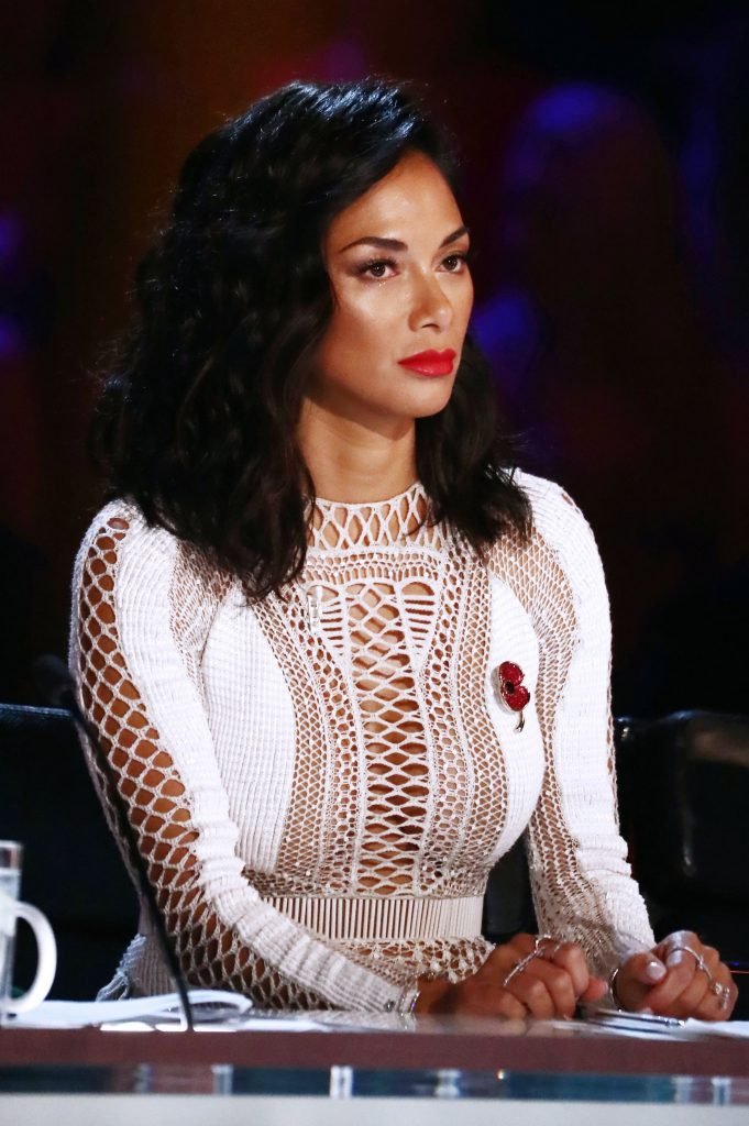 Николь Шерзингер носит сексуальное прозрачное белое платье на шоу ‘The X Factor’ (Сезон 14, Эпизод 20), Великобритания, 11/05/2017. Николь Шерзингер — певица, актриса, звезда реалити-шоу и танцовщица. Возраст: 39 лет.