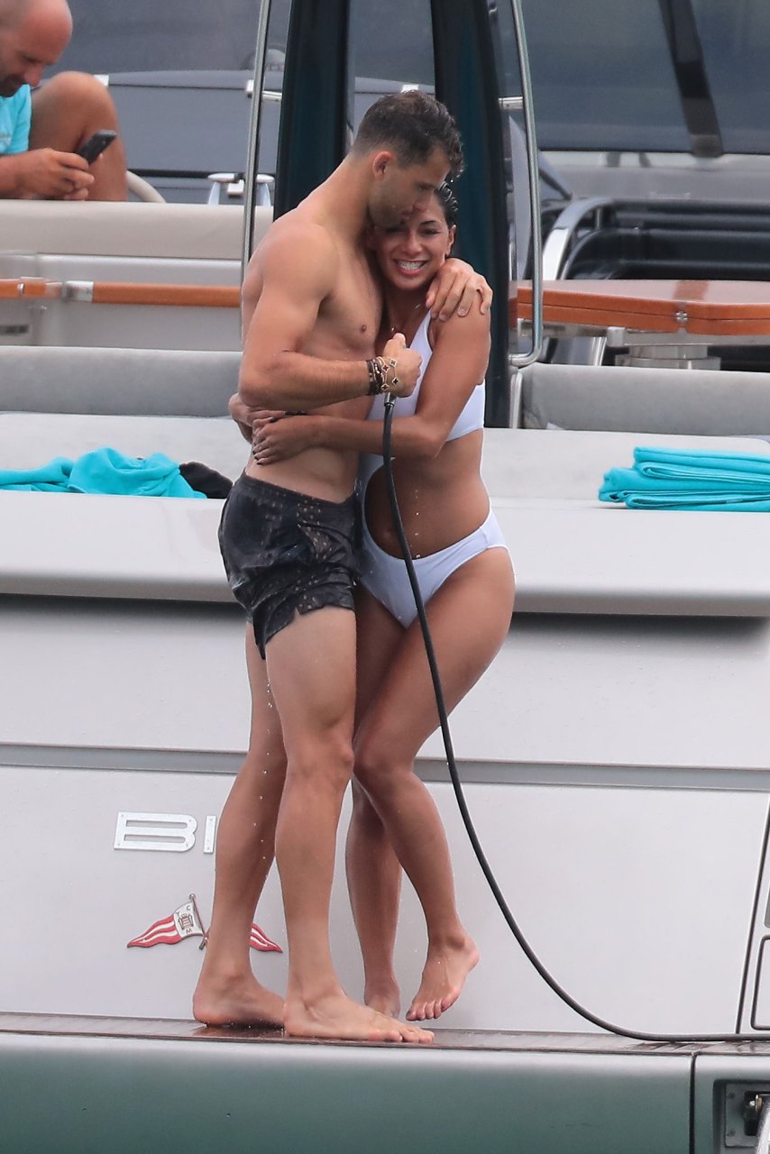 Nicole Scherzinger была замечена в Club 55 в Сен-Тропе, на юге Франции, со своим парнем, 22.07.2018. Певица была в купальнике на корме роскошного скоростного катера.