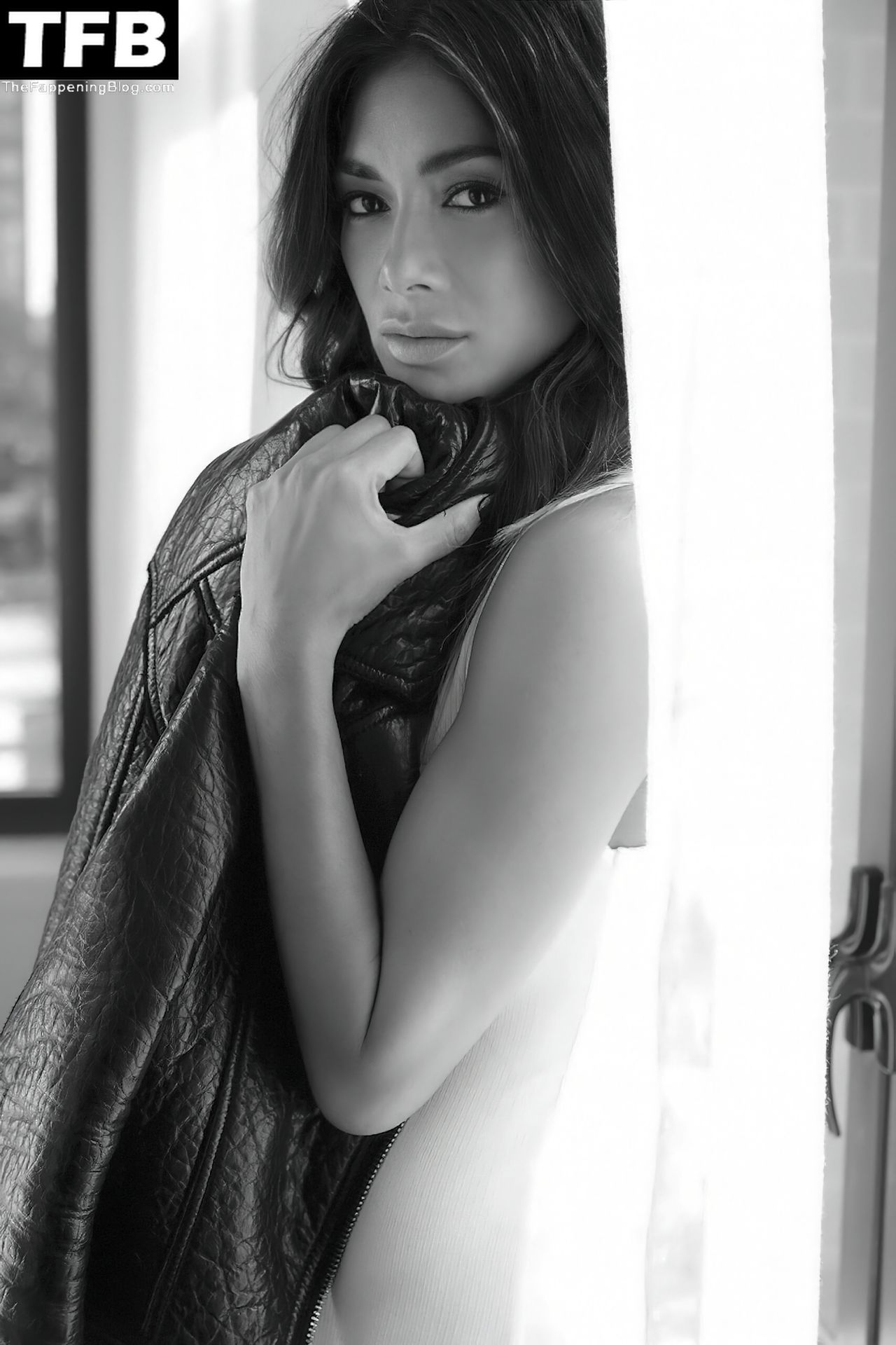 Звезда Фаппенинга Николь Шерзингер показывает свои груди, позируя без бюстгальтера в черно-белой фотосессии.