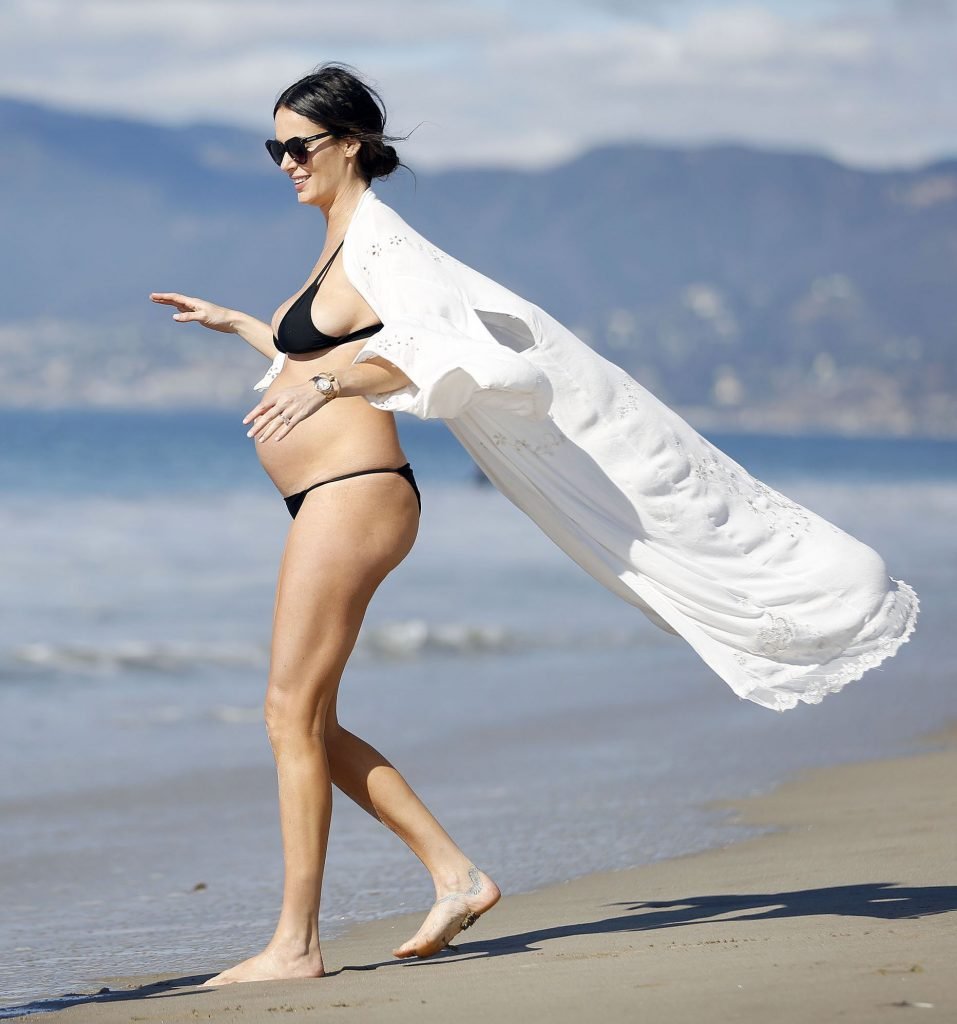Австралийская модель Николь Трунио, 31 год, выглядит сногсшибательно на сроке почти 7 месяцев беременности, когда она выходит на пляж в Санта-Монике, 21.11.2017.