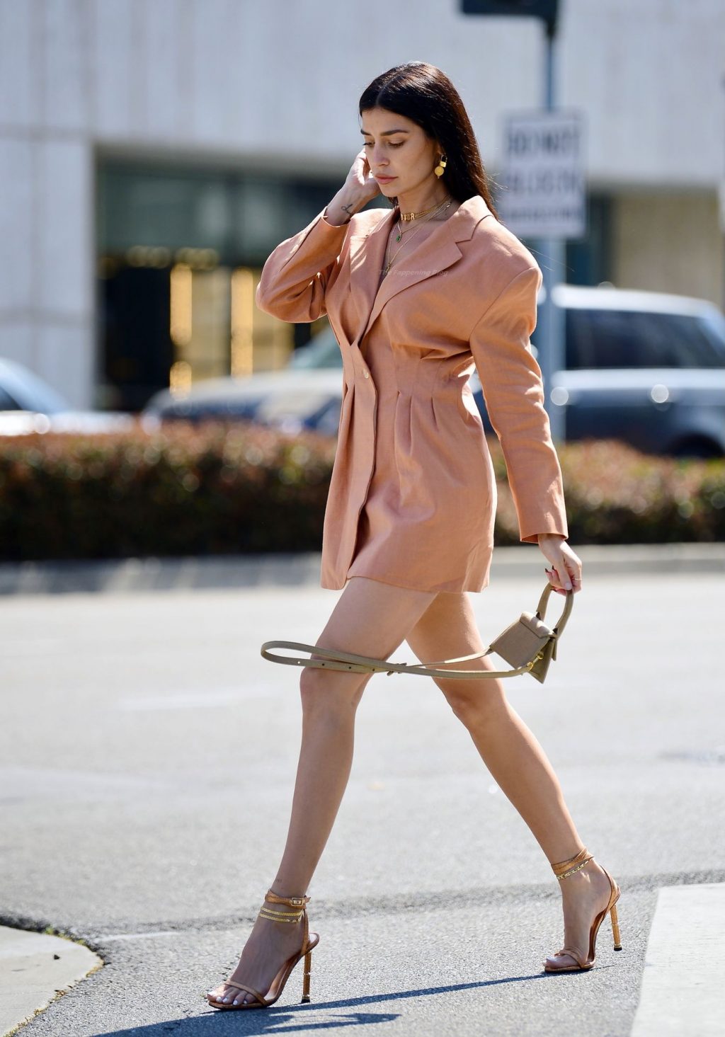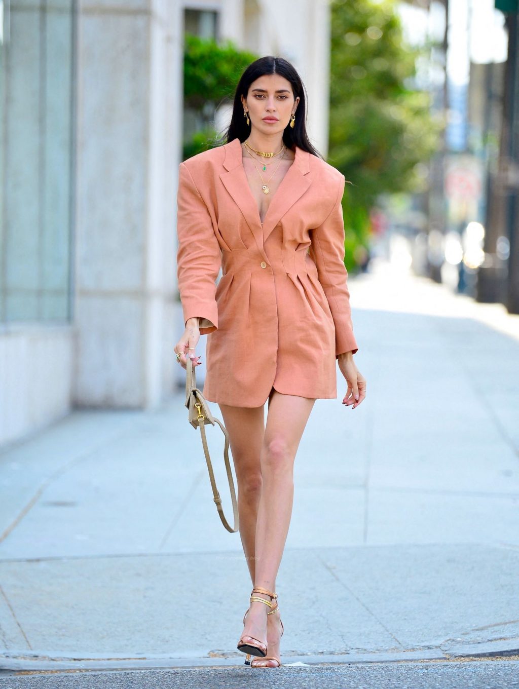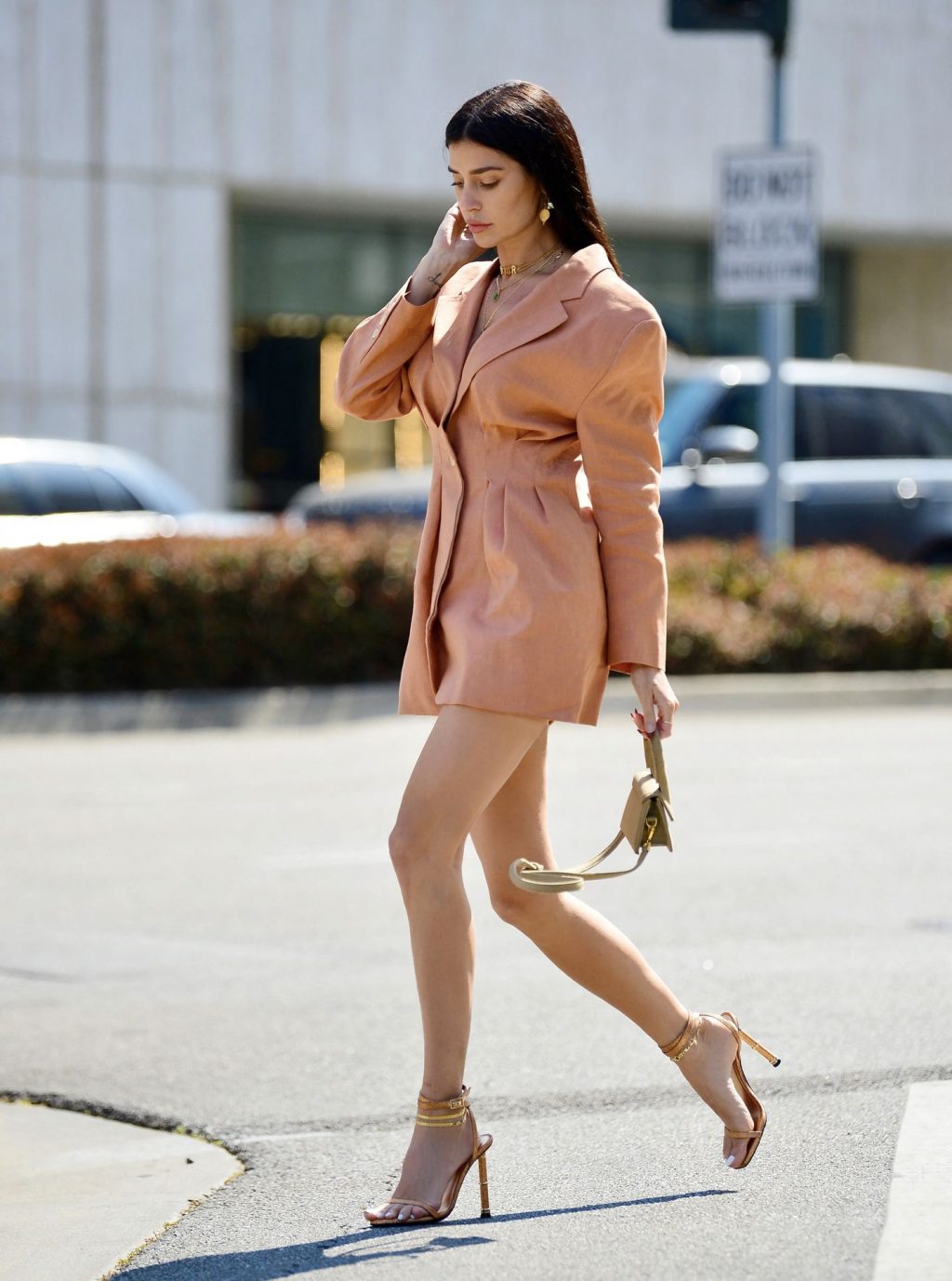 35-летняя красавица продемонстрировала свои идеальные ножки в модном коралловом блейзере-платье и на высоких шпильках, выходя на улицу. Она дополнила свой эффектный образ чокером J’Adior.