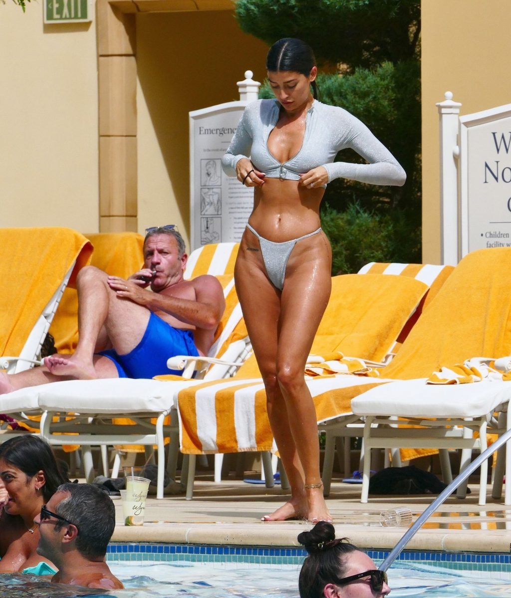 Внешний вид Николь и ее движения в бассейне напоминали культовую сцену у бассейна из популярного фильма, в то время как один мужчина внимательно наблюдал за ней, когда она ходила вокруг бассейна в 100-градусный жаркий солнечный день в Городе грехов.