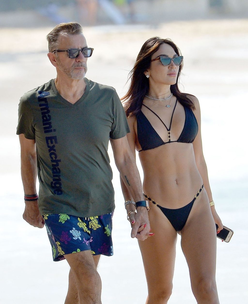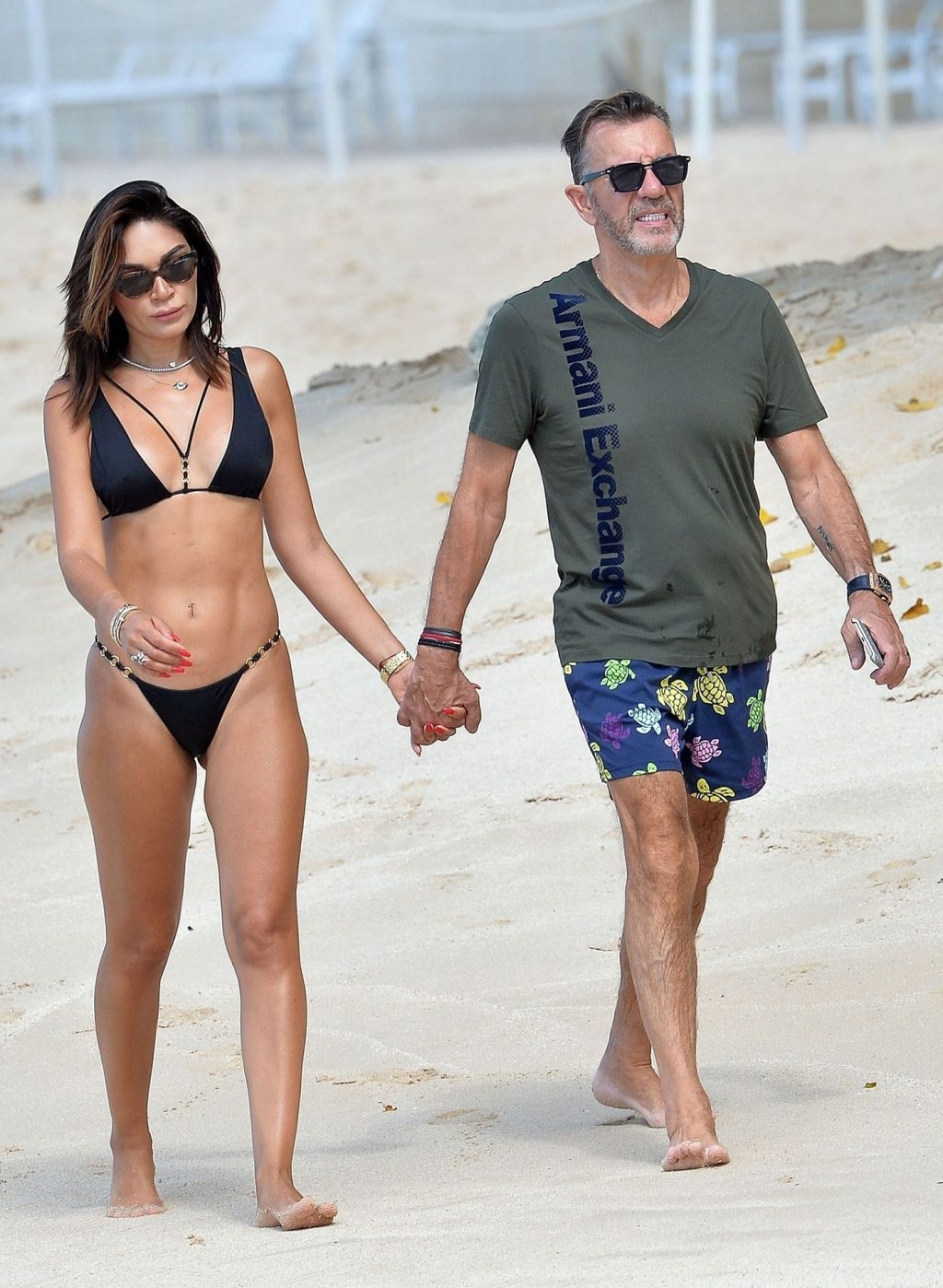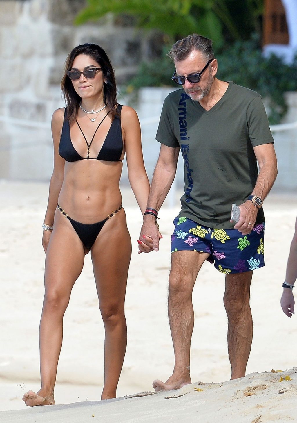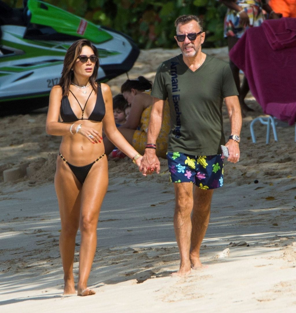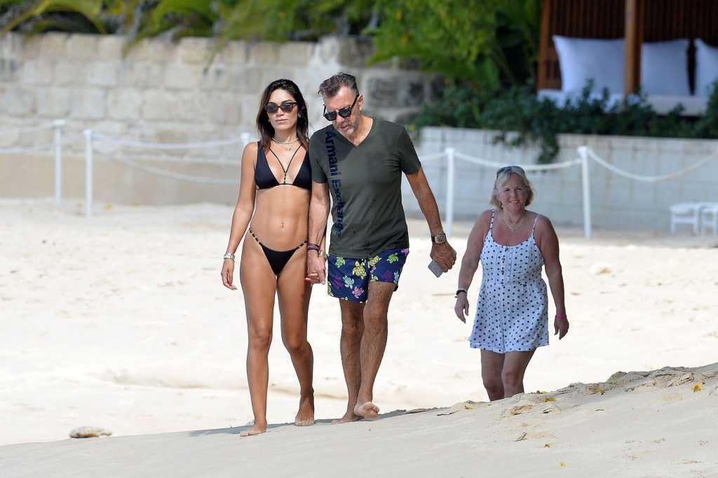 Бывшая звезда шоу Dragons’ Den Дункан Баннатины (70) и его жена Нигора Баннатины (39) были замечены во время романтической прогулки на Барбадосе, 24.12.2019.