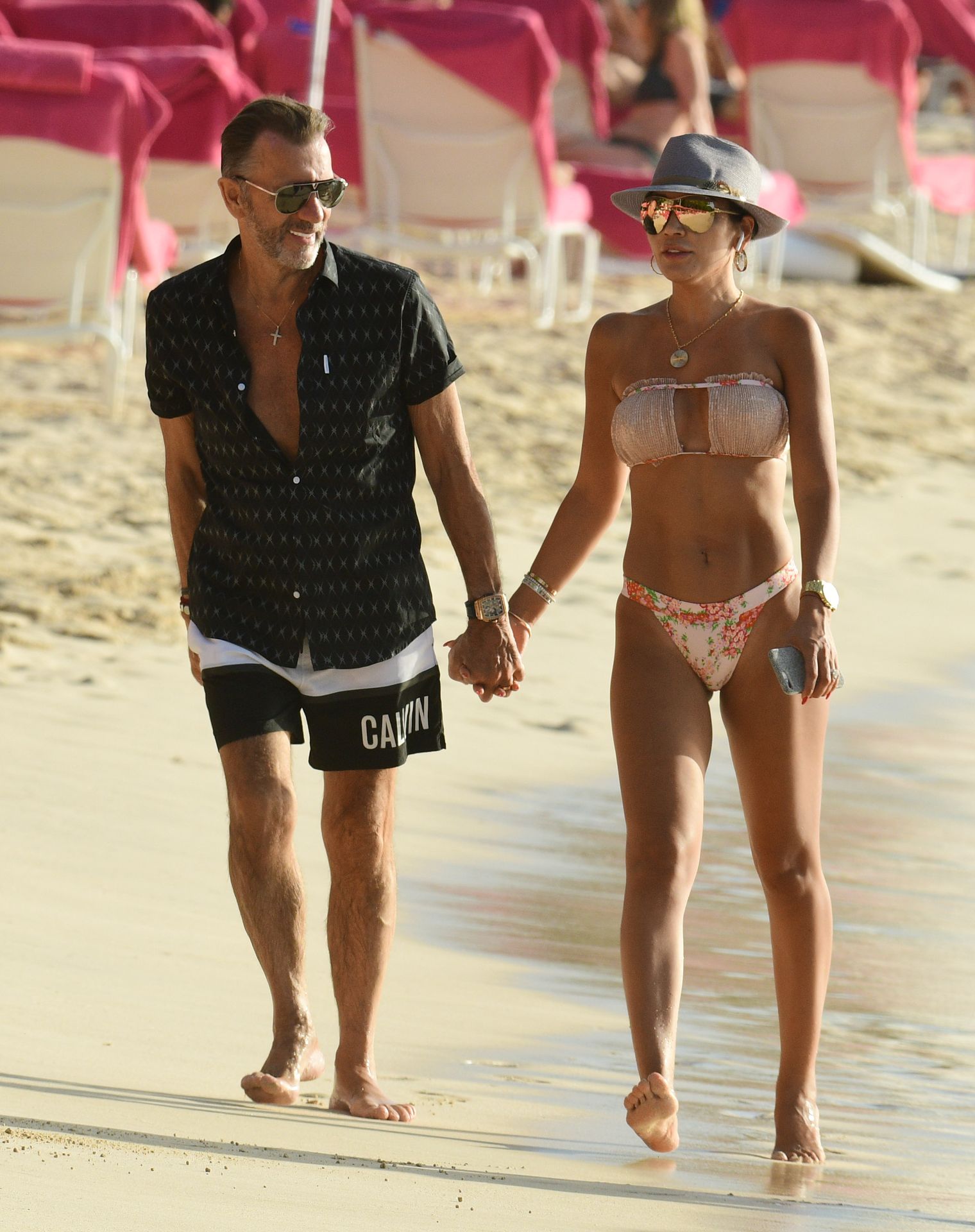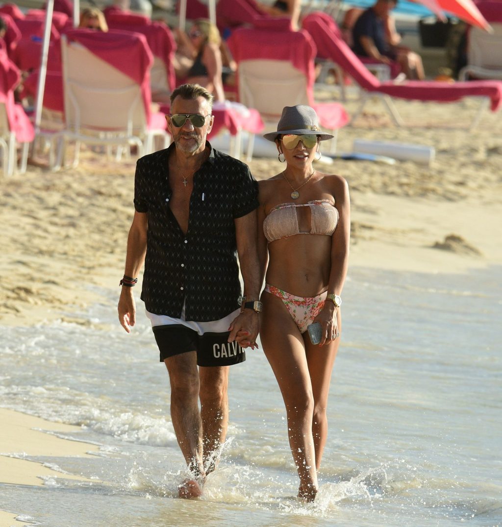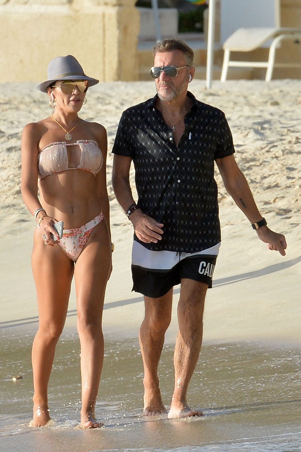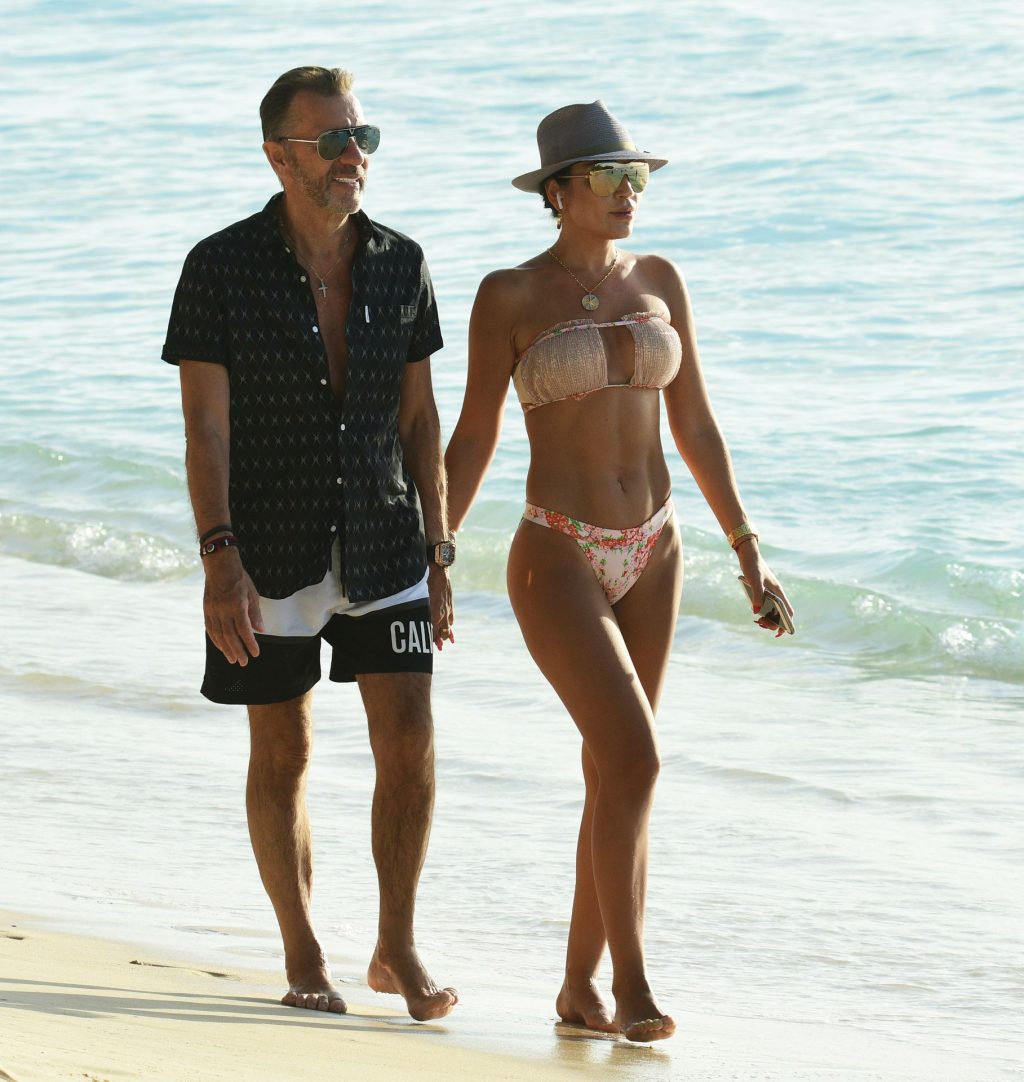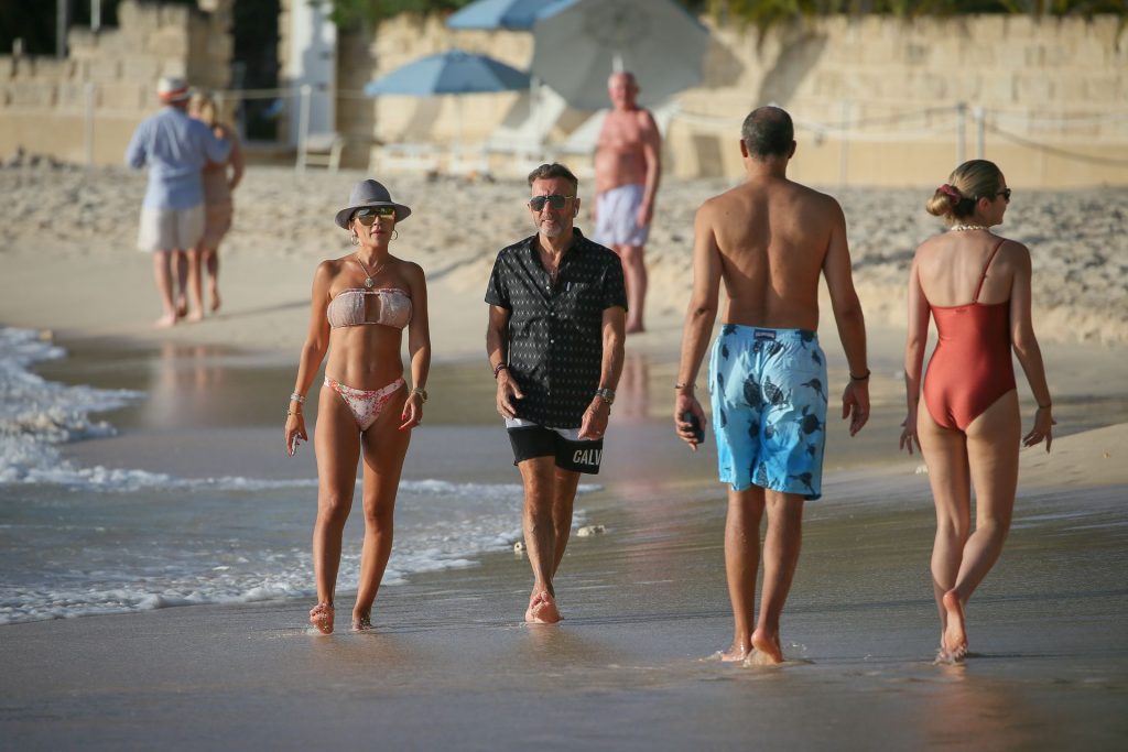 Шотландский предприниматель Дункан Баннатайн и его жена Нигoра Баннатайн были замечены на пляже на Барбадосе, 27.12.2019.