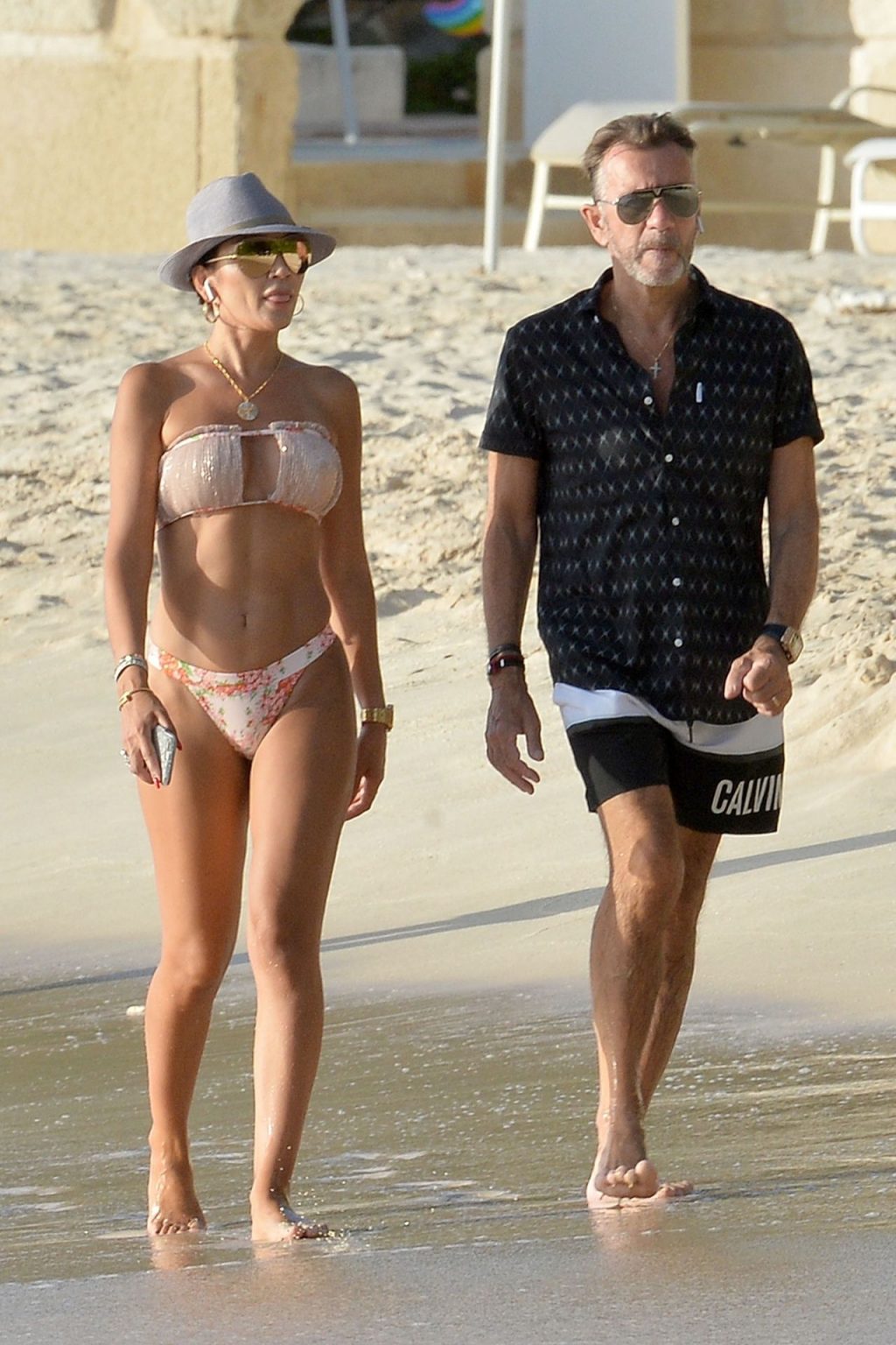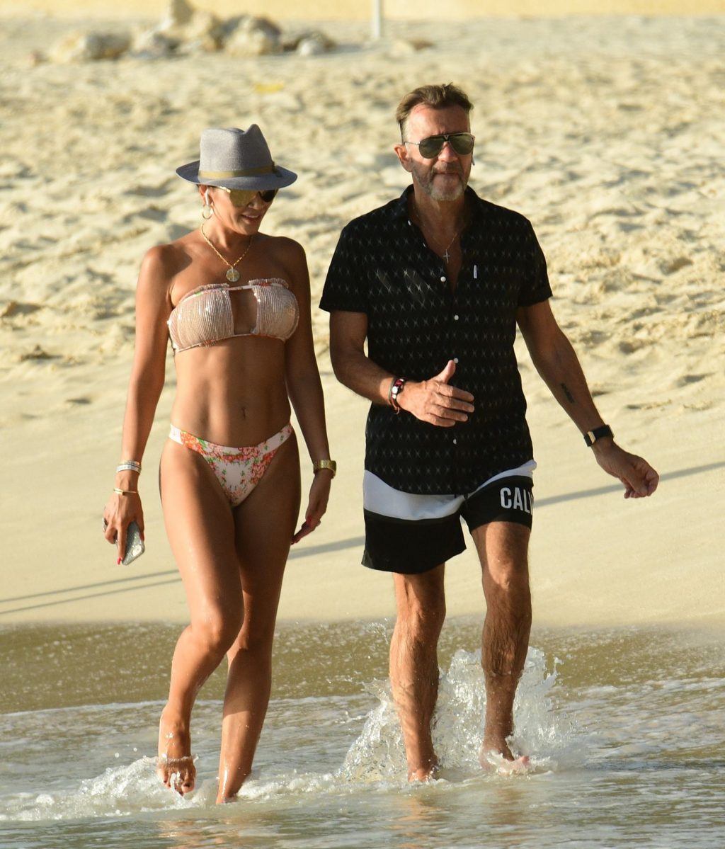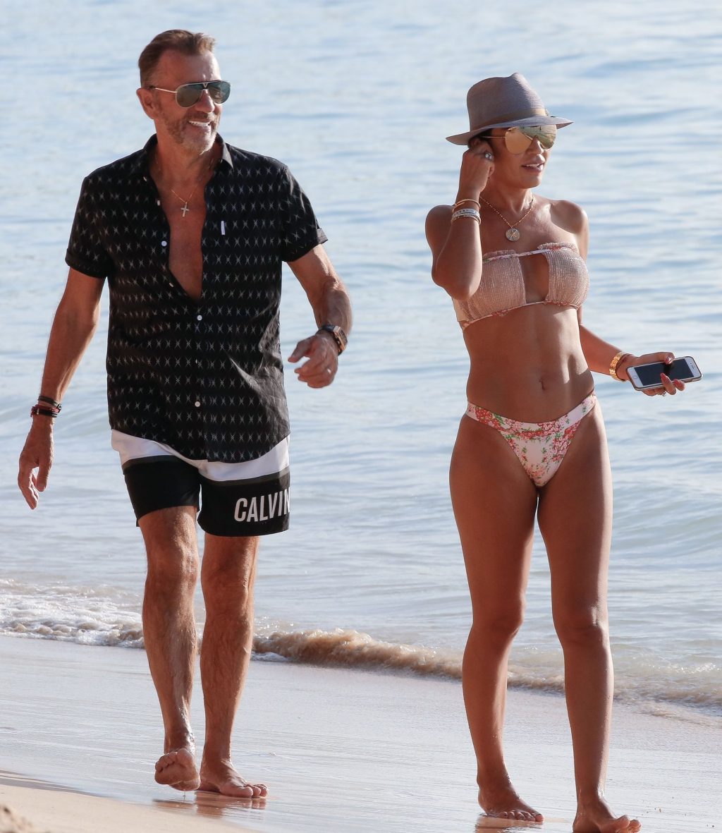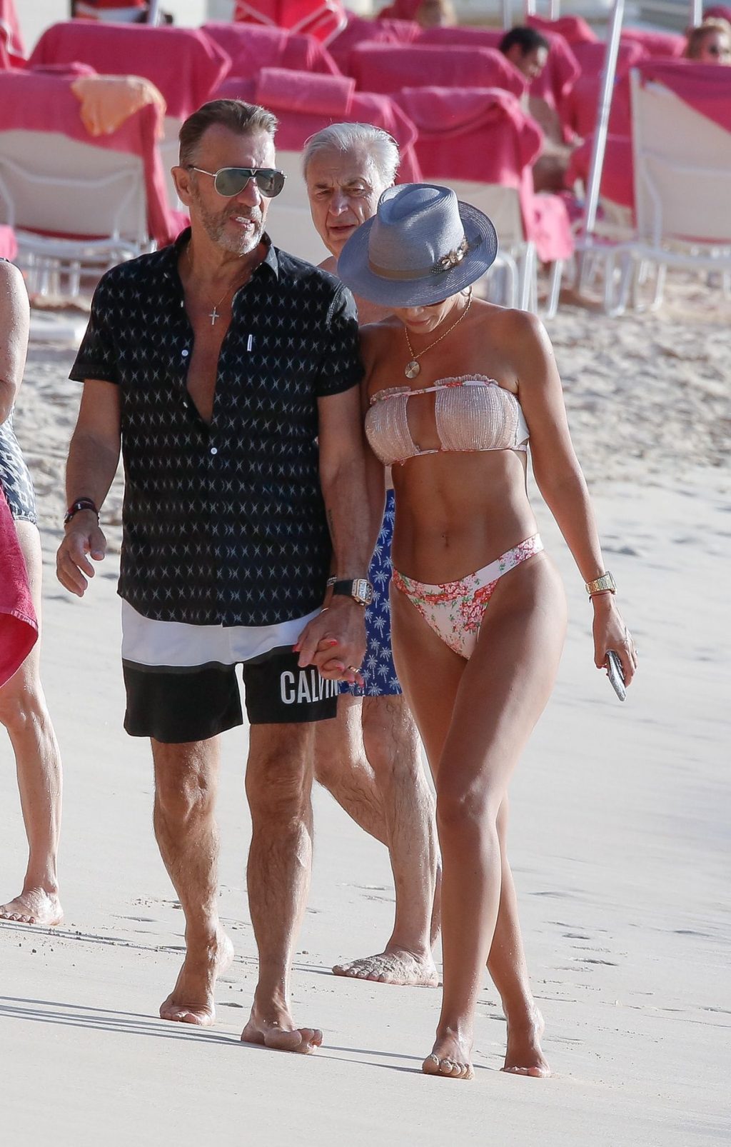 Шотландский предприниматель Дункан Баннатайн и его жена Нигoра Баннатайн были замечены на пляже на Барбадосе, 27.12.2019.