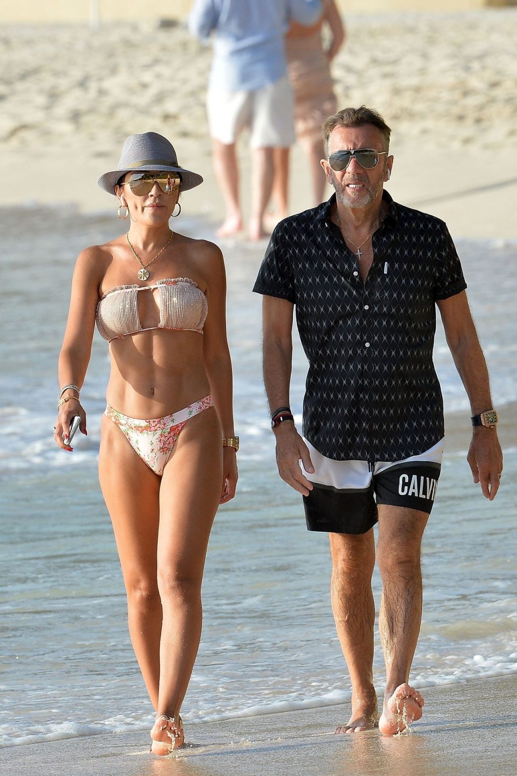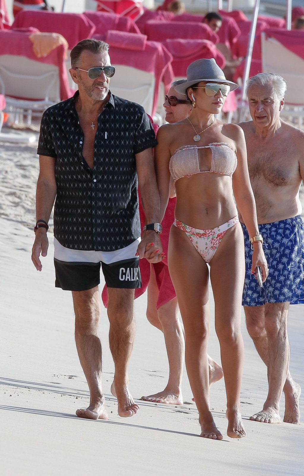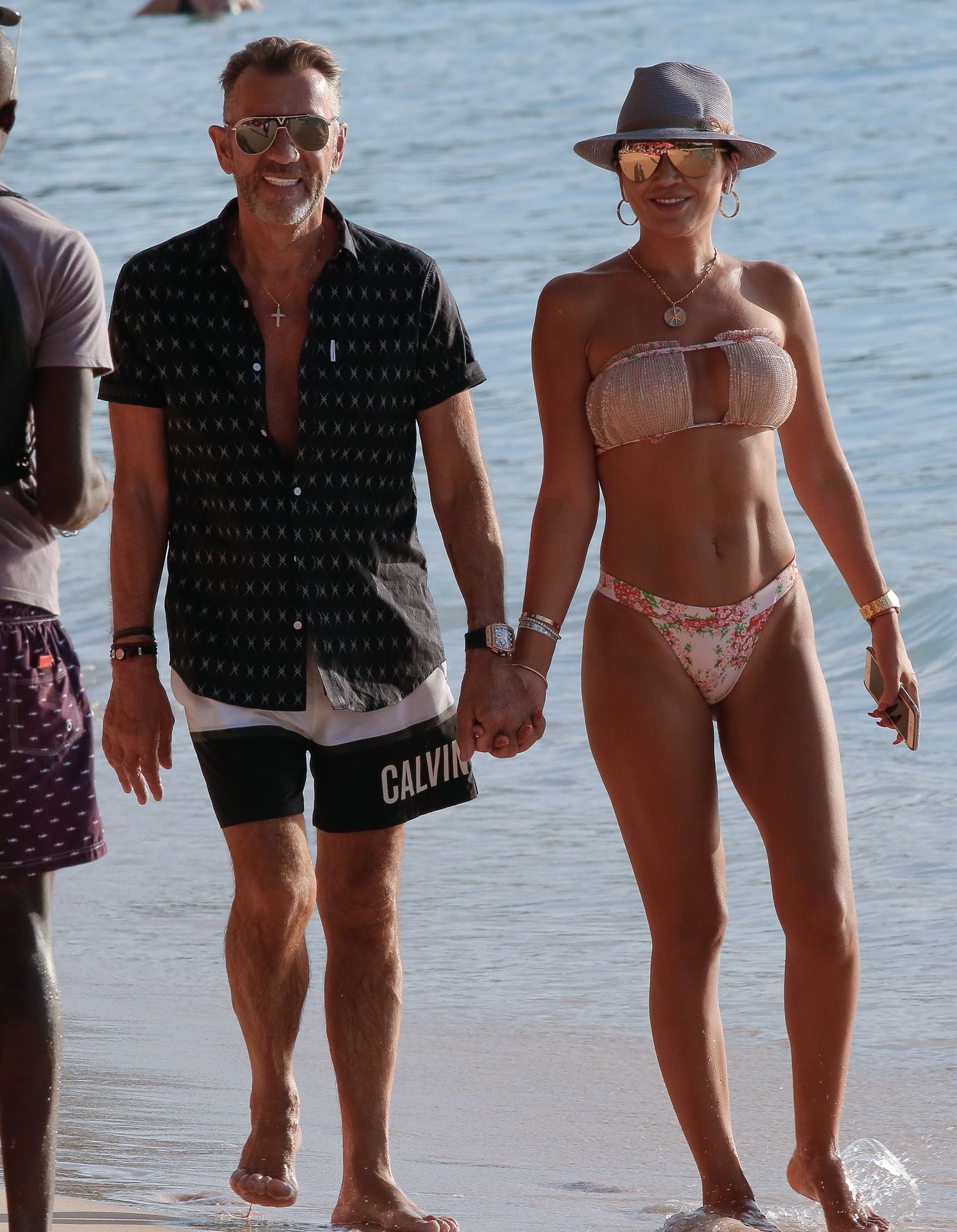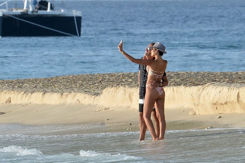 Шотландский предприниматель Дункан Баннатайн и его жена Нигoра Баннатайн были замечены на пляже на Барбадосе, 27.12.2019.