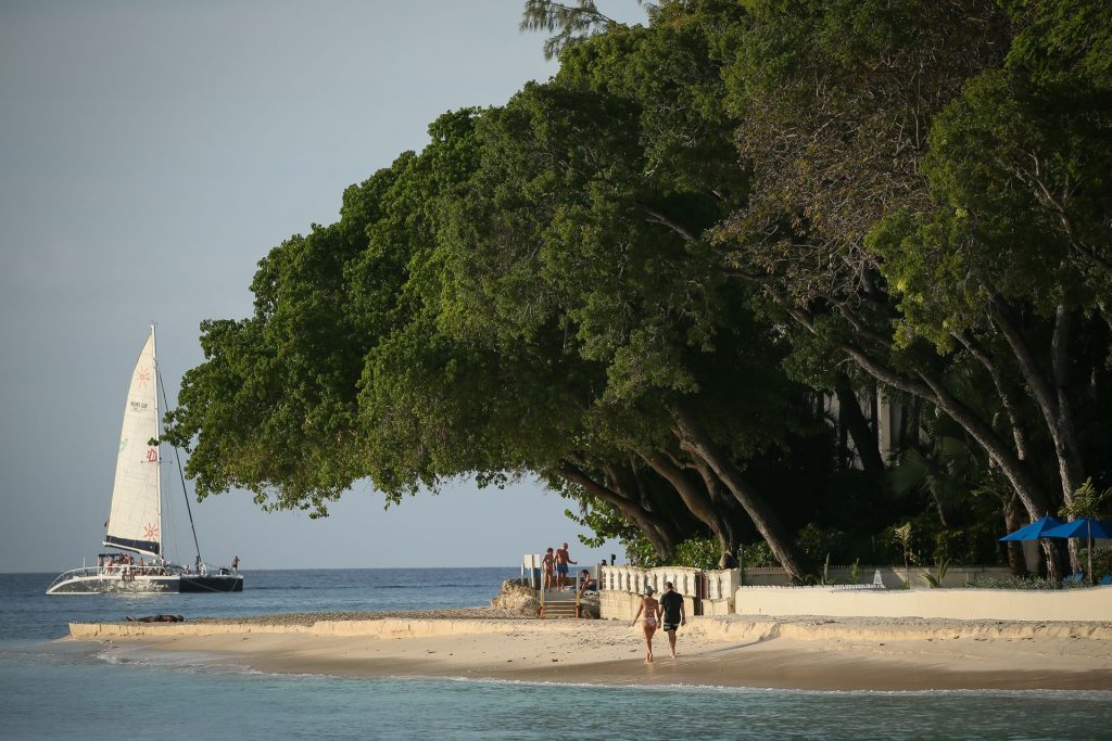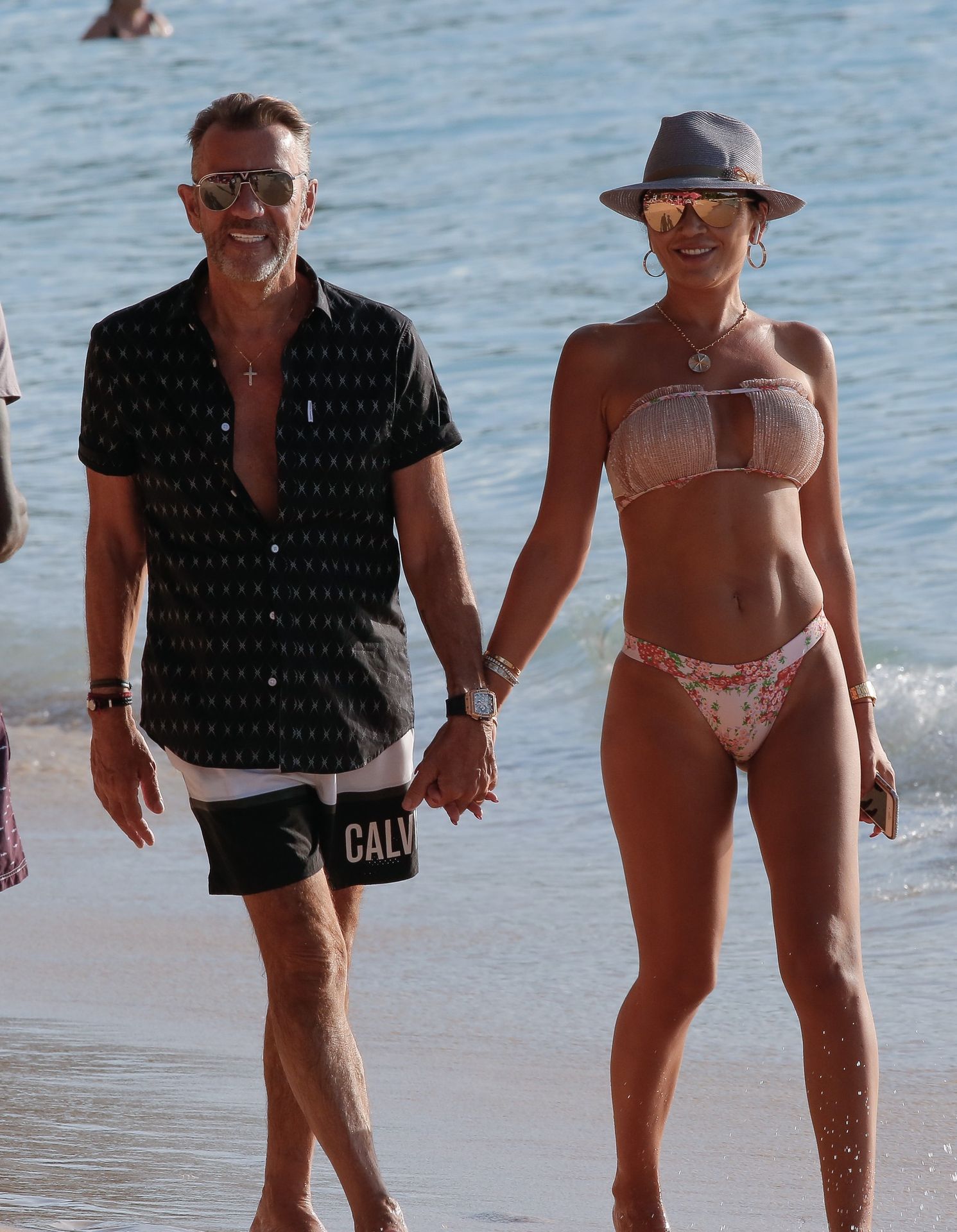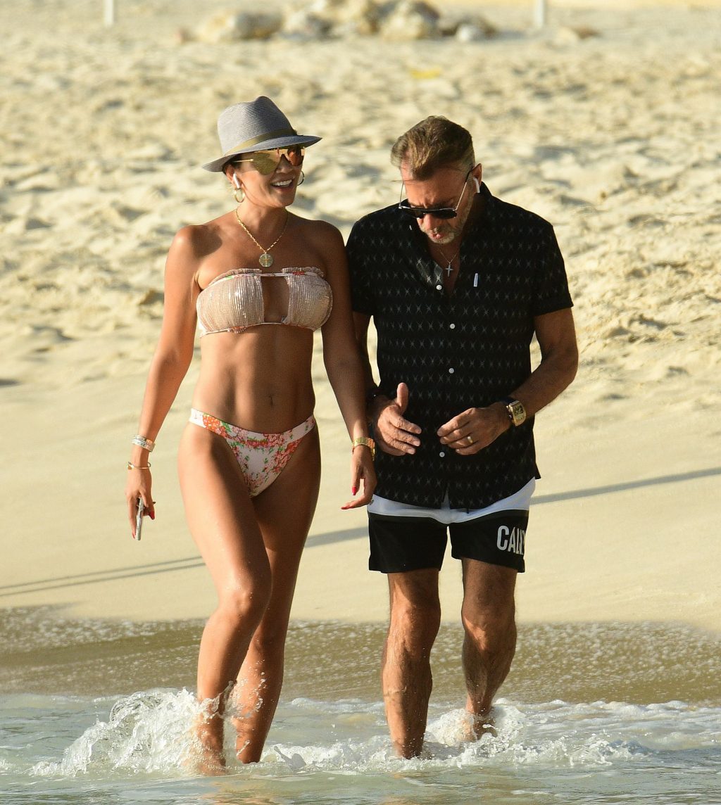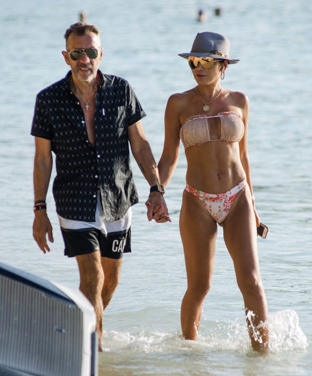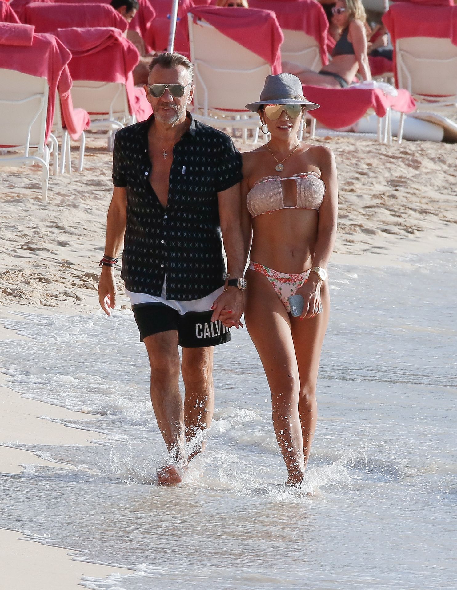 Шотландский предприниматель Дункан Баннатайн и его жена Нигoра Баннатайн были замечены на пляже на Барбадосе, 27.12.2019.