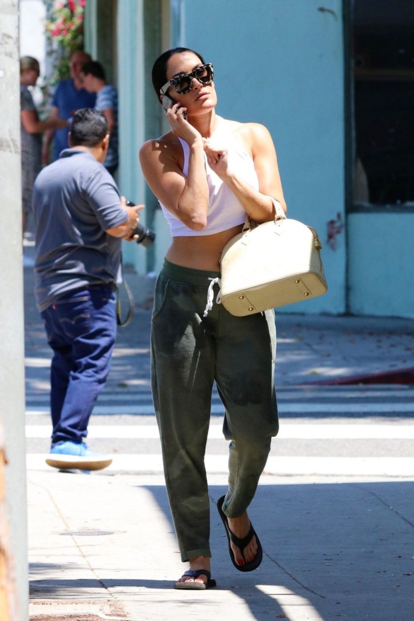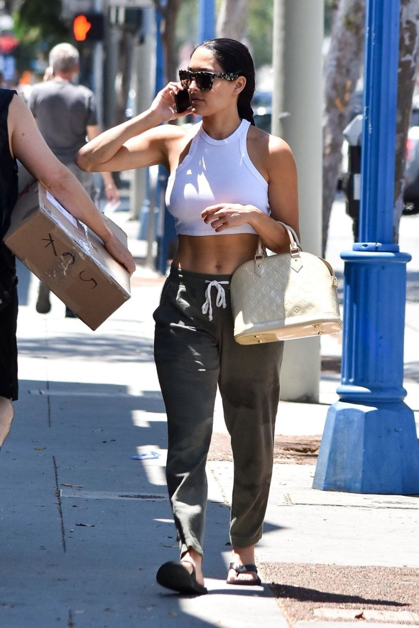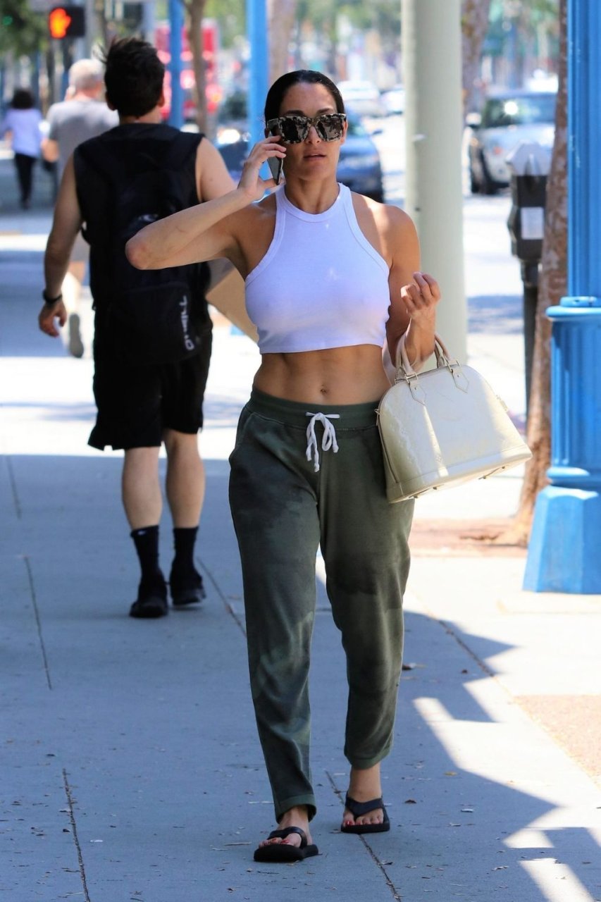 Никки Белла была замечена на прогулке в Лос-Анджелесе, 22.07.2019. Звезда WWE показала свои формы в белом топе.