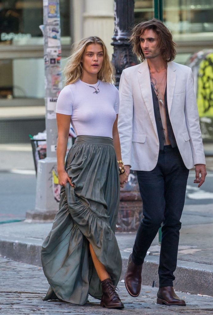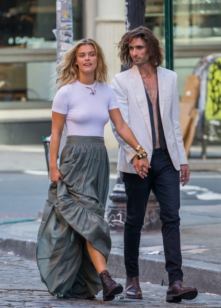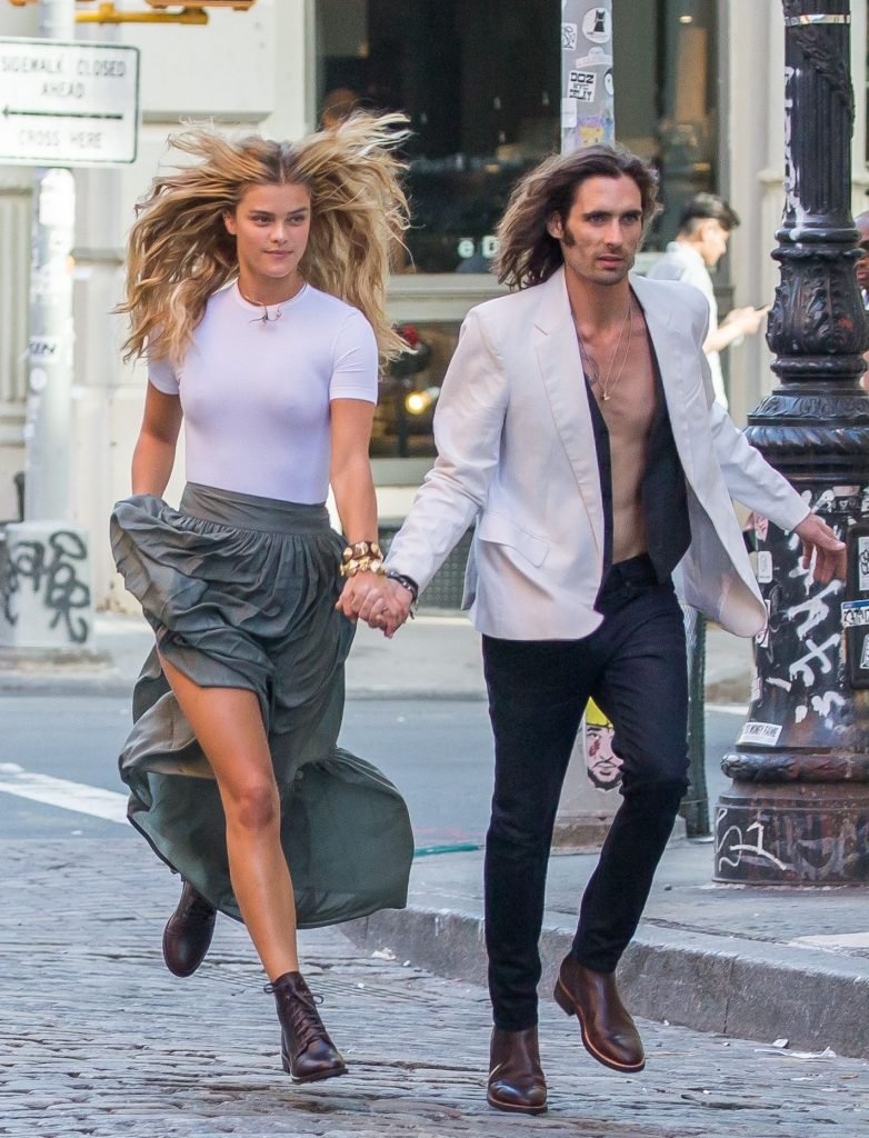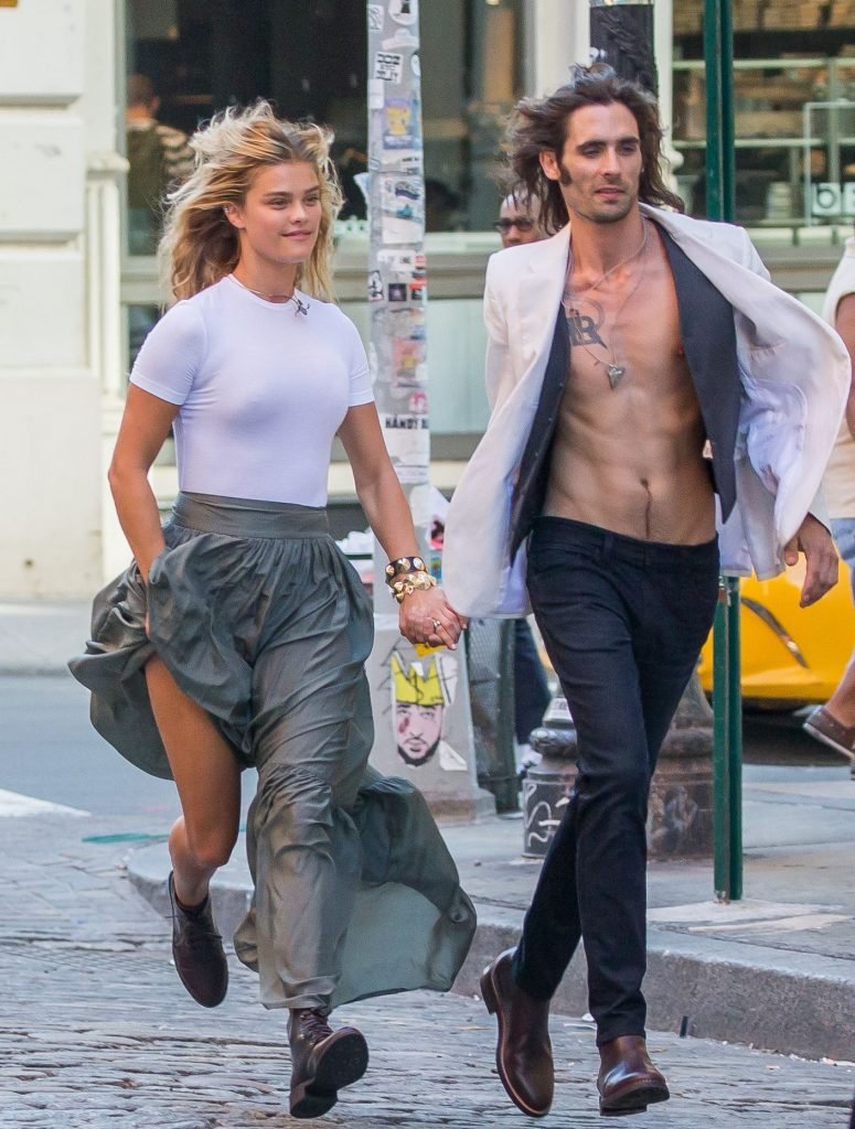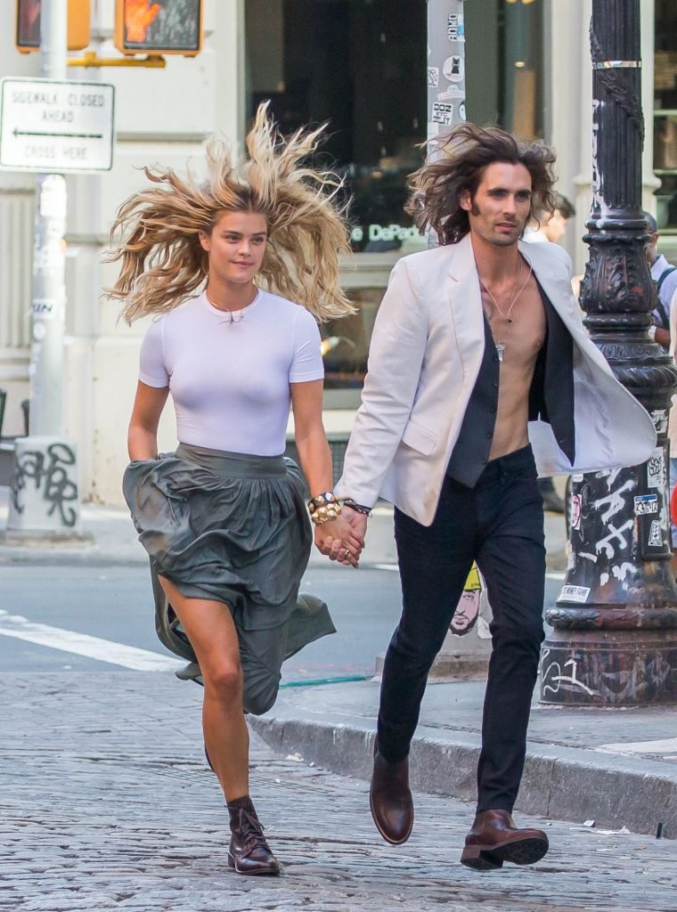 25-летняя датская модель Нина Агдал снялась с Тайсоном Риттером на фотосессии в Сохо, Нью-Йорк, 24.08.2017.