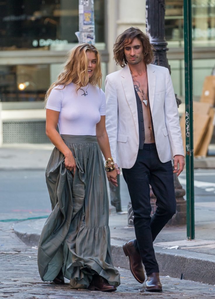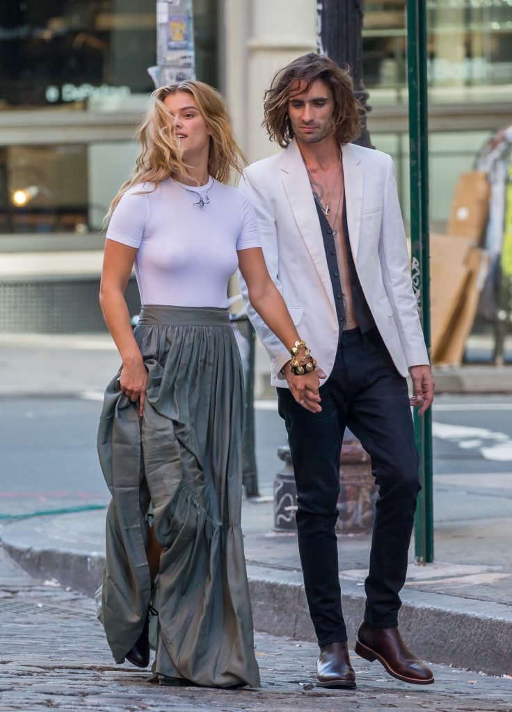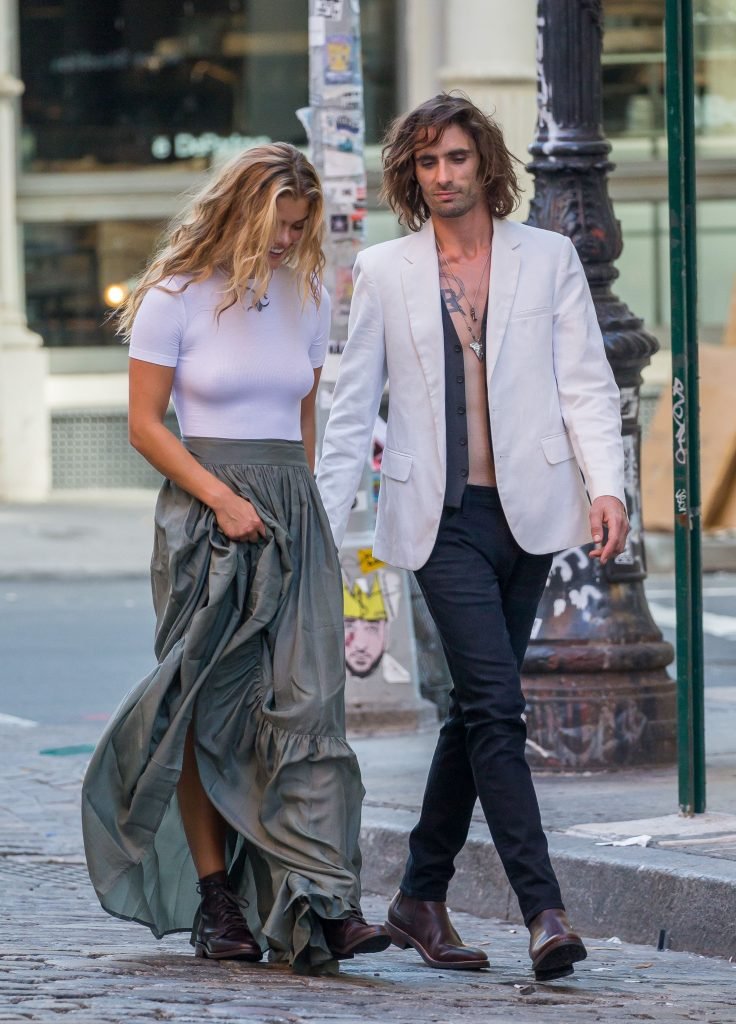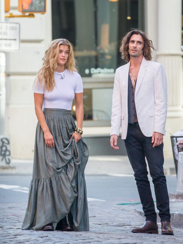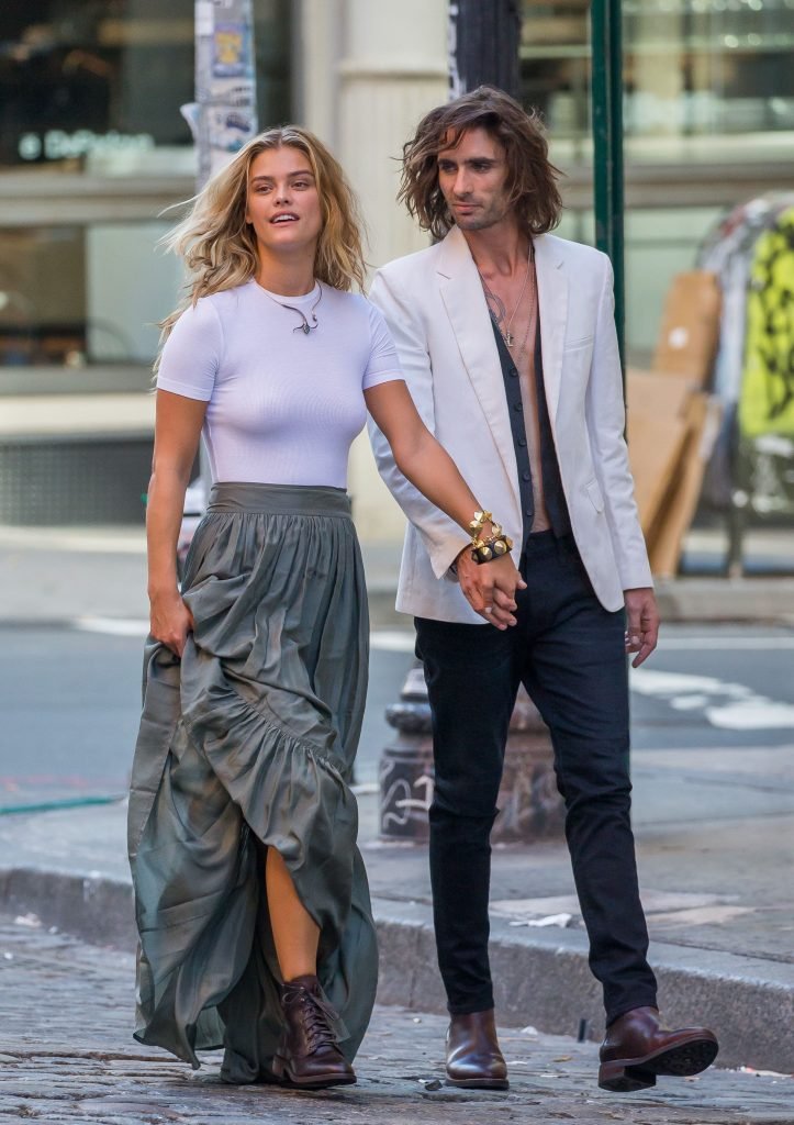 25-летняя датская модель Нина Агдал снялась с Тайсоном Риттером на фотосессии в Сохо, Нью-Йорк, 24.08.2017.