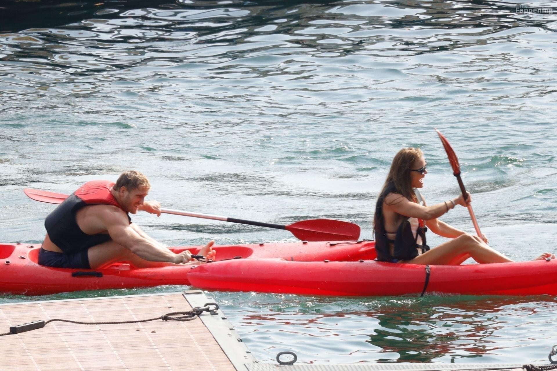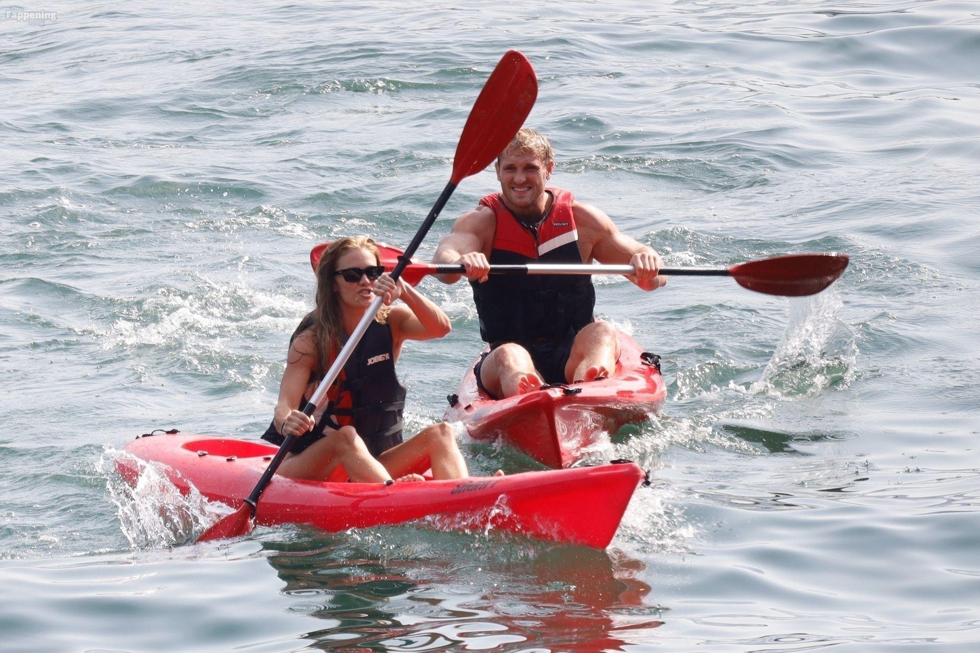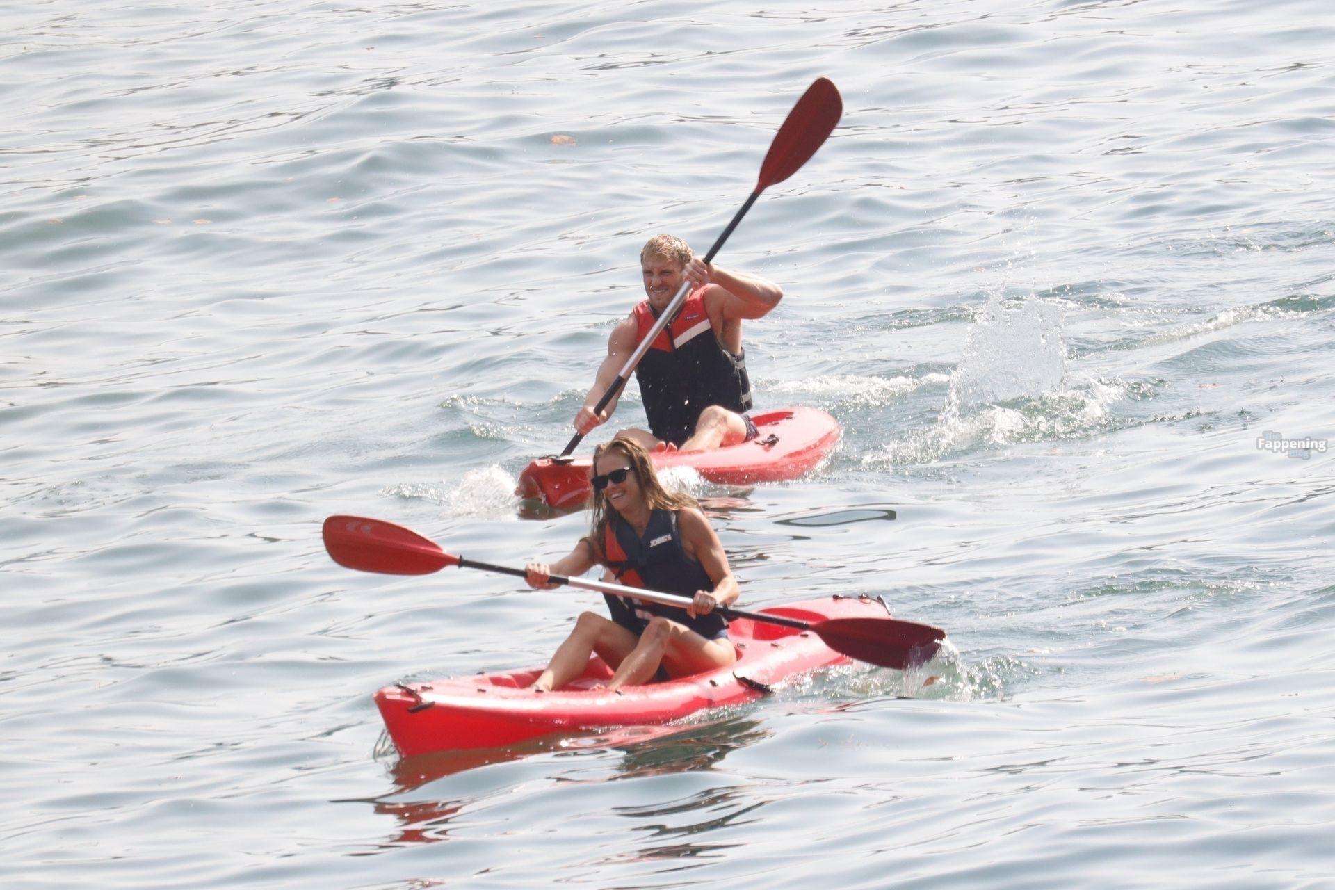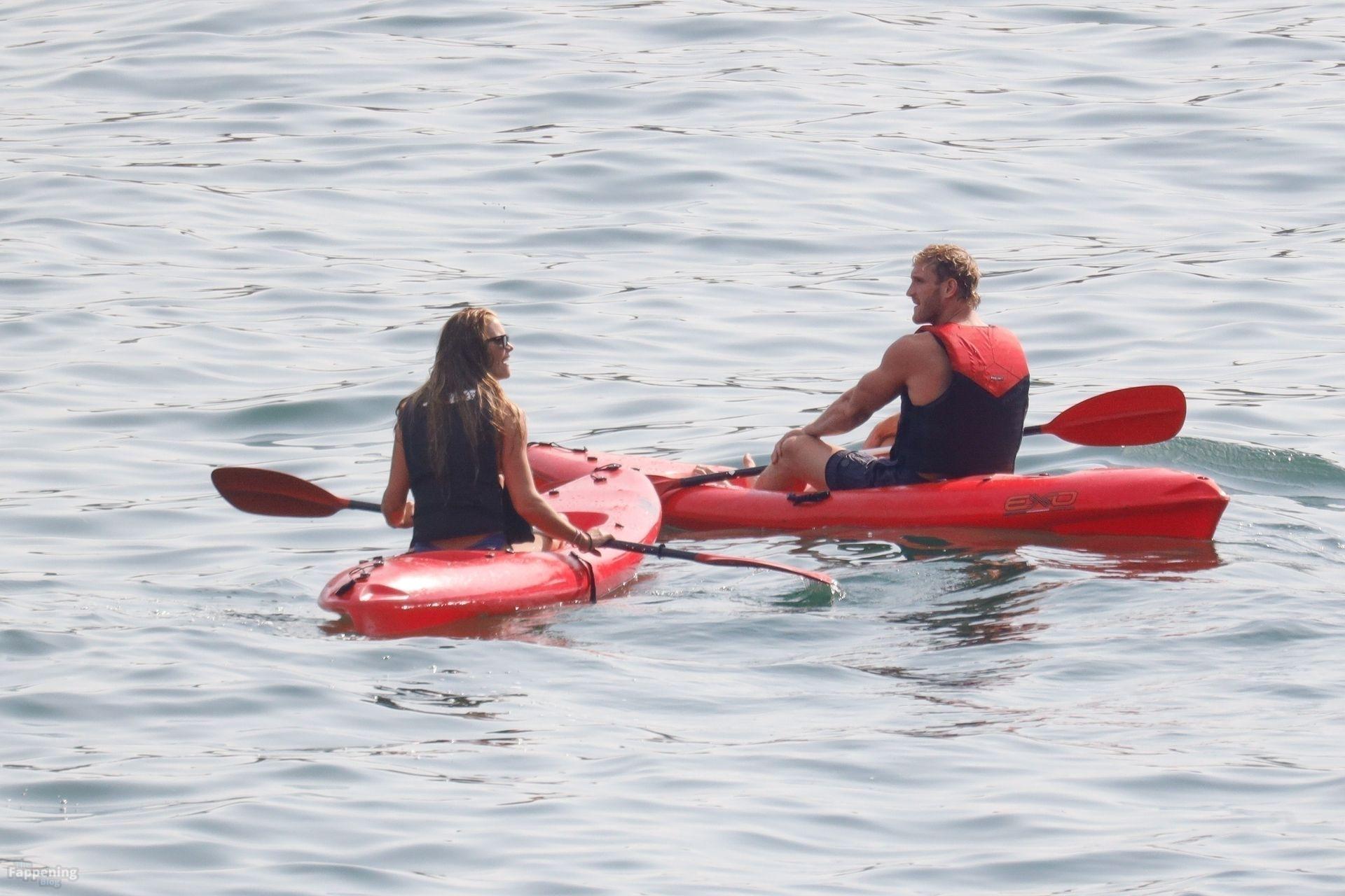 Не отставая, датская модель Логана Нина выглядела потрясающе в крошечном бикини, демонстрируя свою пляжную фигуру. Они отлично провели время, катаясь на каяках под жарким итальянским солнцем.