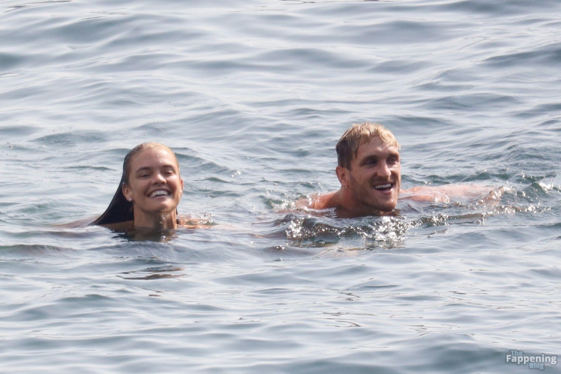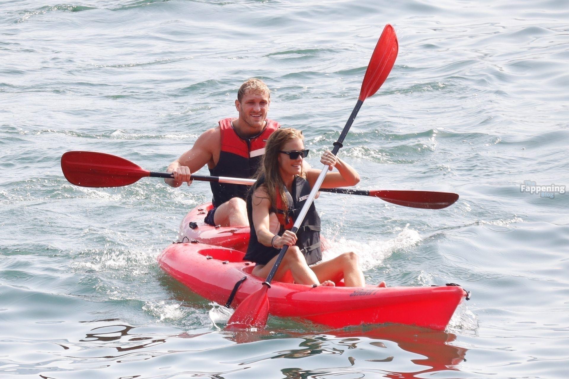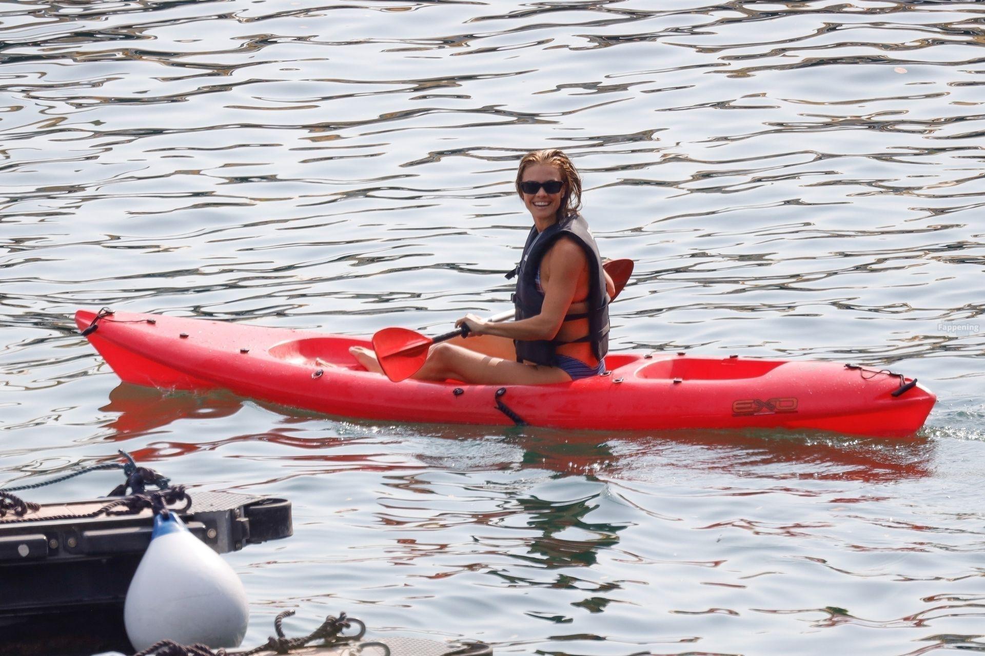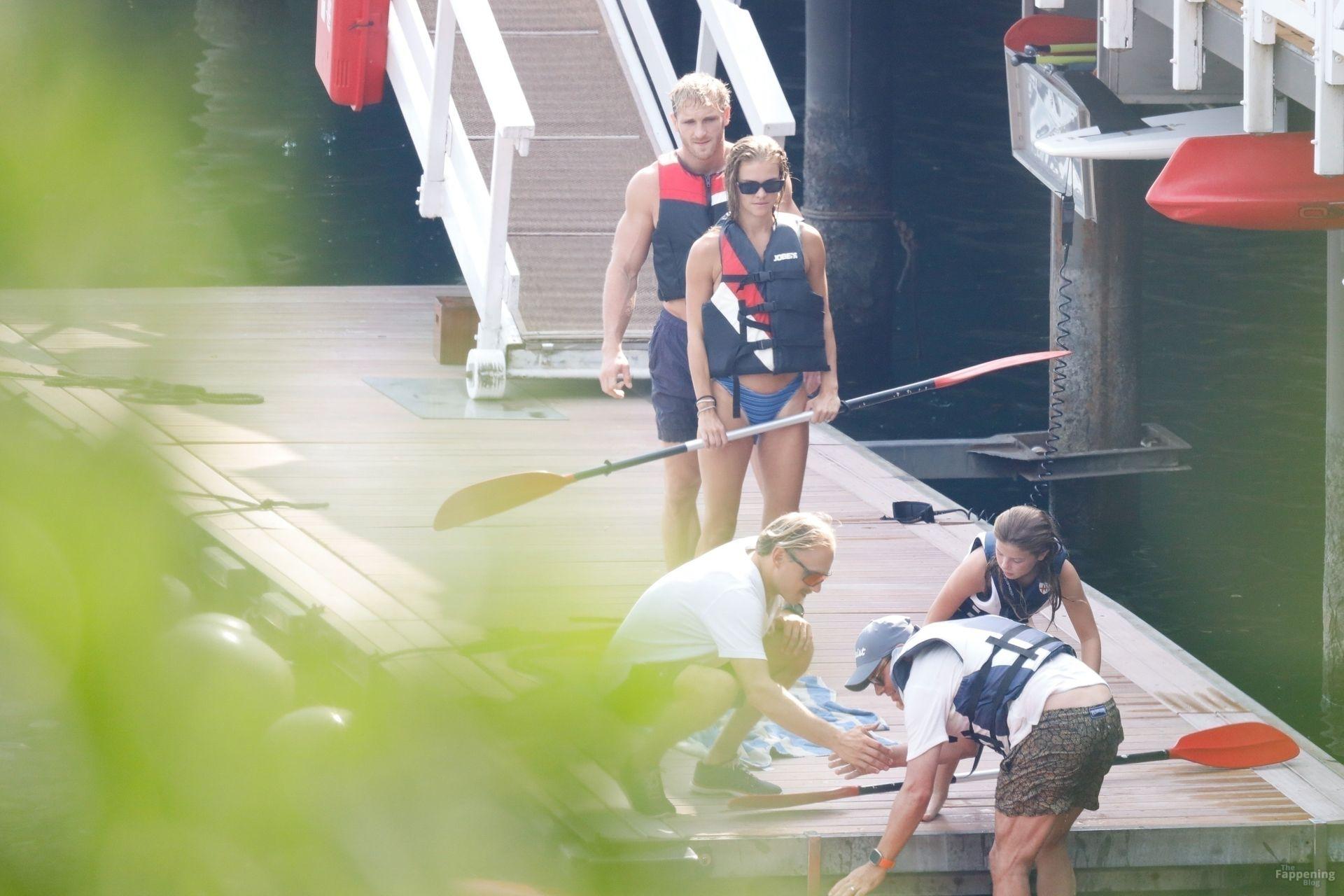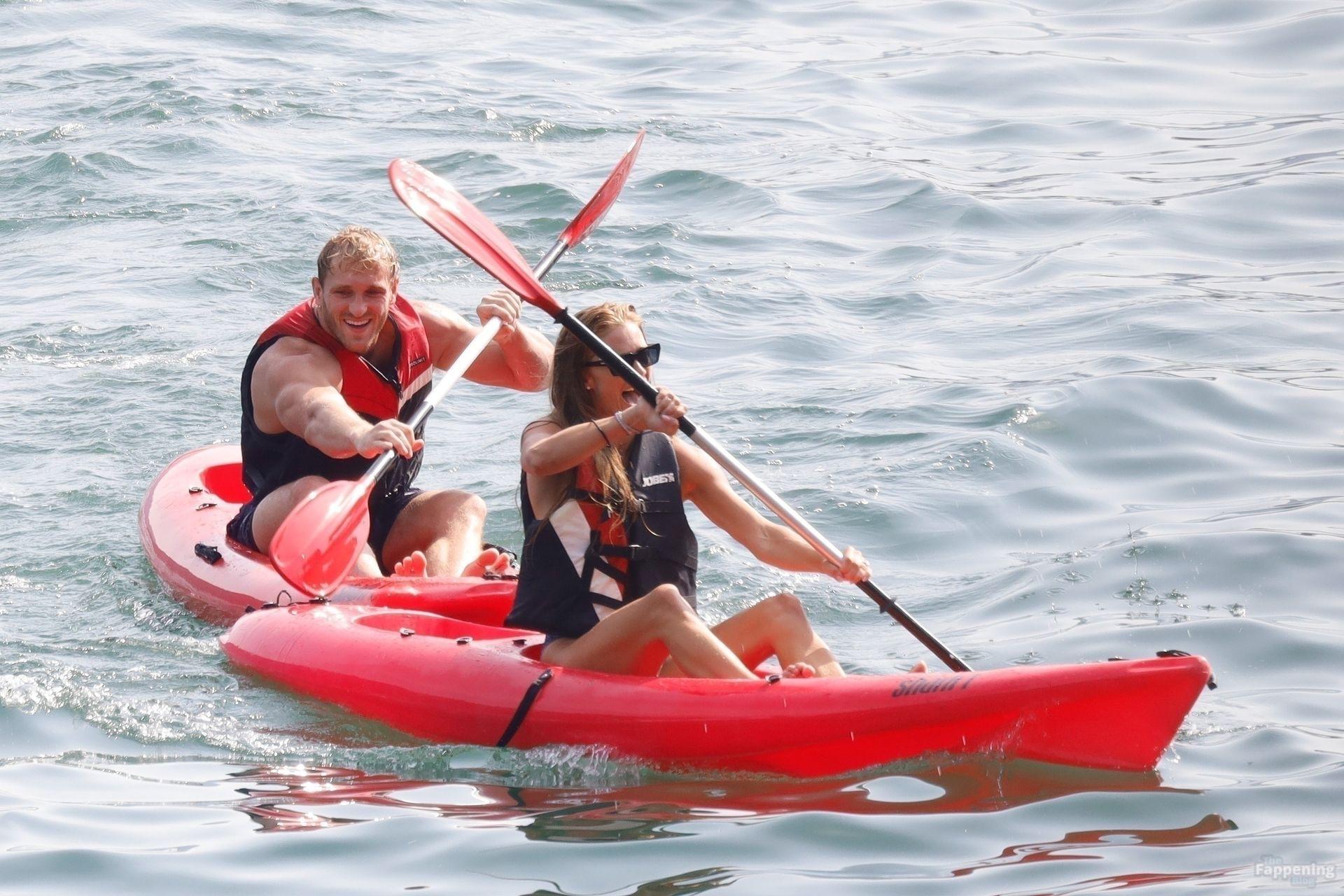 Не отставая, датская модель Логана Нина выглядела потрясающе в крошечном бикини, демонстрируя свою пляжную фигуру. Они отлично провели время, катаясь на каяках под жарким итальянским солнцем.