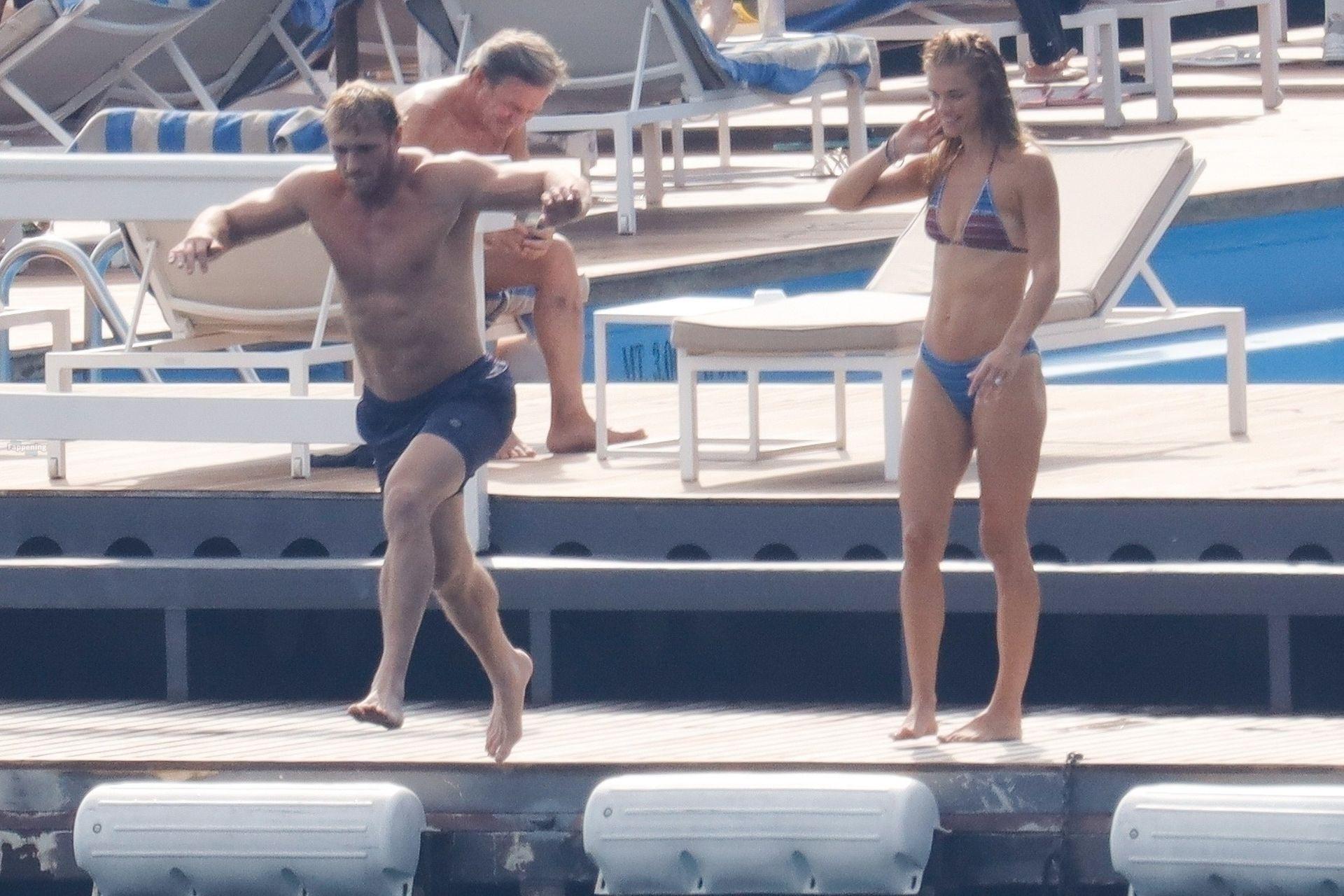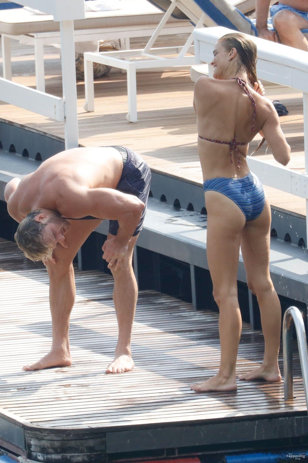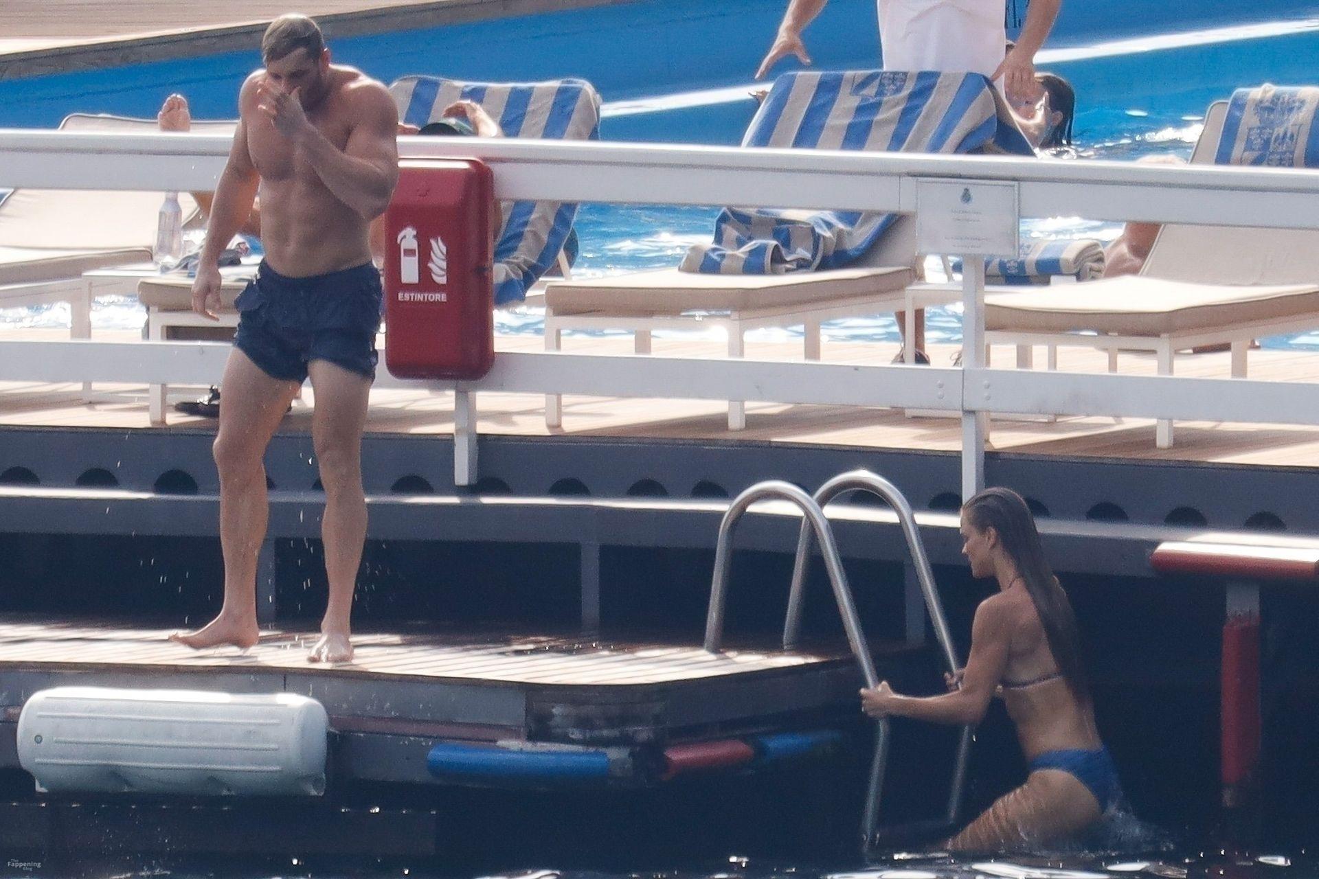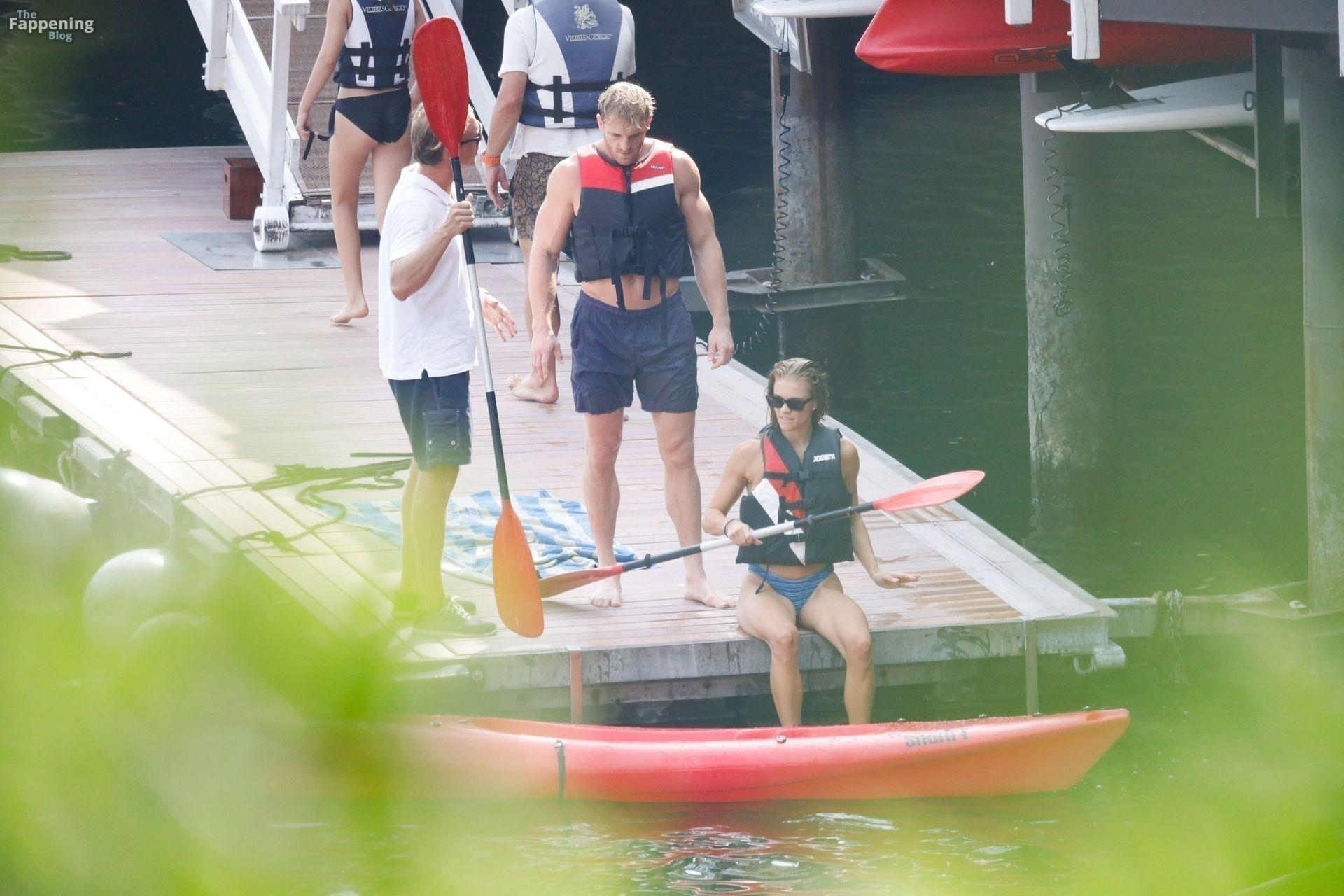 Не отставая, датская модель Логана Нина выглядела потрясающе в крошечном бикини, демонстрируя свою пляжную фигуру. Они отлично провели время, катаясь на каяках под жарким итальянским солнцем.