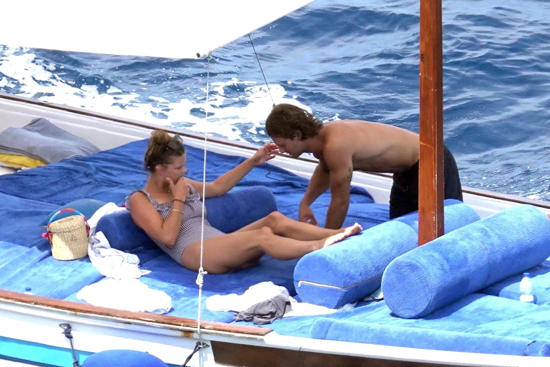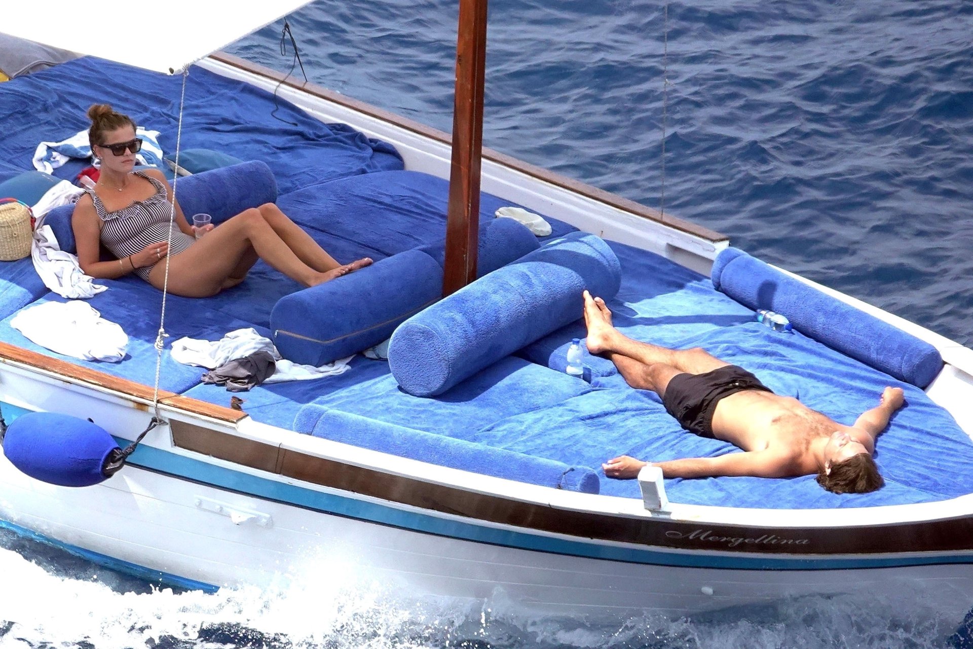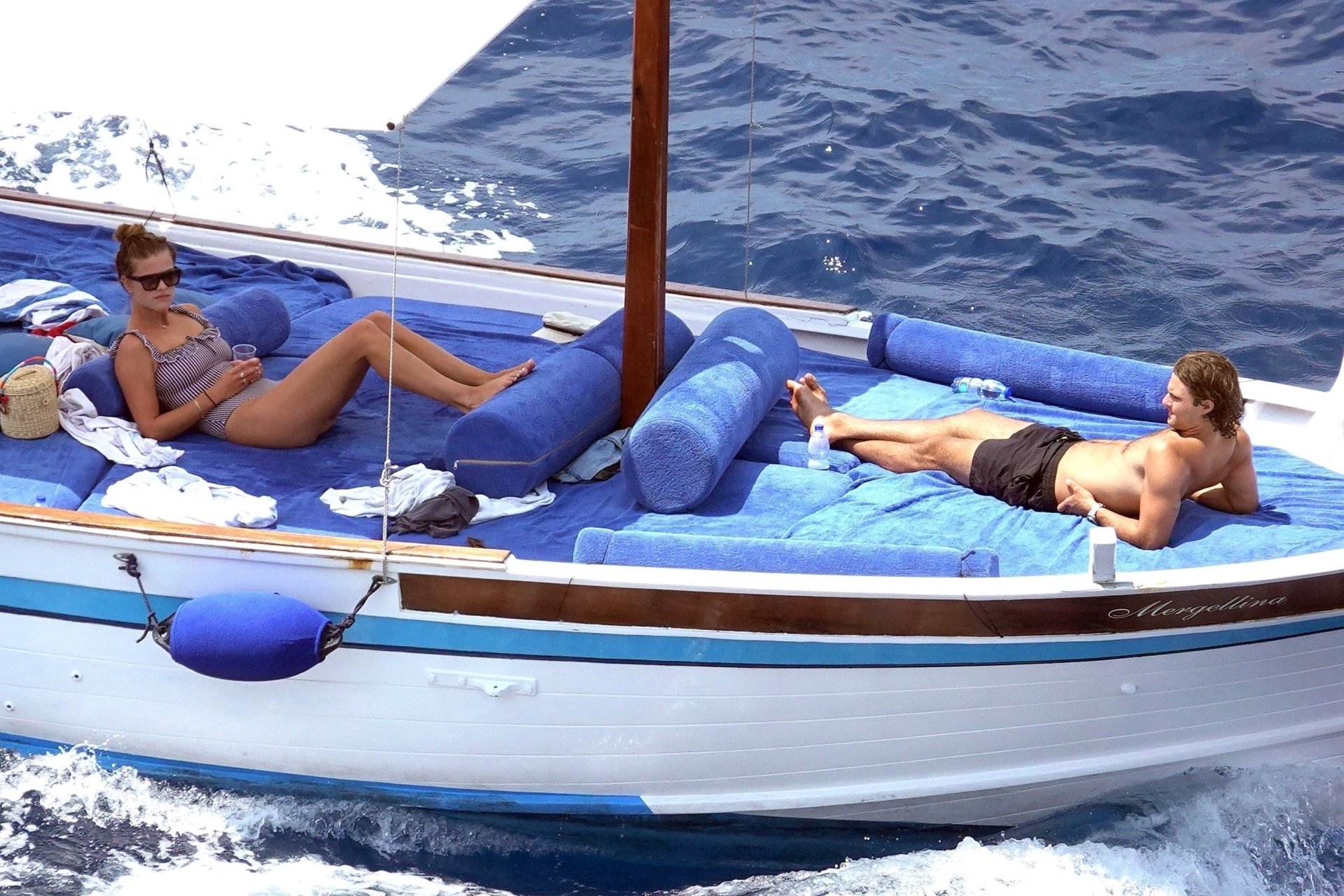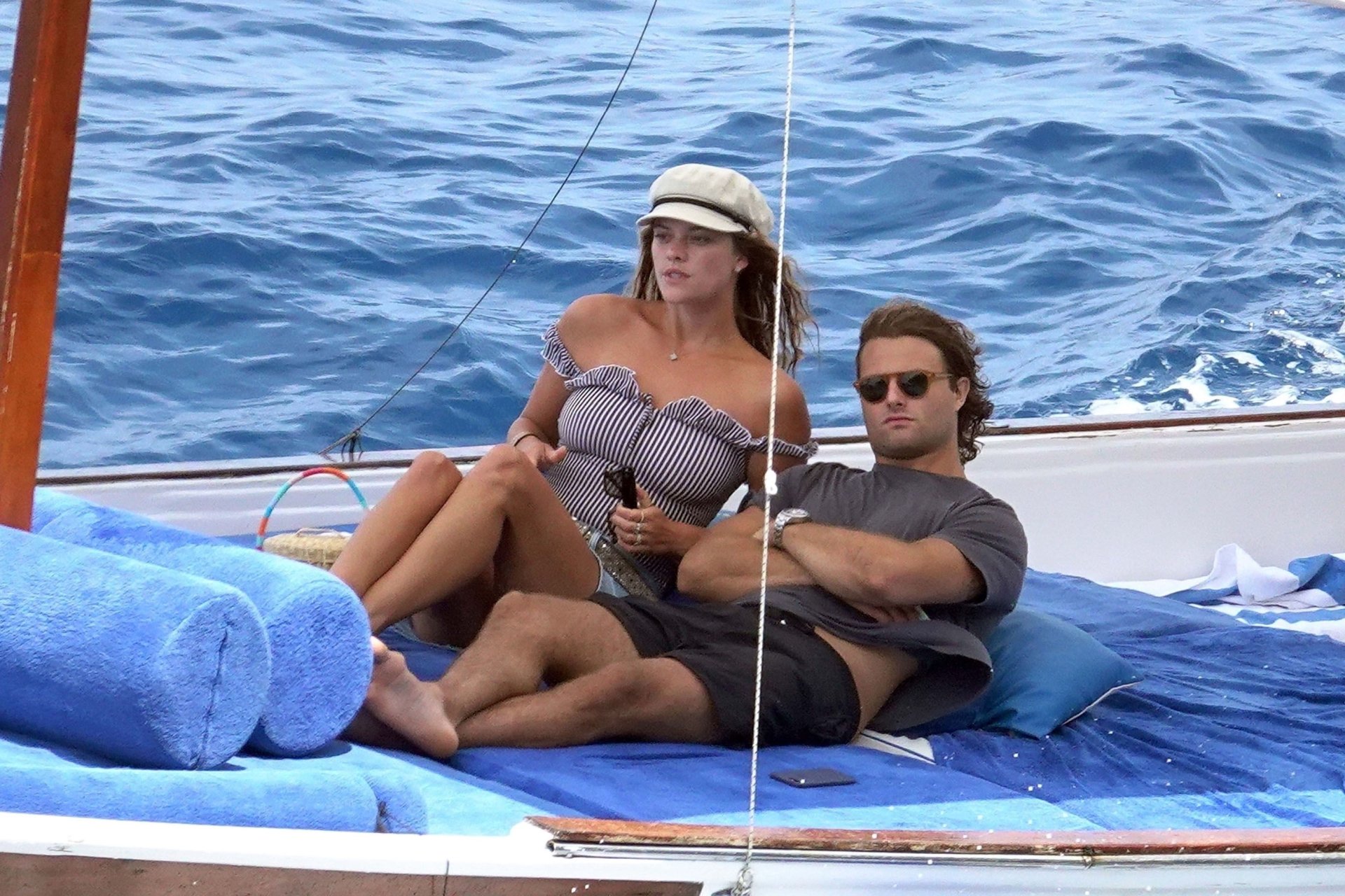 Датская модель Нина Агдал (26) прижимается к своему парню, сыну Кристи Бринкли — Джеку Бринкли-Куку. Влюбленная пара отдыхает на своей лодке, наслаждаясь итальянским солнцем на Капри.